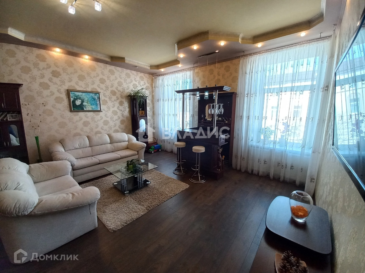 Высота потолков 3,4 м., что создает ощущение свободного пространства и дополнительной площади.