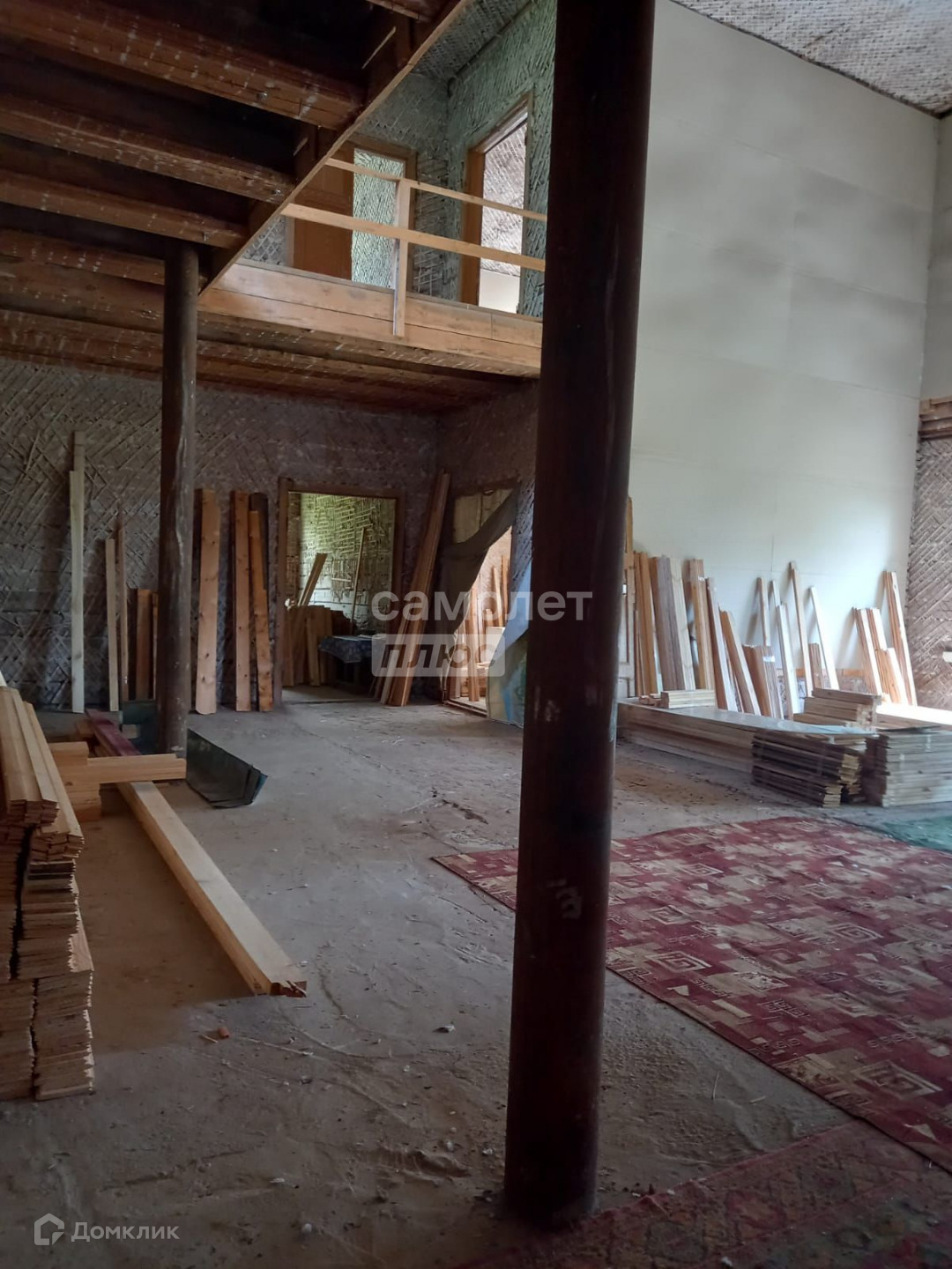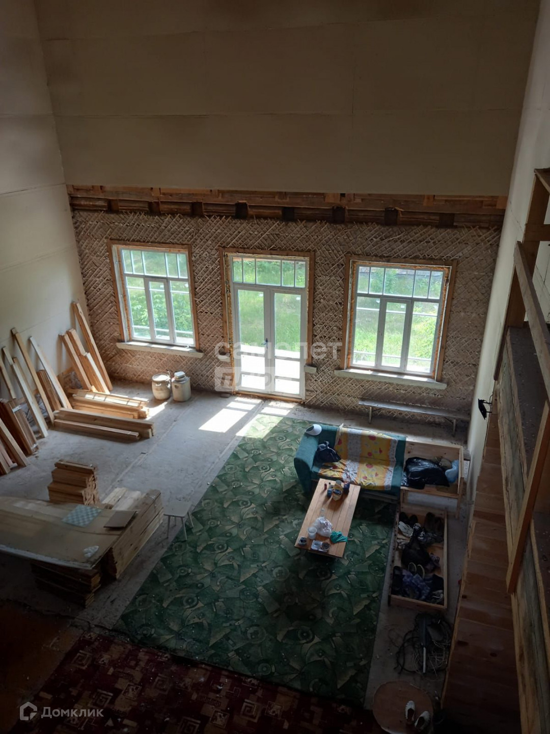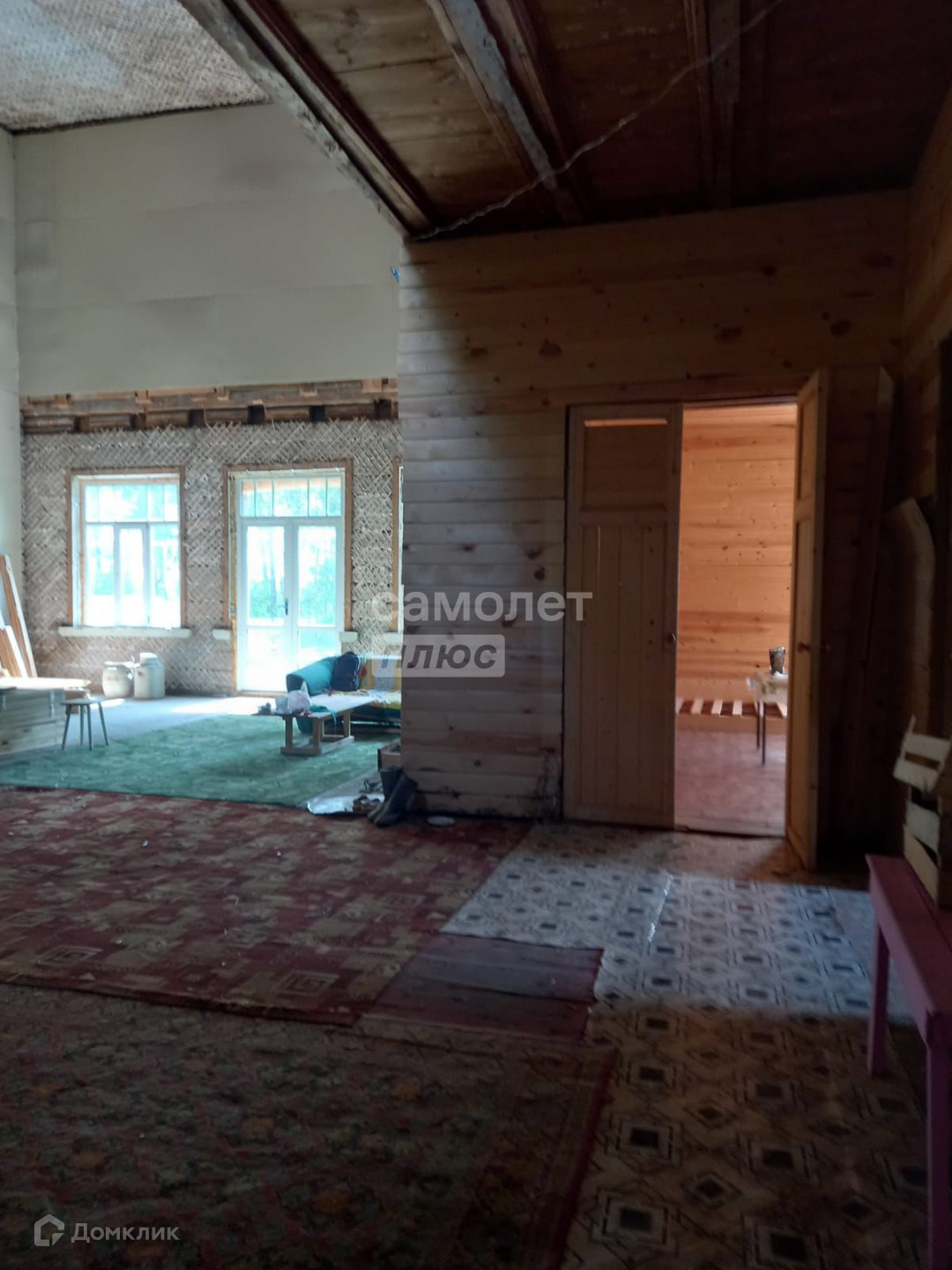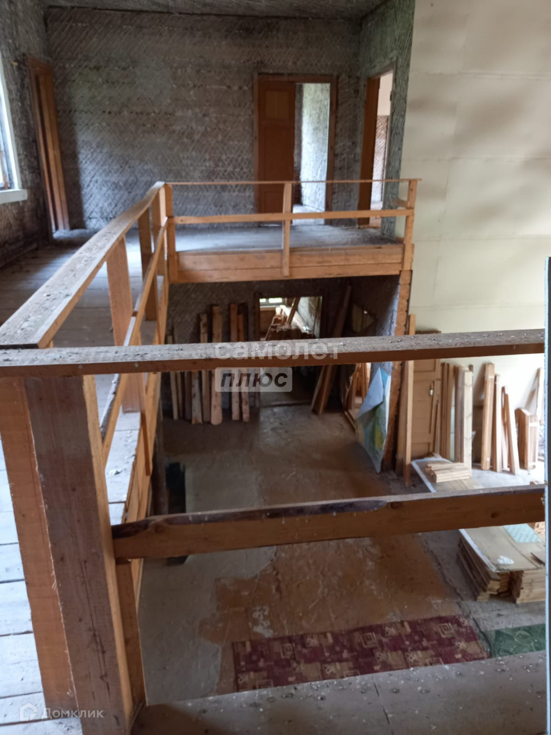 Деревянный бревенчатый дом в черновой отделке, два этажа, три входа, две лестницы,