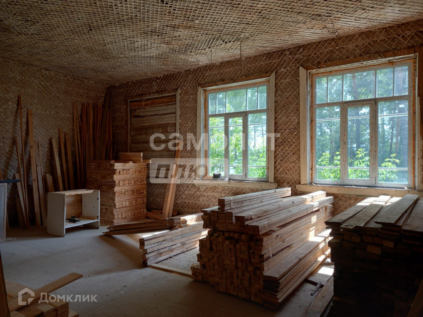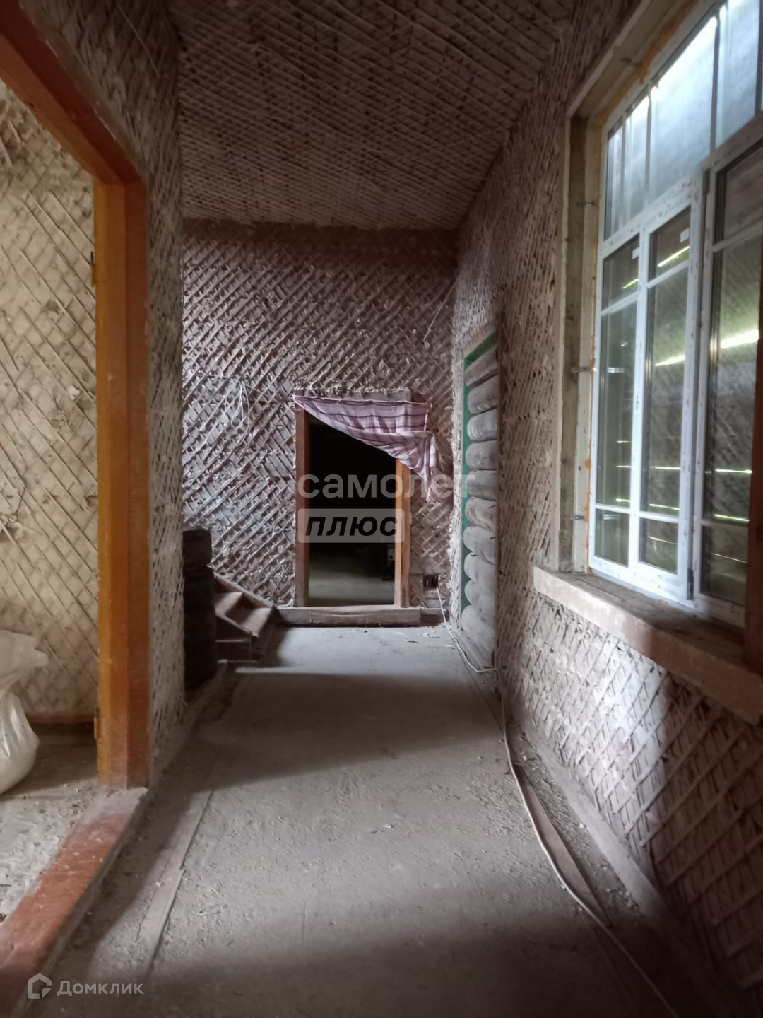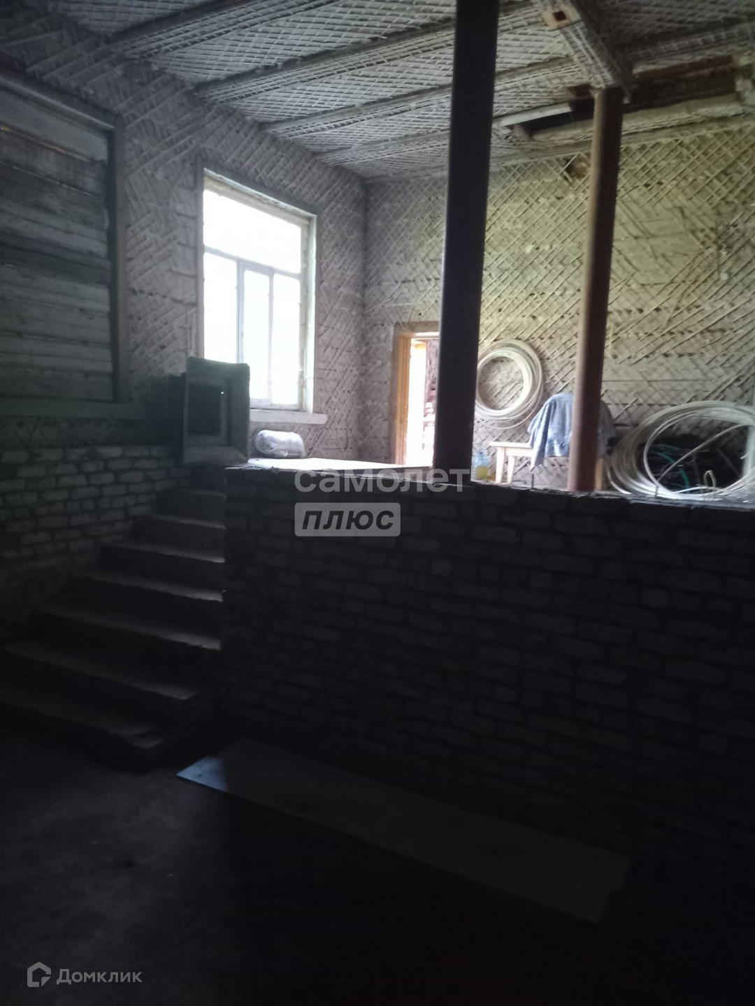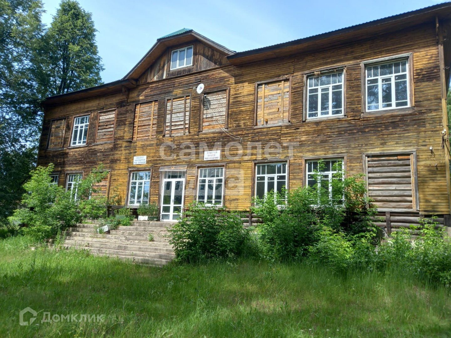 Деревянный бревенчатый дом в черновой отделке, два этажа, три входа, две лестницы,
