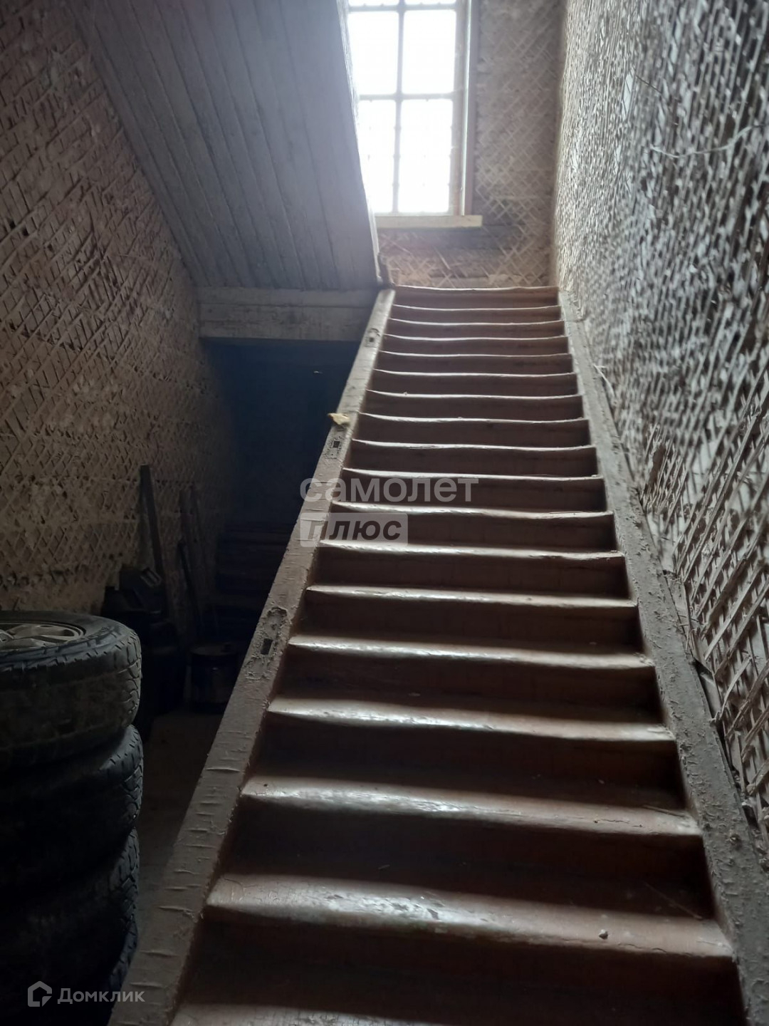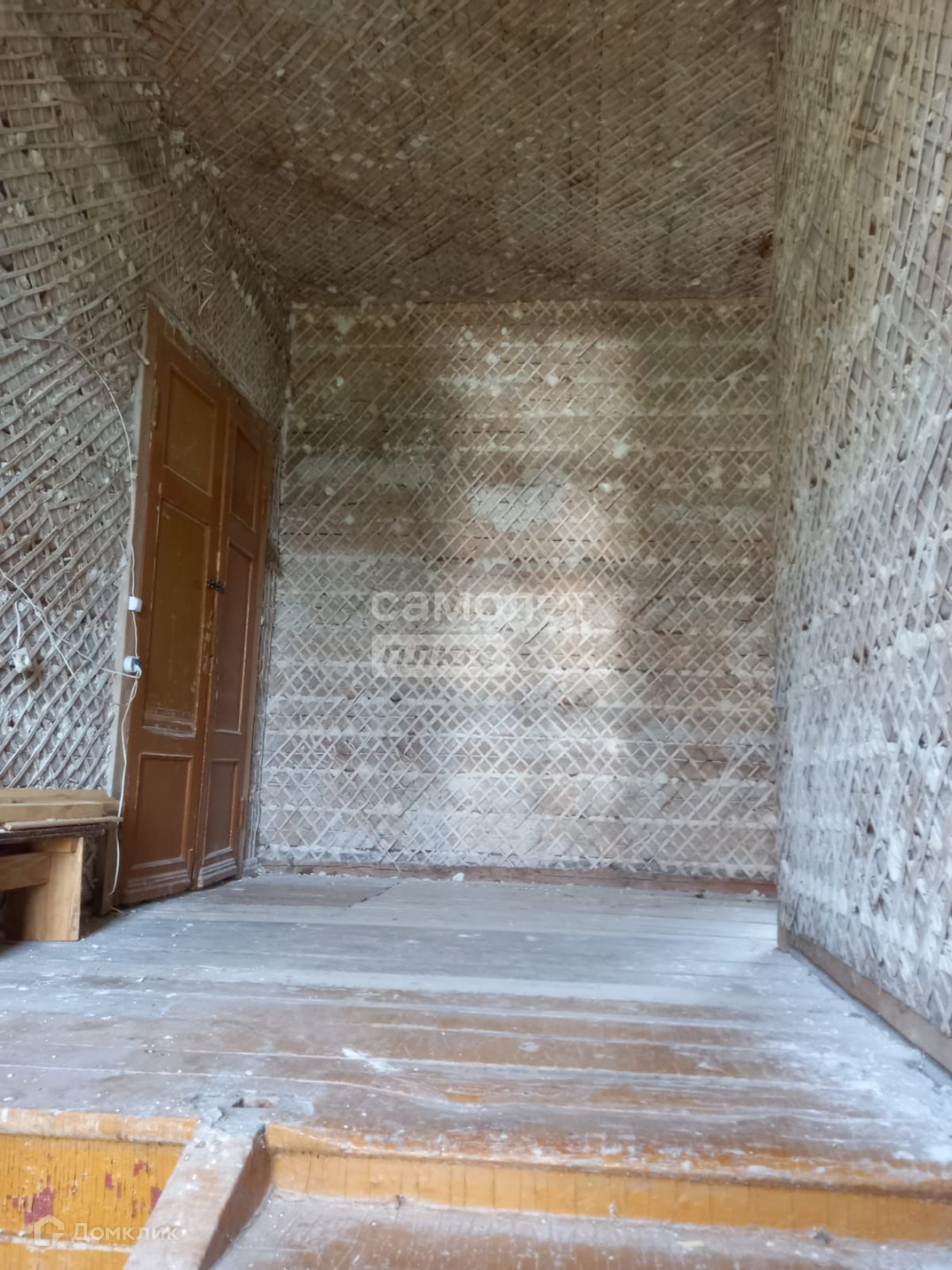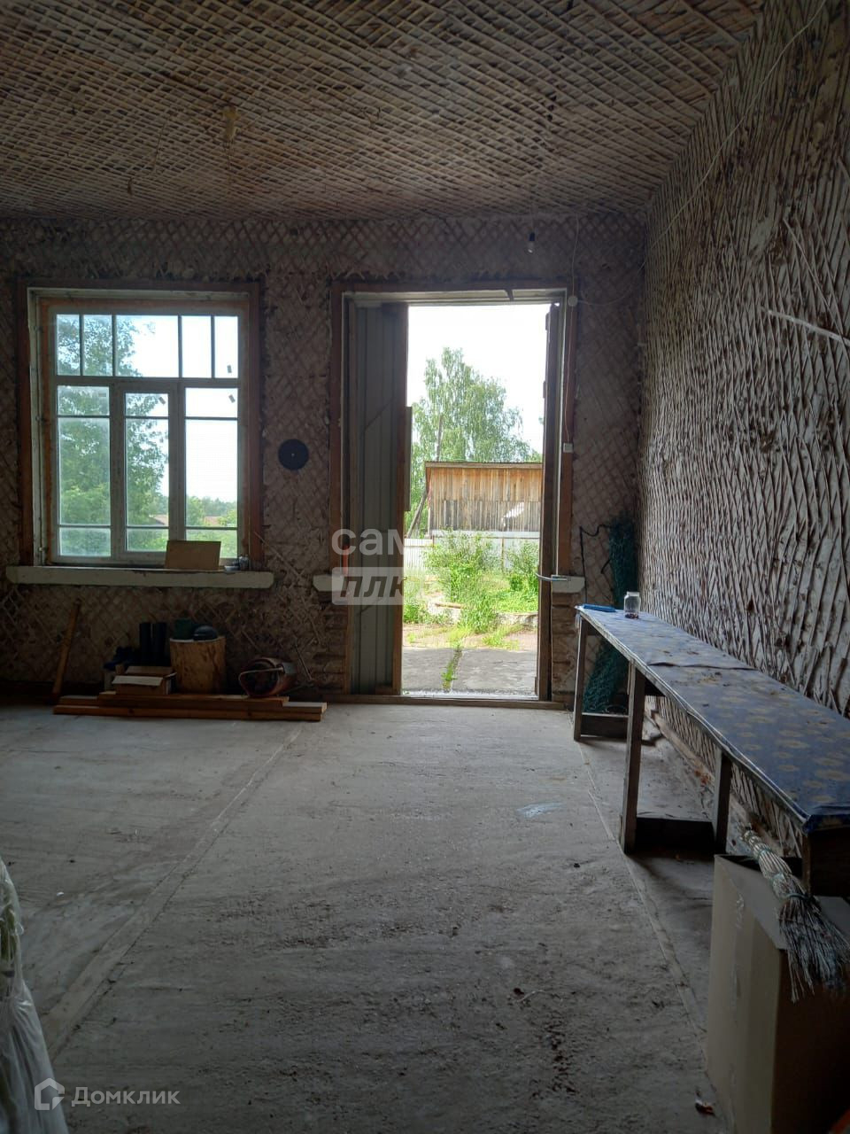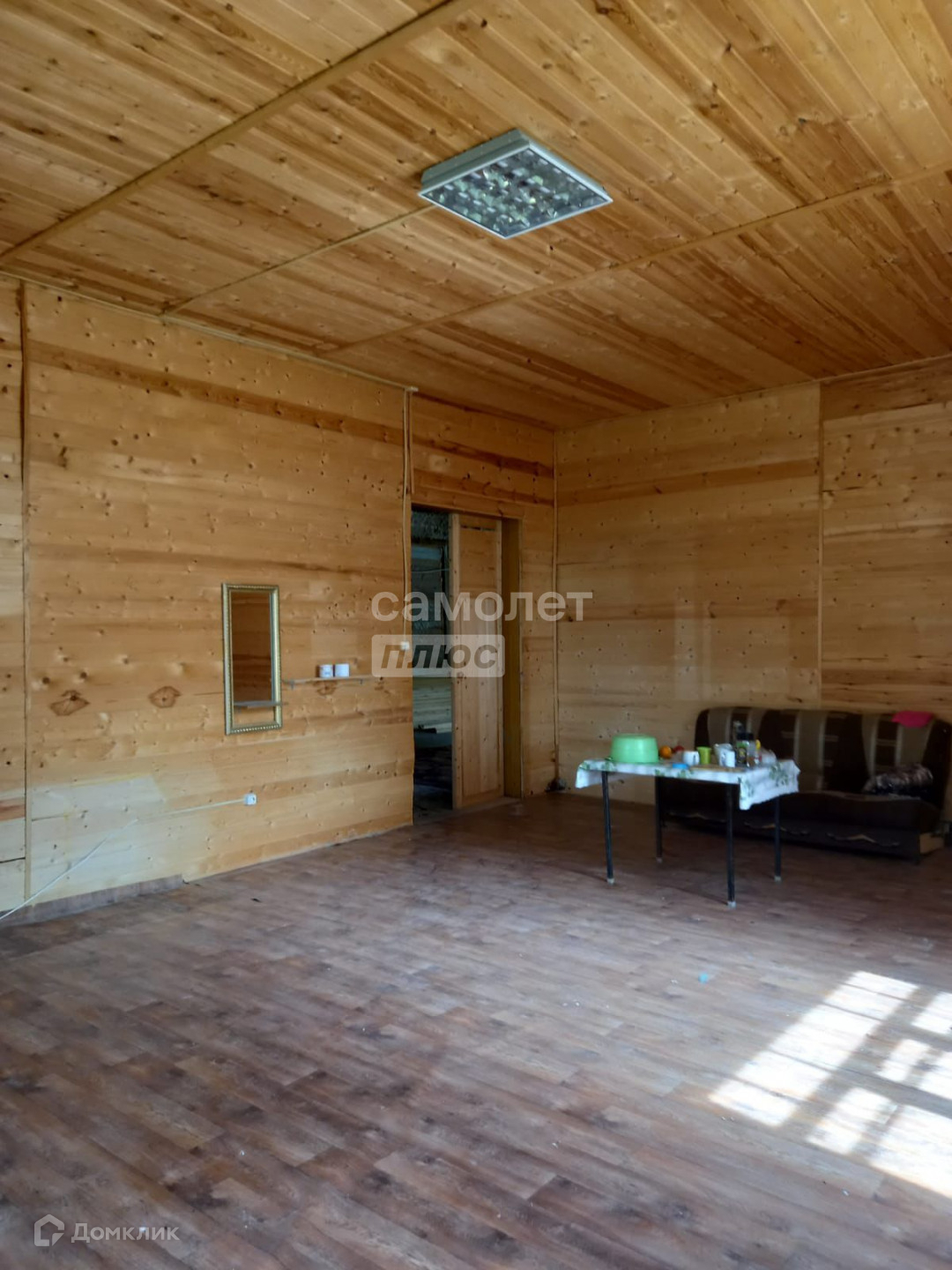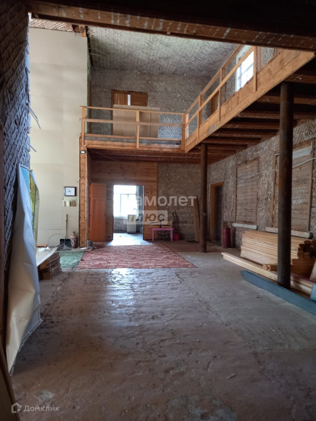 Пол первого этажа залит бетоном, второй этаж доска,