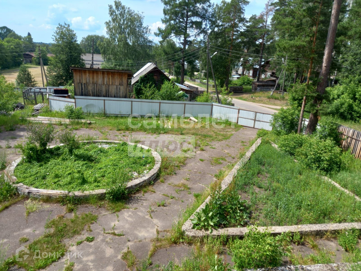 огороженный забором.