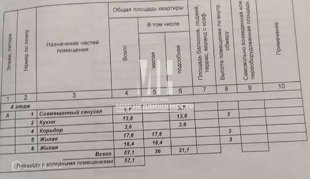 Общая площадь 57.1 м2
