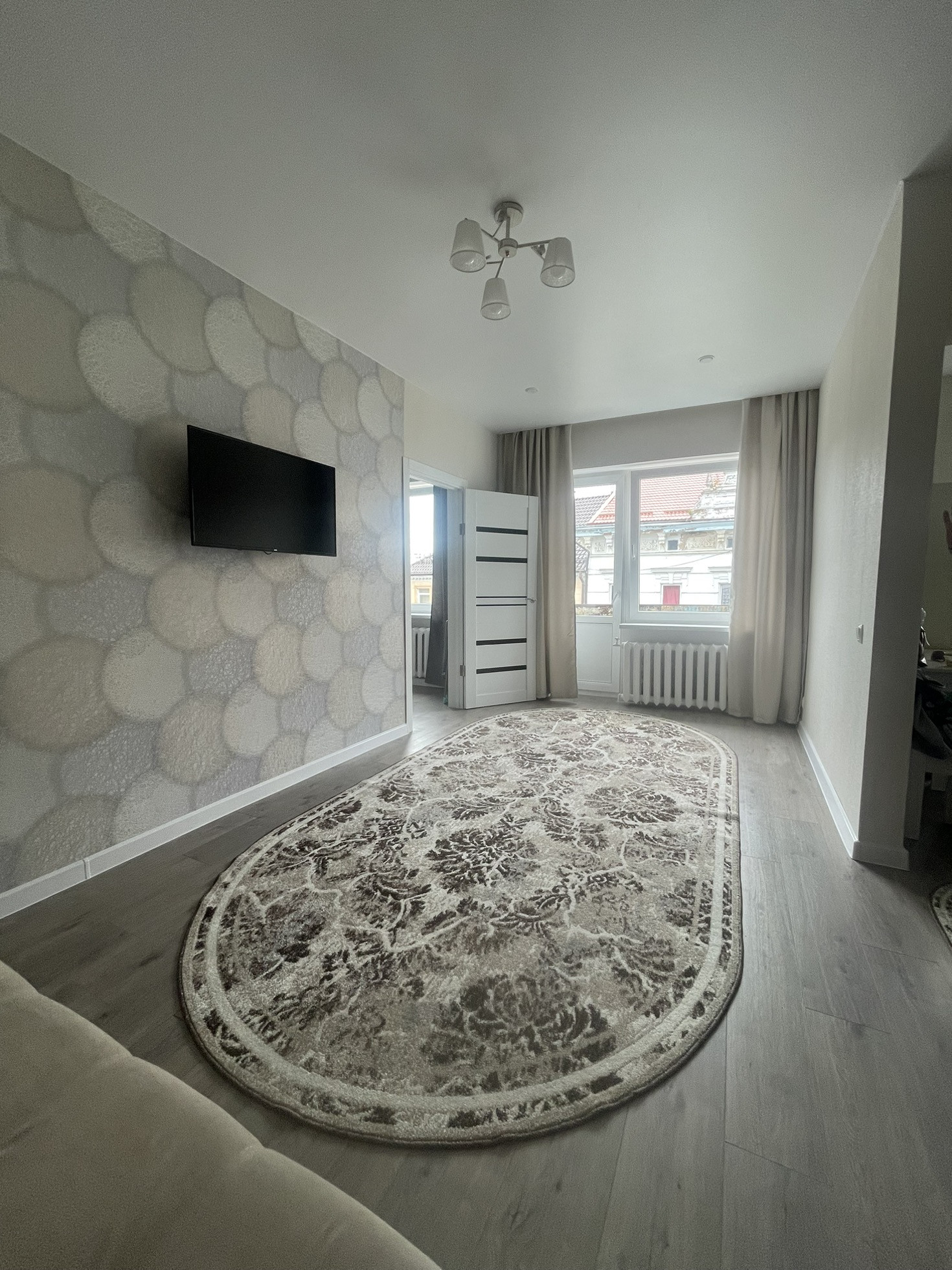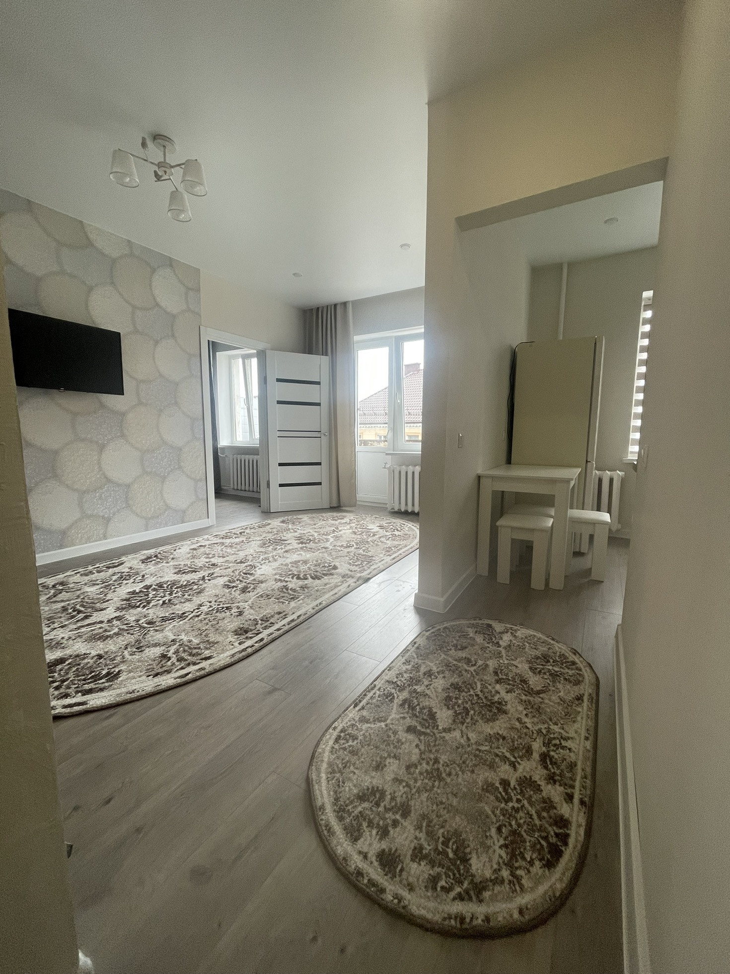 Продается  совершенно новая 2 комнатная квартира с качественным евроремонтом! 2 смежные комнаты 18 и 11 кВ. м, кухня 6 кВ.м., санузел совмещен. Имеется балкон с видом на главную улицу города. В квартире - заменены окна, двери, пол ламинат, в кухне- новая мебель и техника. Санузел в плитке, новая сантехника. Установлены приборы учета. Мебель и техника - остаётся.  Любые формы расчета, торг !