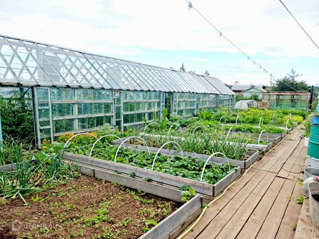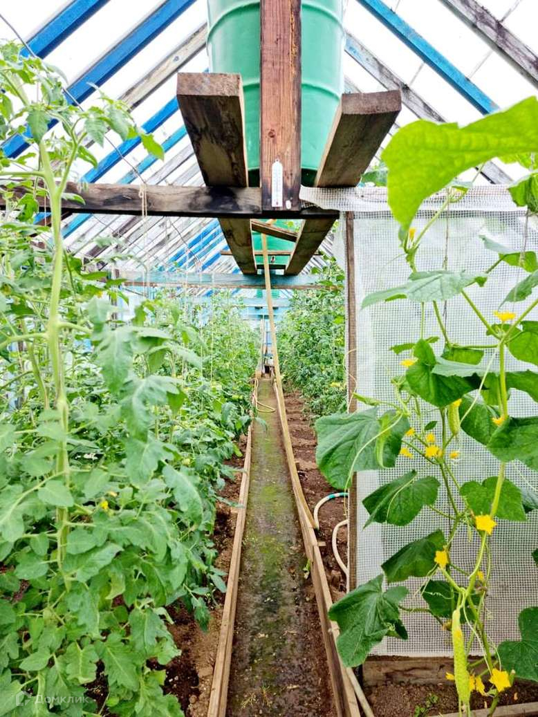 На ухоженом участке 6соток есть теплицы,различные посадки.