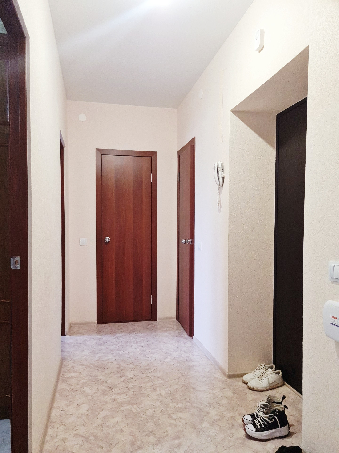 Квартира общей площадью 54 кв.м, на которой располагаются две изолированные комнаты, кухня, туалет, ванная комната и балкон. Ремонт выполнен в сдержанных тонах, отделка стен выполнена обоями, на полу постелен линолеум, окна и балконная группа пластиковые. Очень удачно оборудован выход на не застекленный балкон - из кухни,что очень удобно. Тихий, чистый подъезд без посторонних людей и шумных соседей. Во дворе детская и спортивные площадки. Для автолюбителей достаточно парковочных мест.