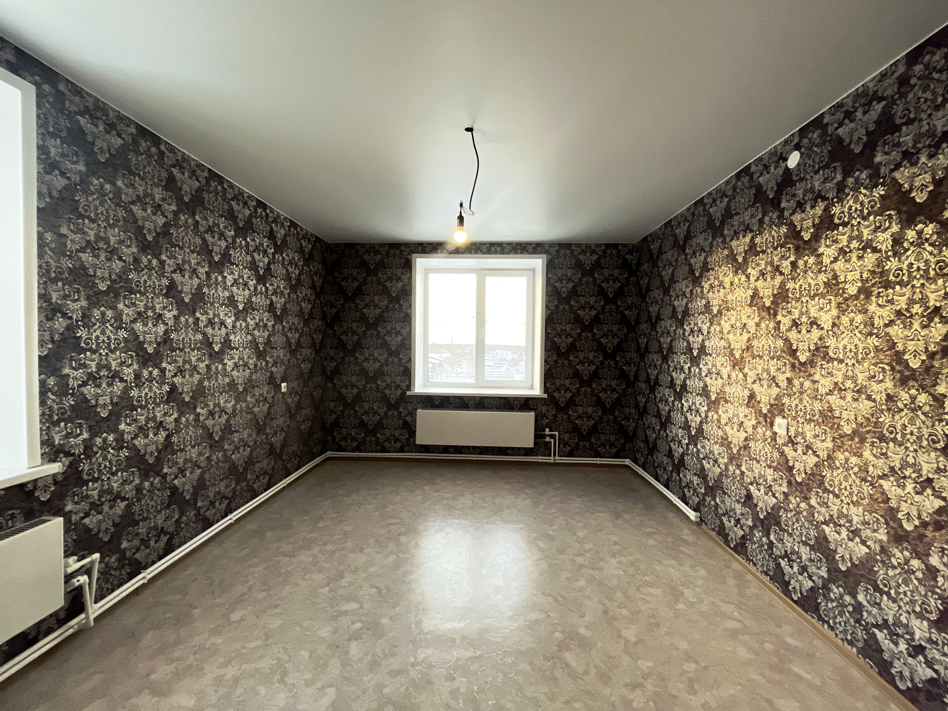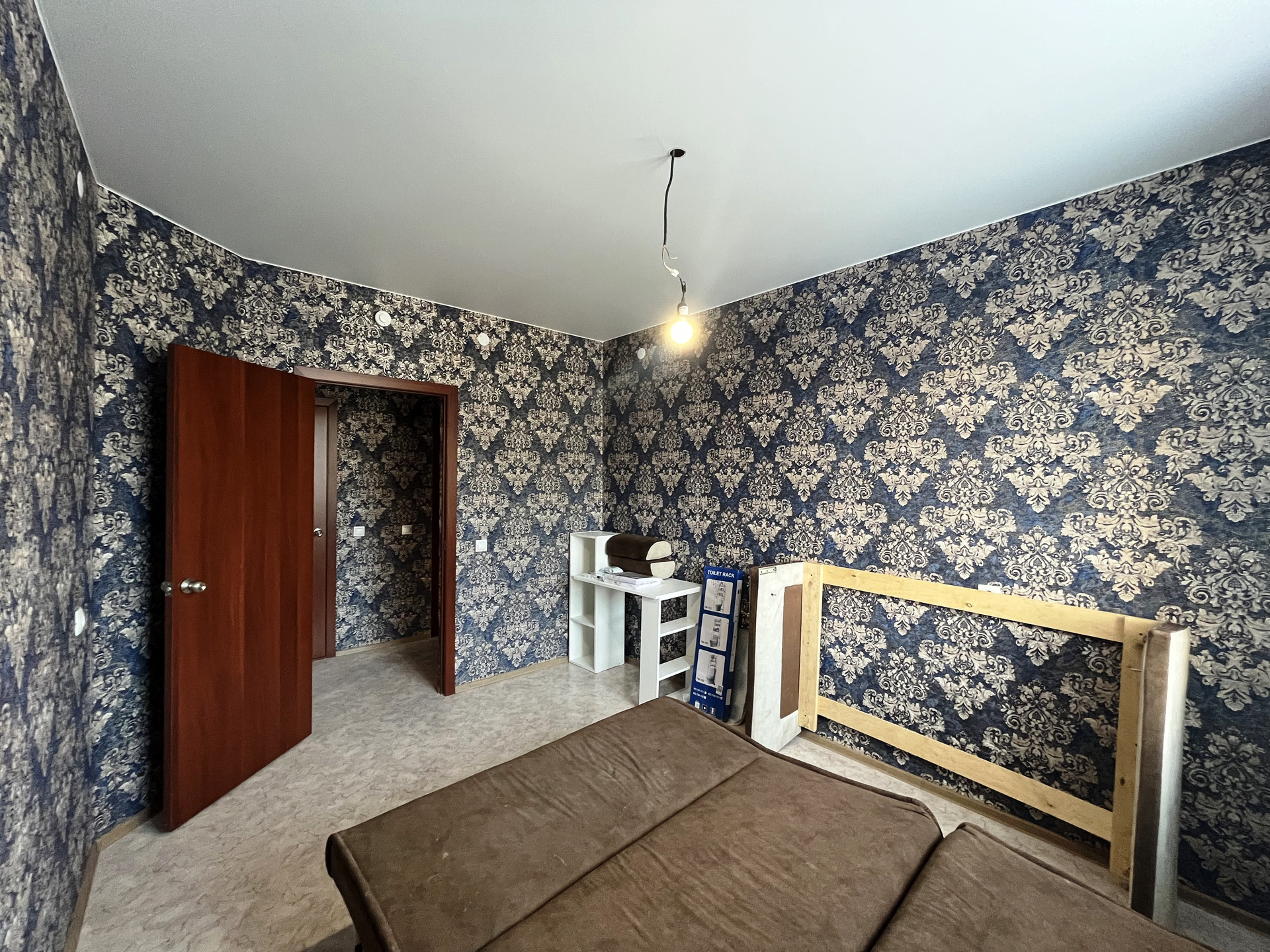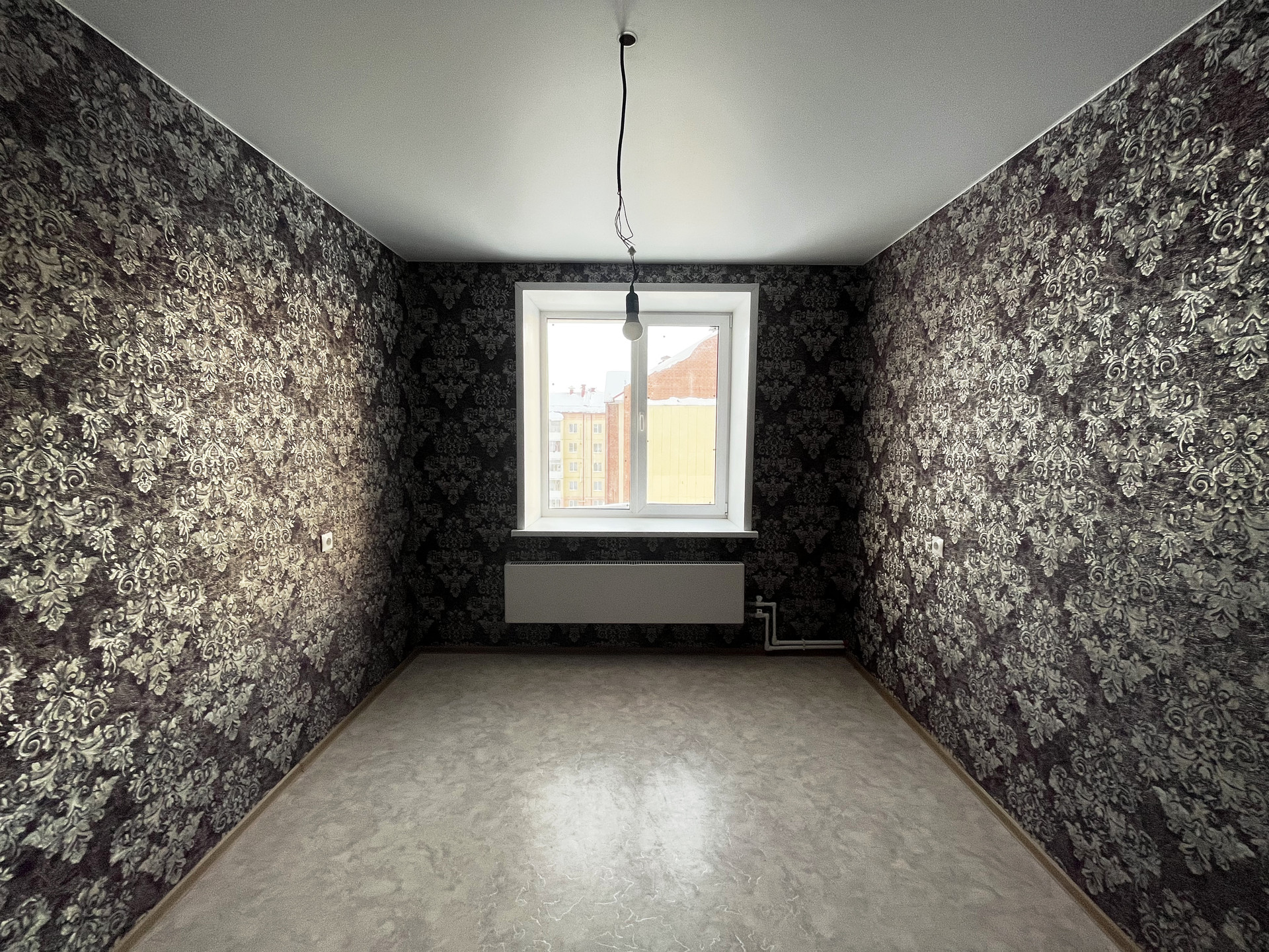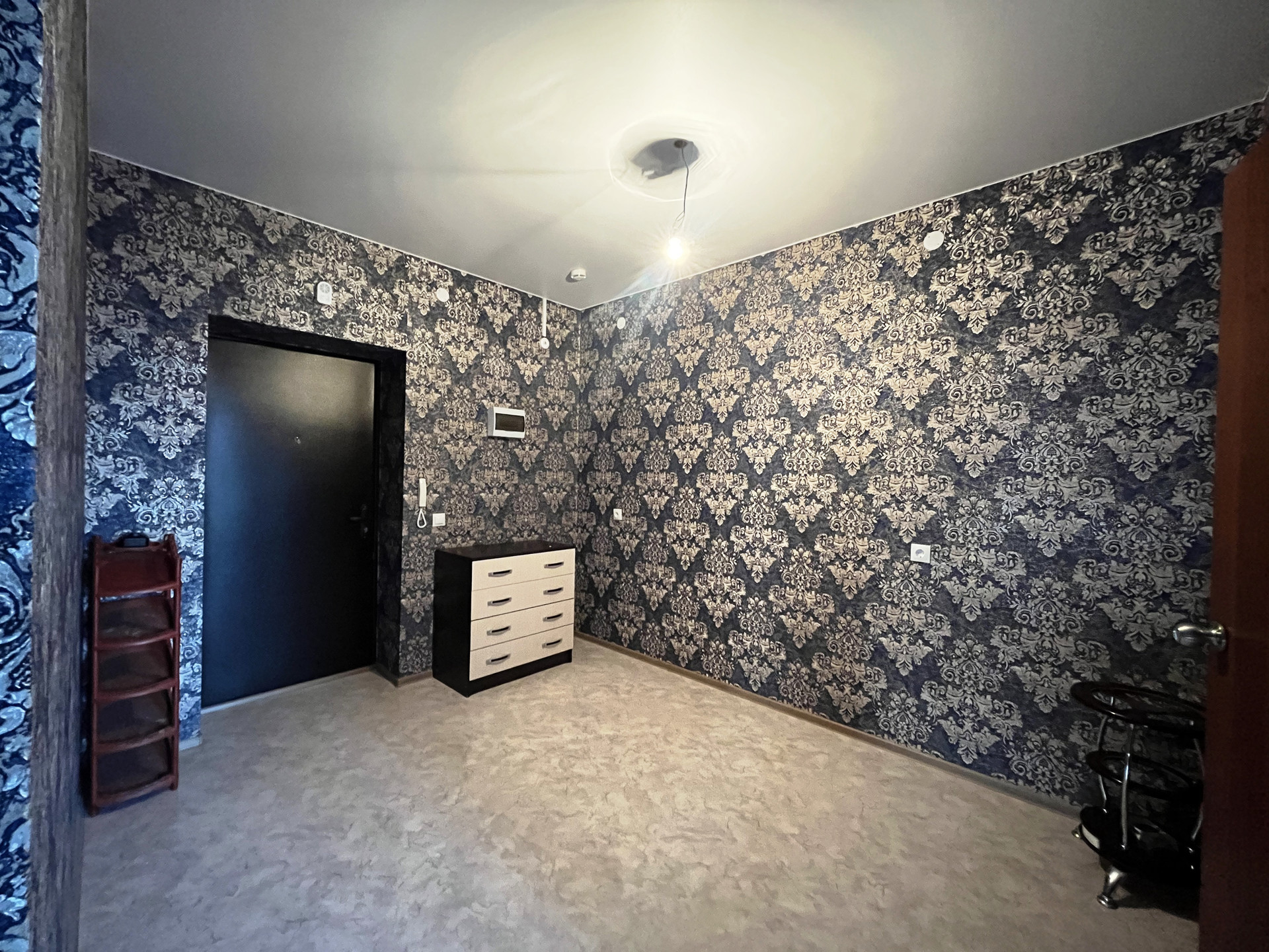 Ремонт от застройщика: на стенах обои, на полу линолеум, натяжной потолок, пластиковые стеклопакеты и балконная группа, балкон не застеклен, раздельный санузел на 1800мм от пола в кафельной плитке, металлическая дверь