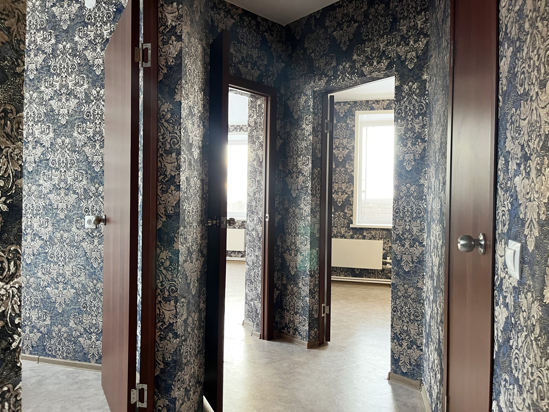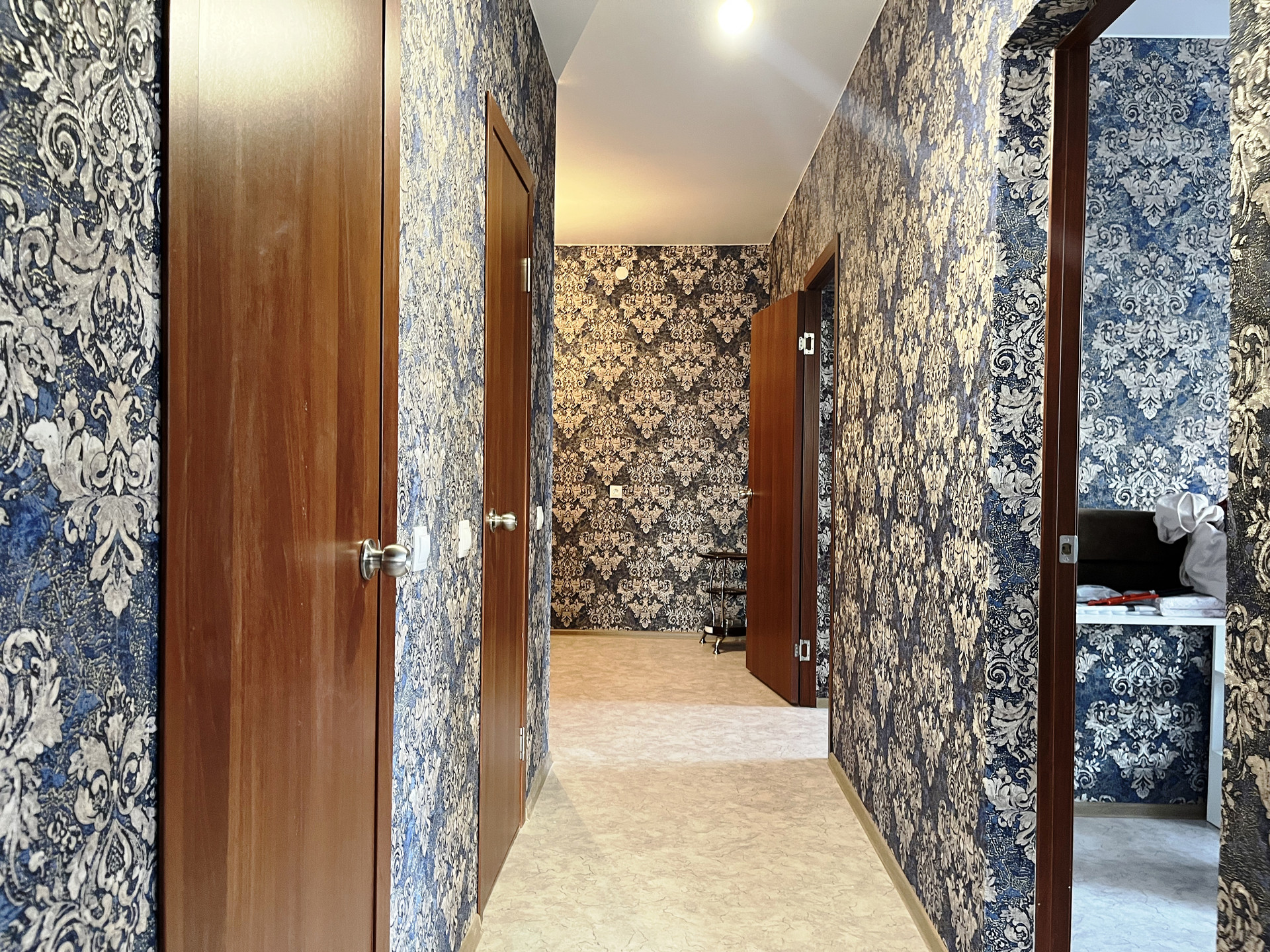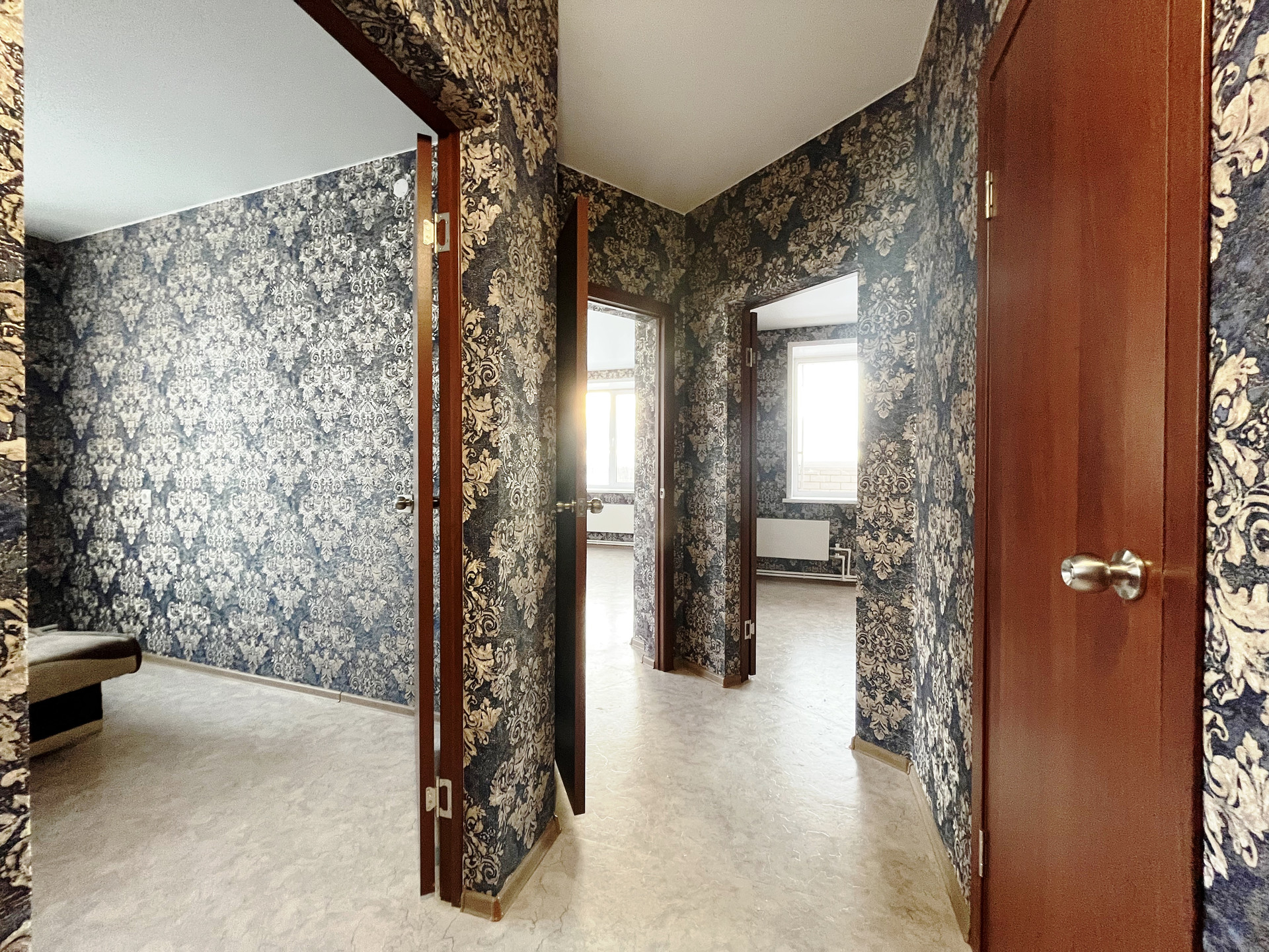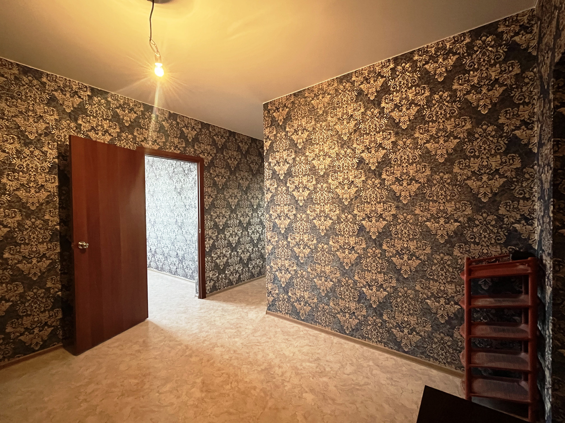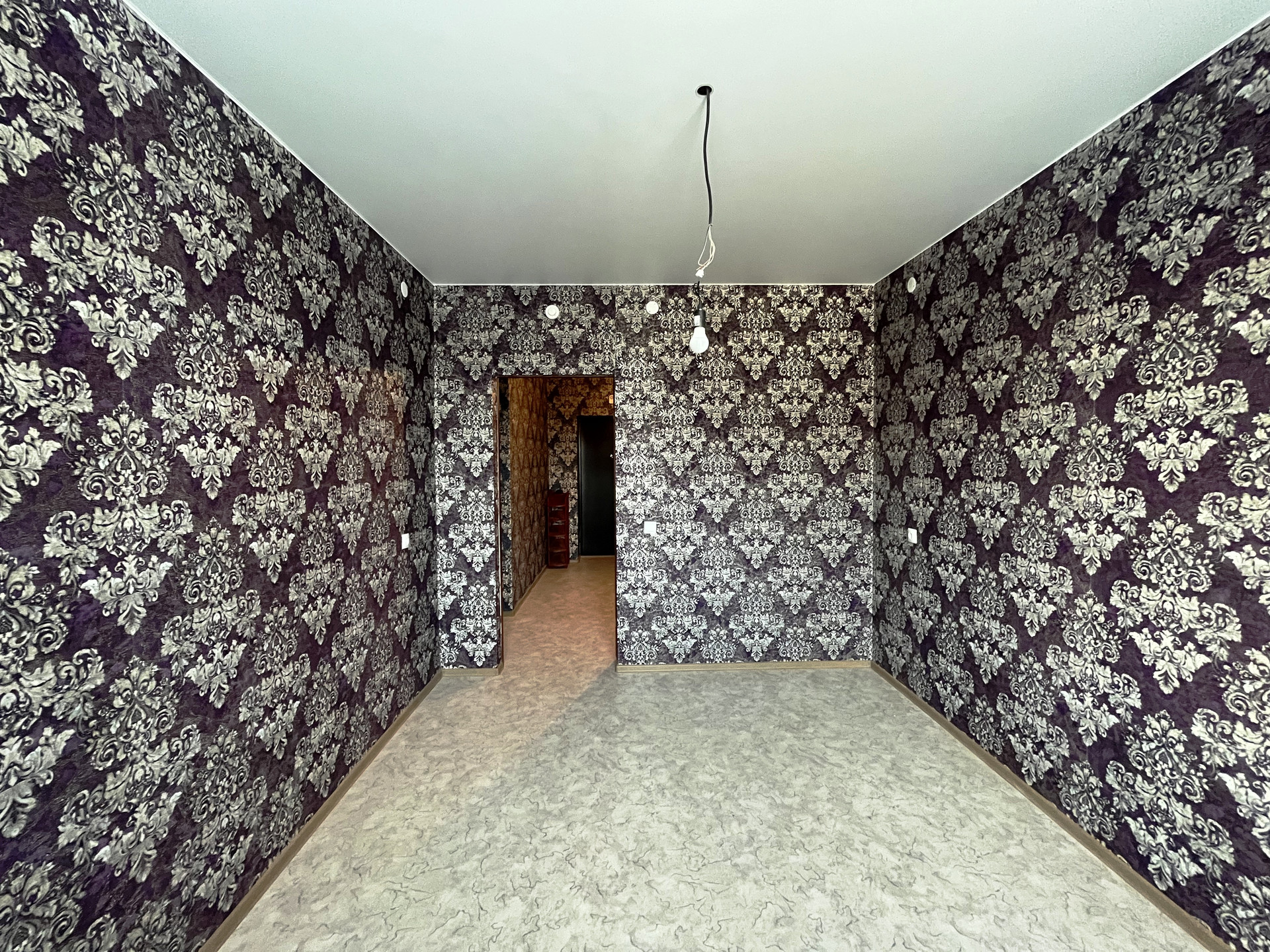 Ремонт от застройщика: на стенах обои, на полу линолеум, натяжной потолок, пластиковые стеклопакеты и балконная группа, балкон не застеклен, раздельный санузел на 1800мм от пола в кафельной плитке, металлическая дверь