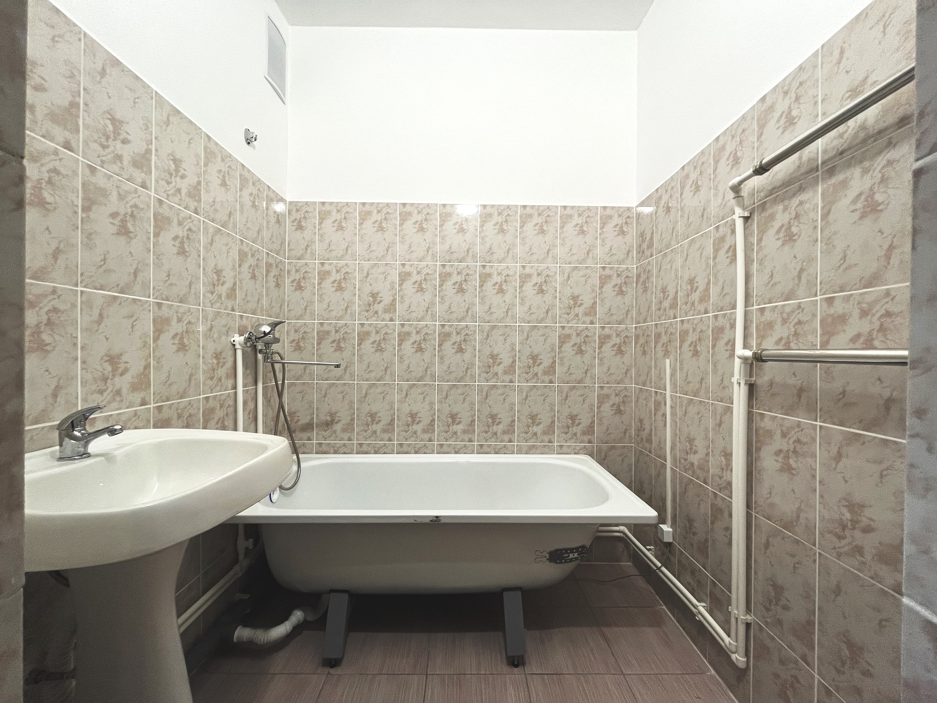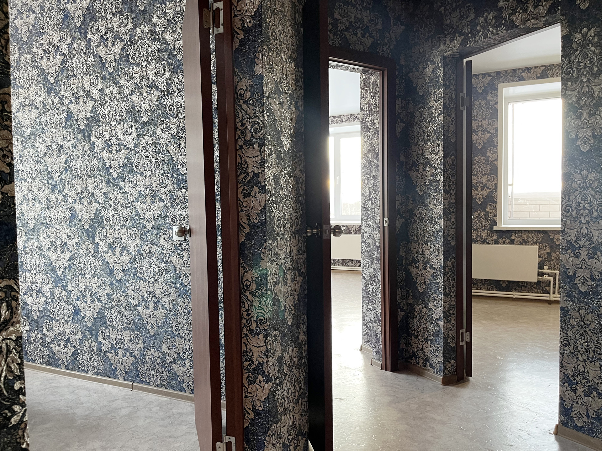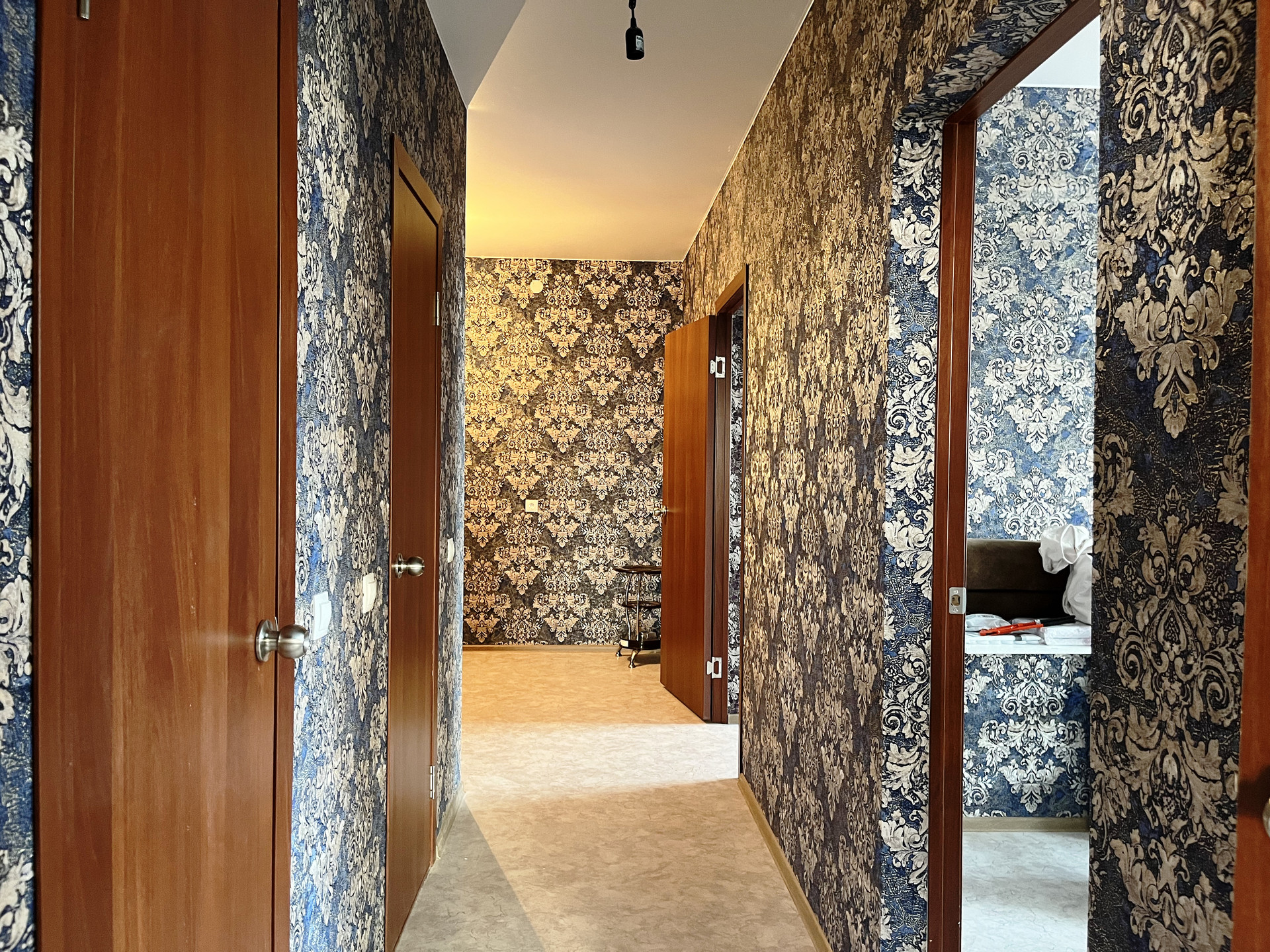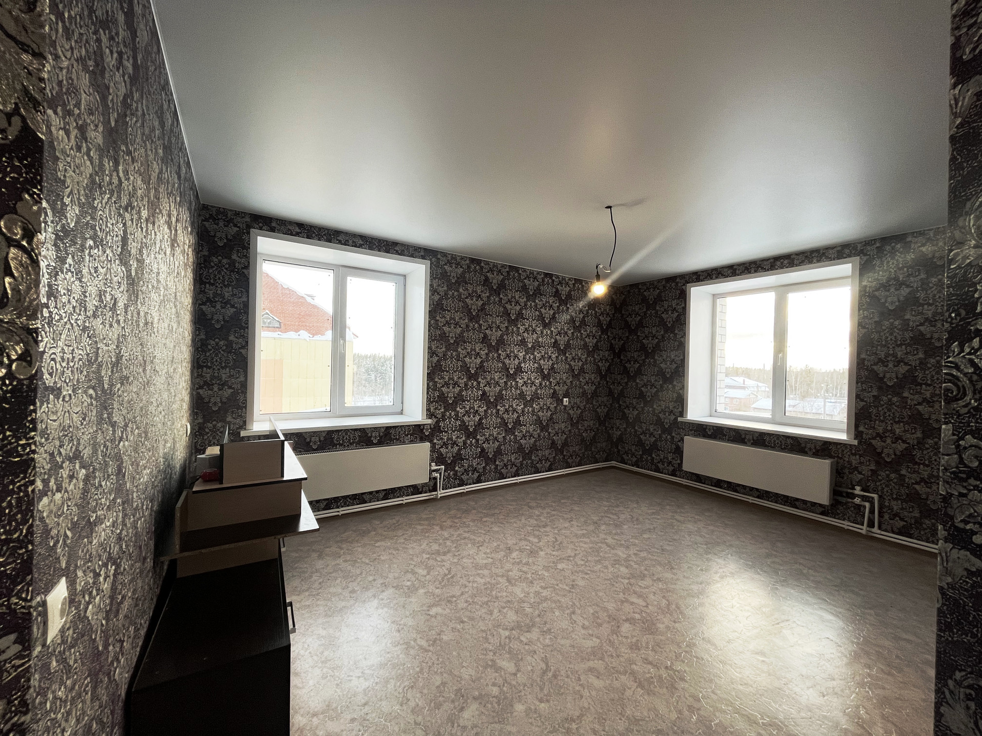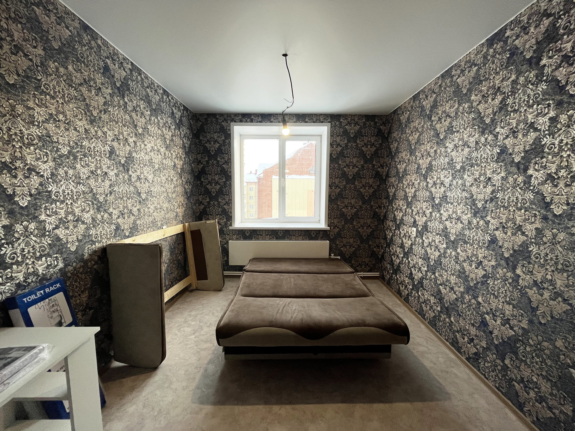 Ремонт от застройщика: на стенах обои, на полу линолеум, натяжной потолок, пластиковые стеклопакеты и балконная группа, балкон не застеклен, раздельный санузел на 1800мм от пола в кафельной плитке, металлическая дверь