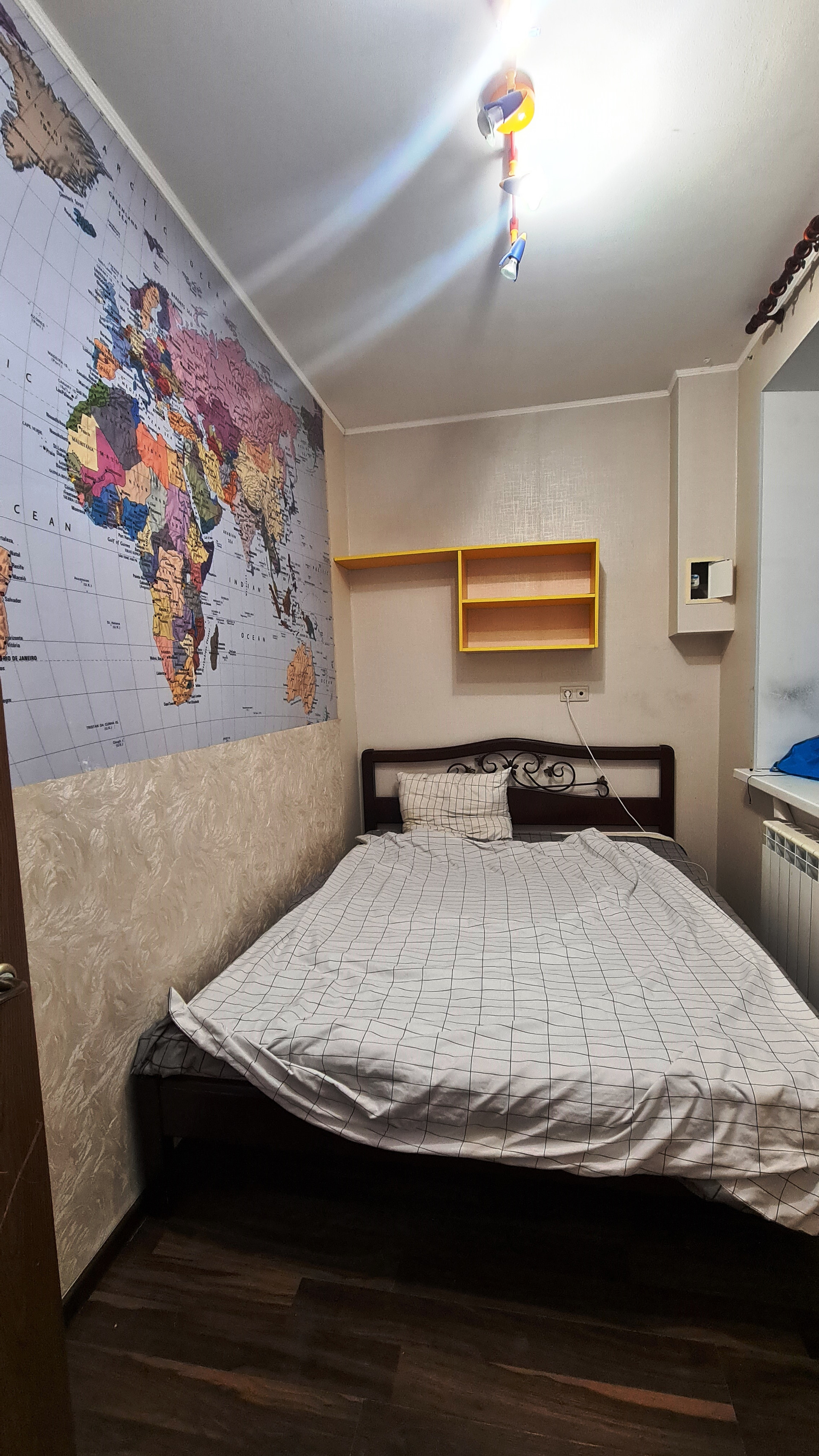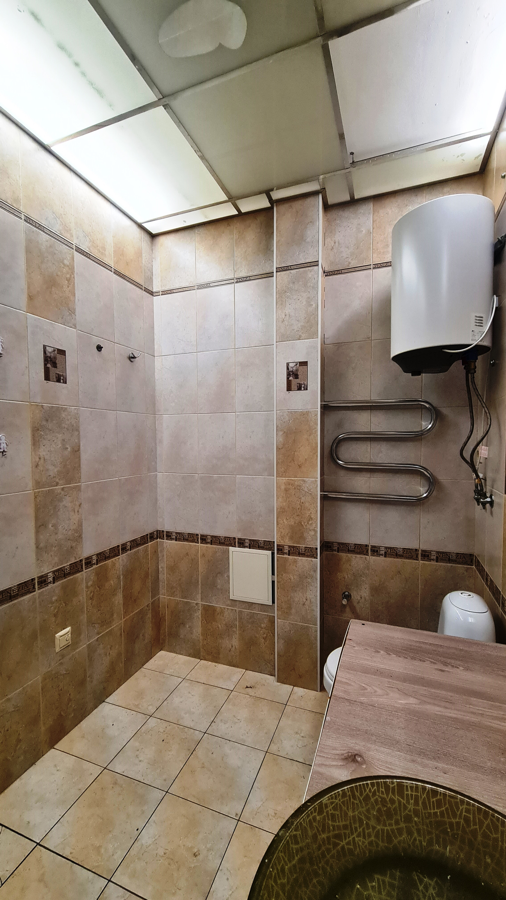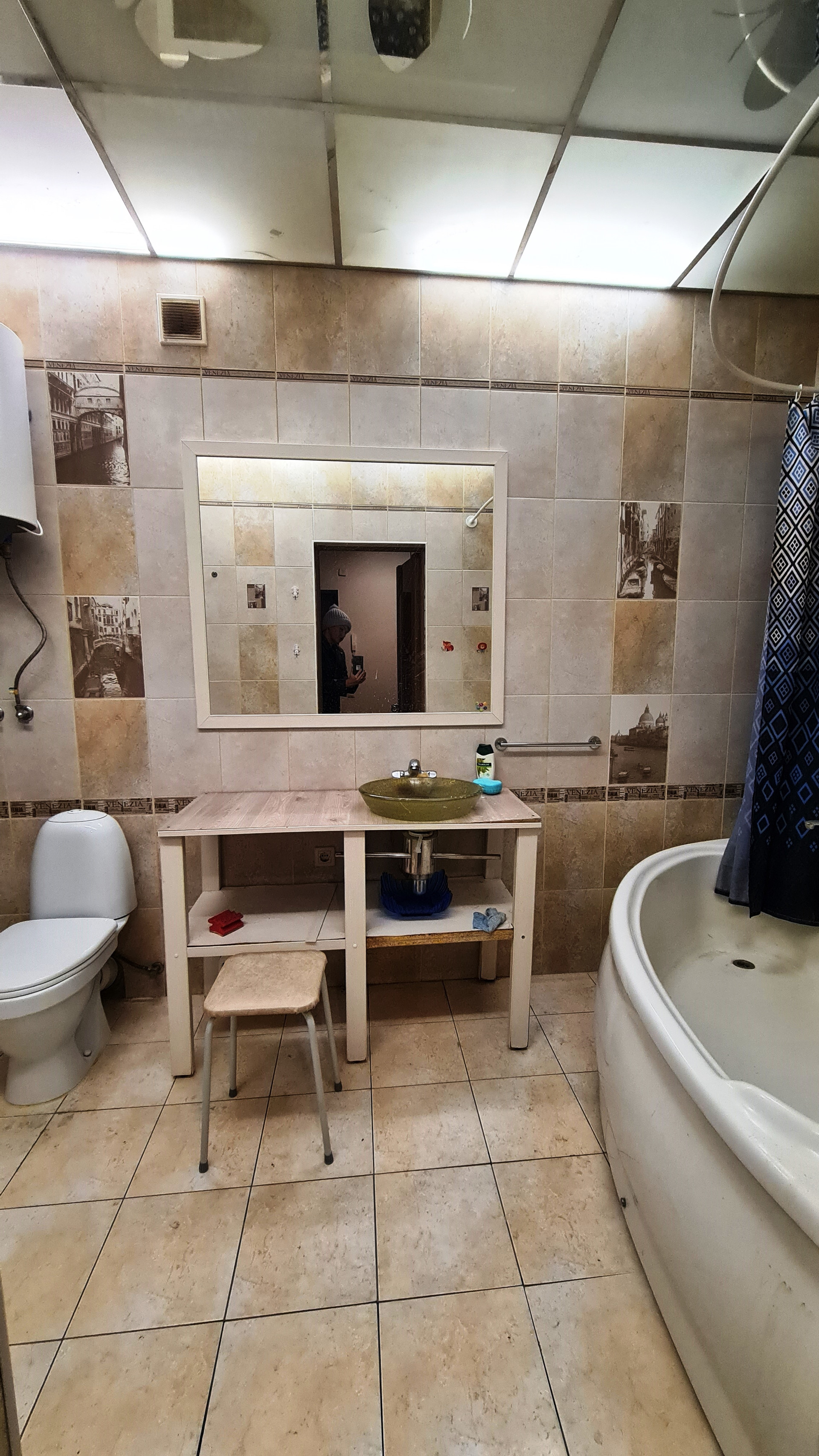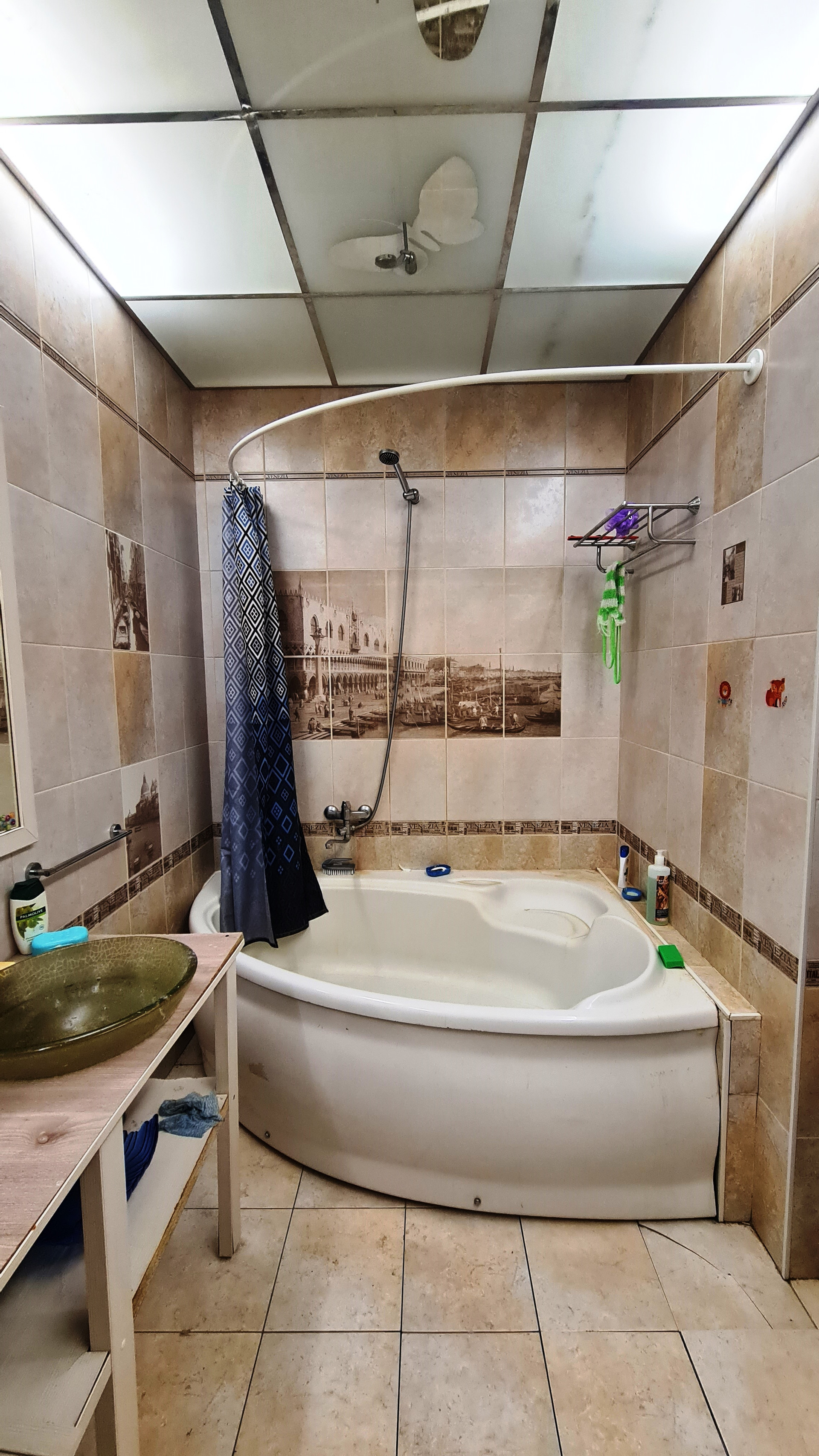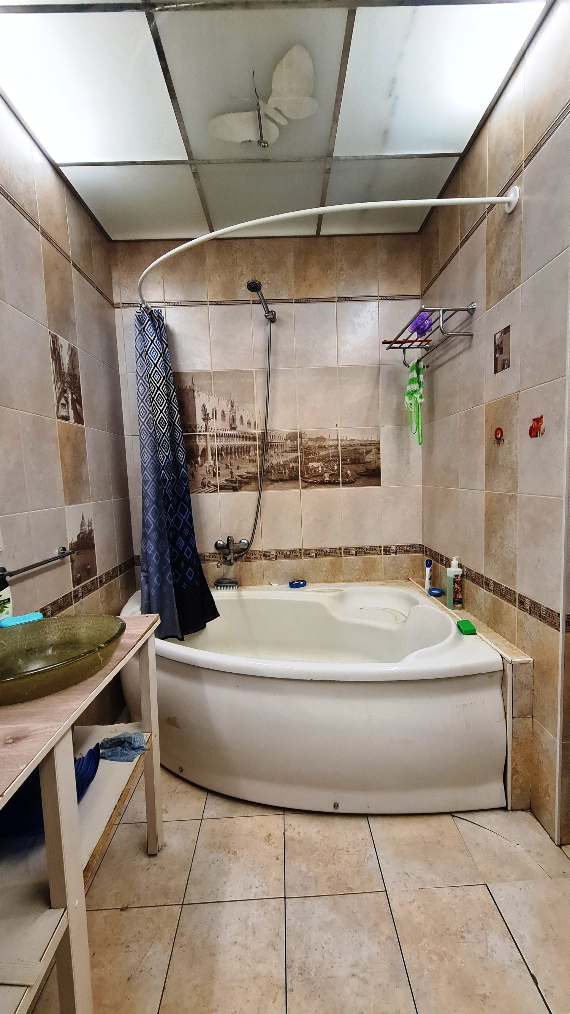 Интерьер создавался в 2014 году: на стенах качественные обои, на полу линолеум и ламинат, натяжной потолок, пластиковые стеклопакеты, совмещенный санузел, облагорожен керамической плиткой с тематикой Венеции от пола до потолка, акриловая ванна 150х150, металлическая входная дверь
