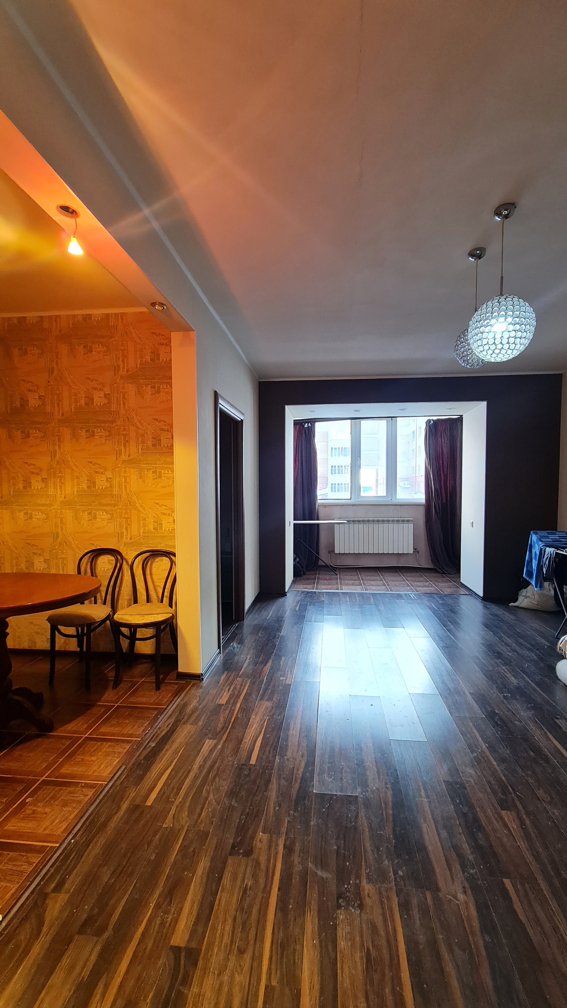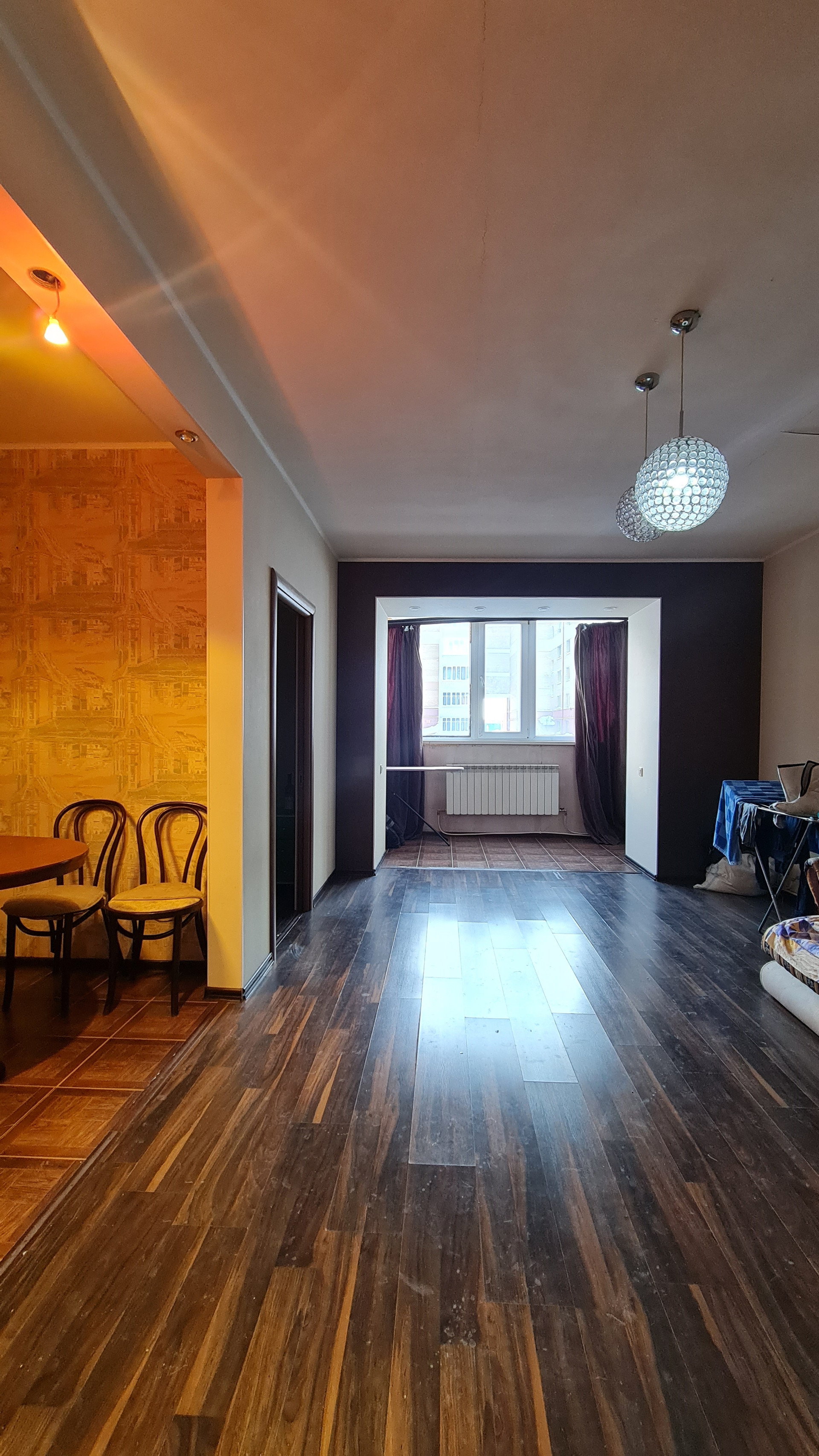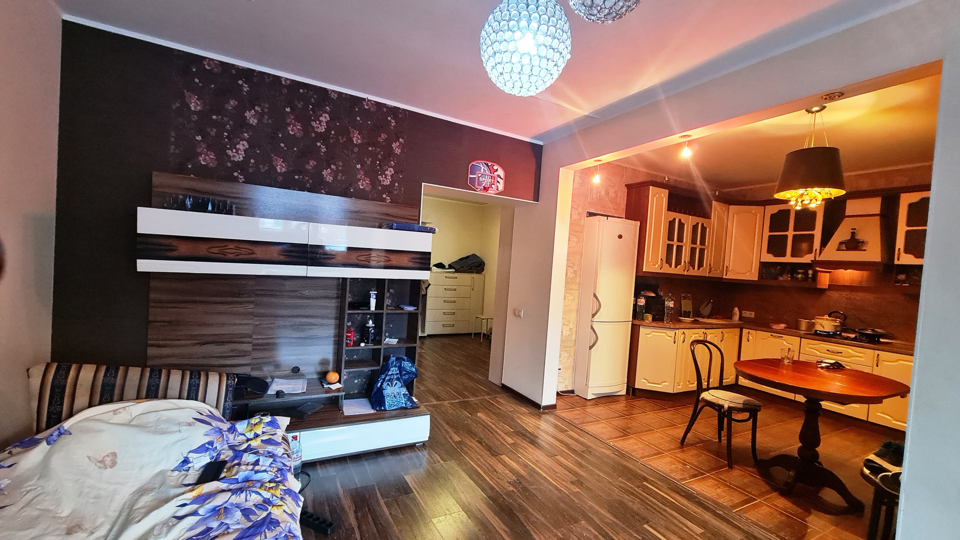 В квартире произведена перепланировка, в результате которой сформирована большая кухня -гостинная с присоединенным утепленным балконом и компактная спальня. Квартира обладает просторным совмещенным санузлом и гардеробной в прихожей.