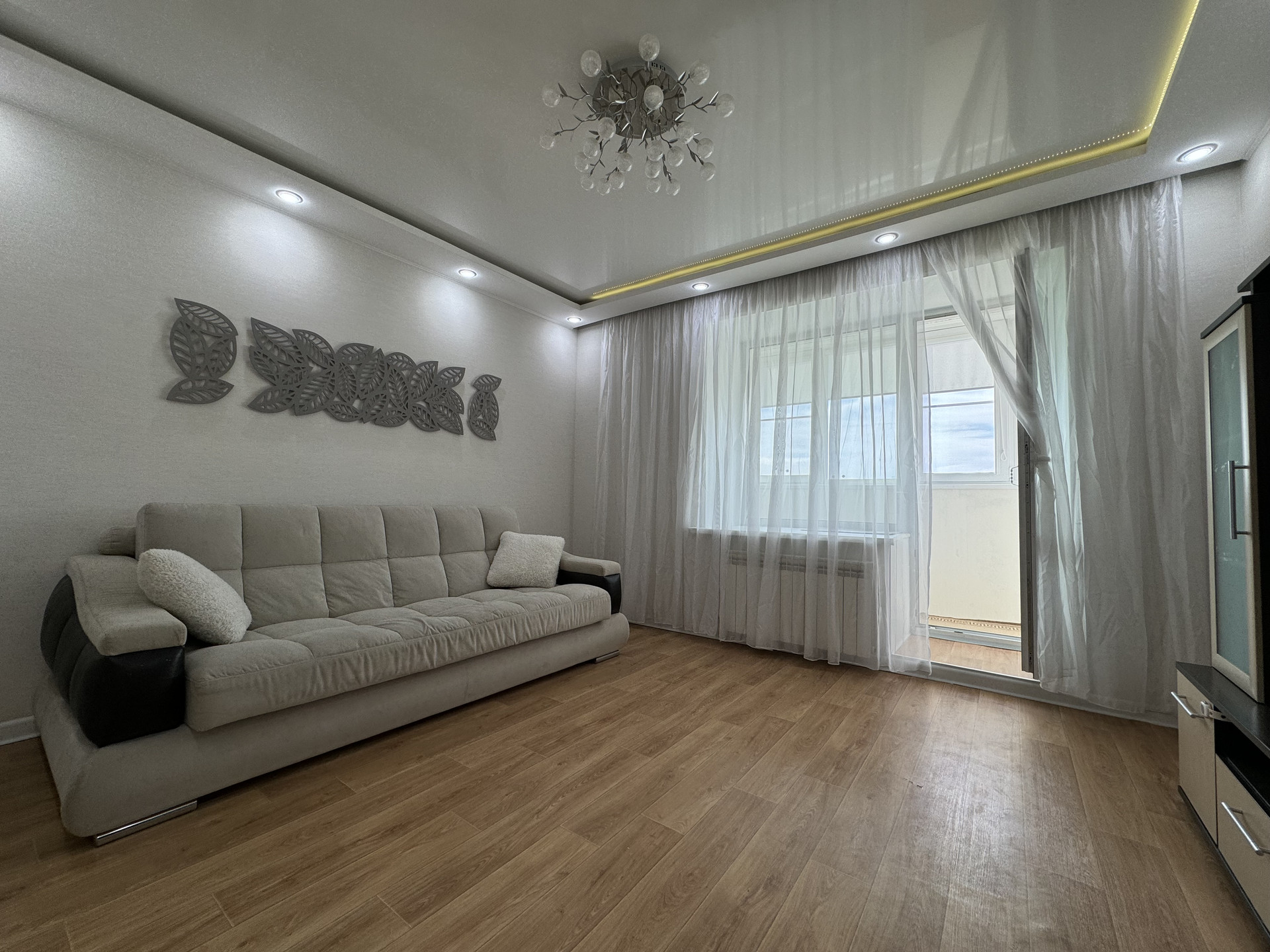 Квартира имеет жилую площадь 20.8 квадратных метров и просторную кухню площадью 8.9 квадратных метров, что создаёт комфортное пространство для приготовления пищи и семейных ужинов. Наличие утепленного пенополистиролом балкона добавляет приятные моменты отдыха с видом на тихий двор и улицу. Благодаря евроремонту, выполненному с использованием качественных материалов, жильё выглядит свежо и современно.