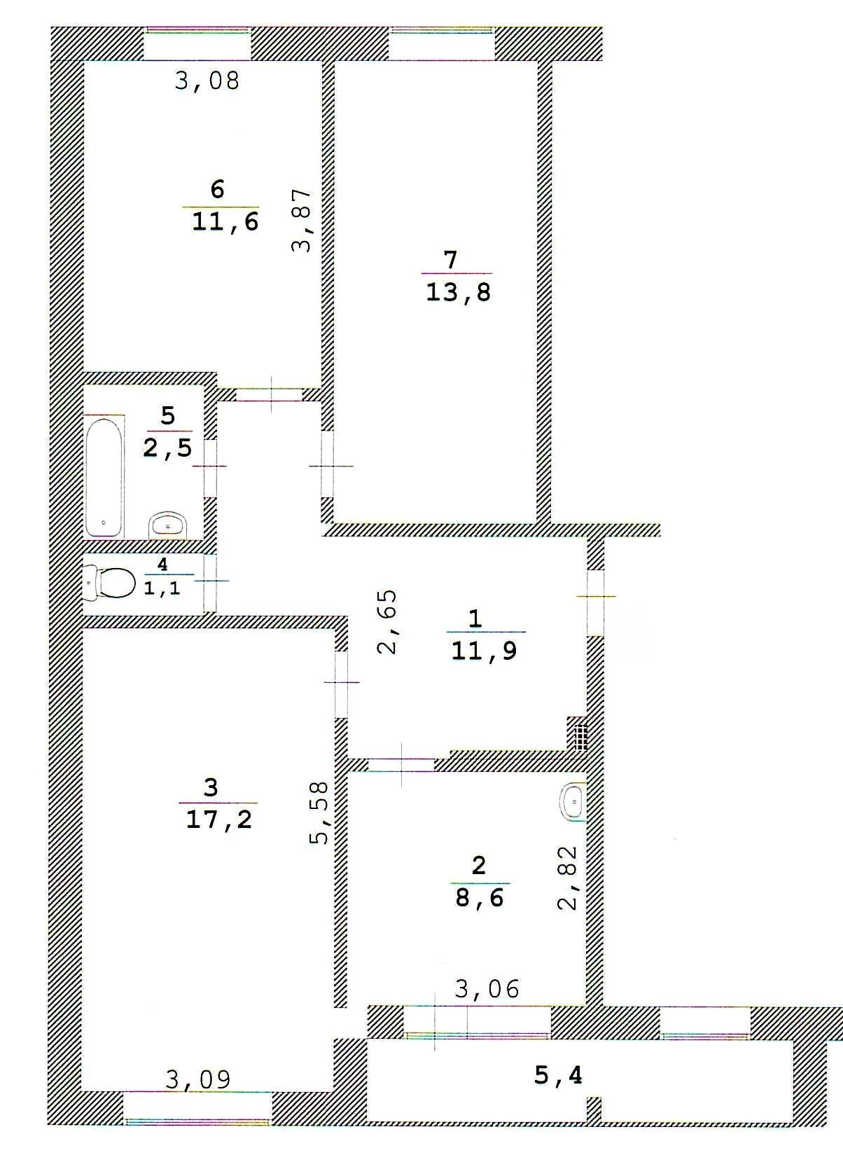 Квартира представлена тремя изолированными уютными светлыми комнатами 17,2кв.м, 11,6 кв.м., 13,8 кв.м. общей площадью в 66,7кв.м. Дополняет квартиру просторная функциональная кухня в 8,6 кв.м. с выходом на застекленную лоджию