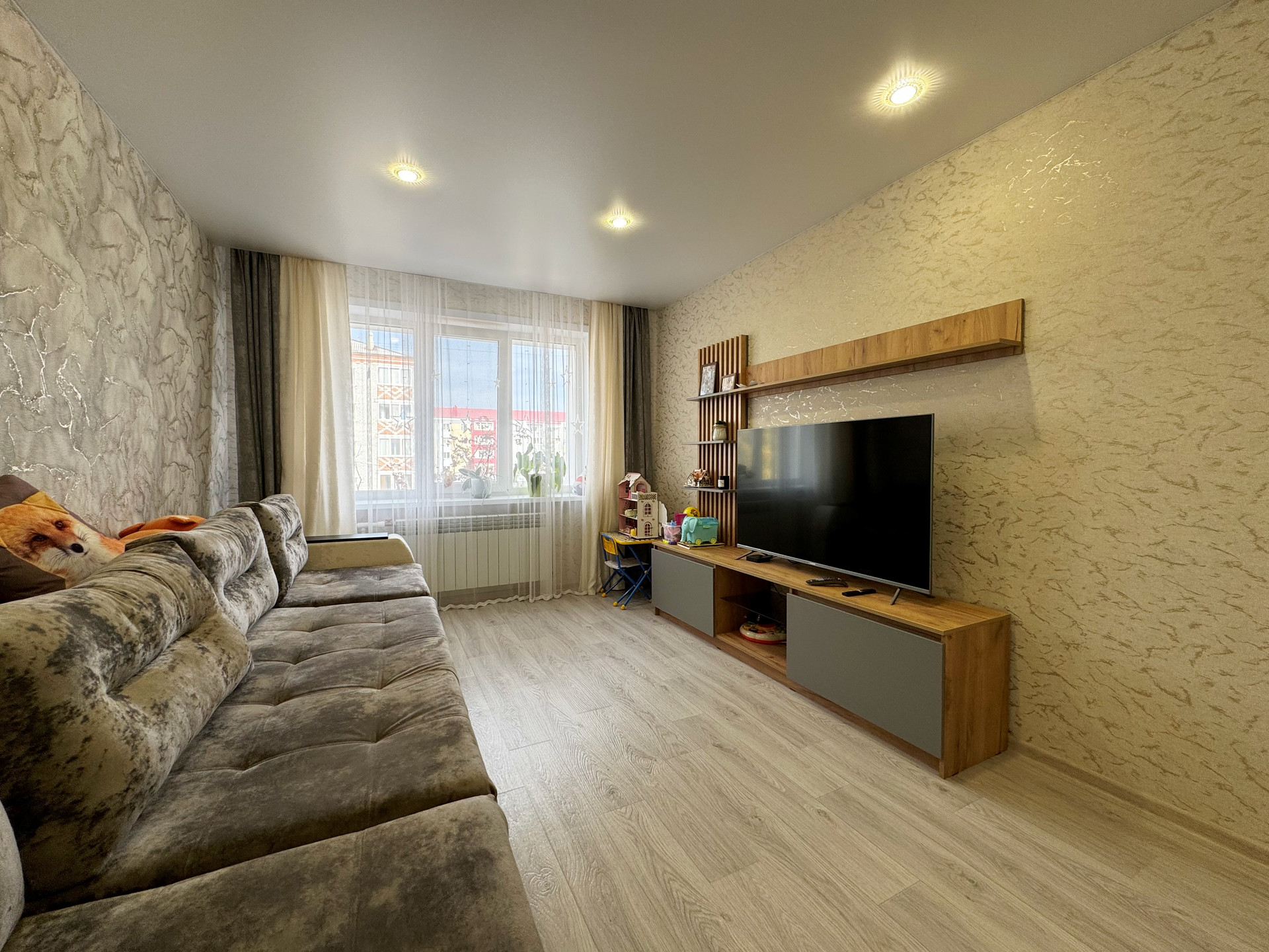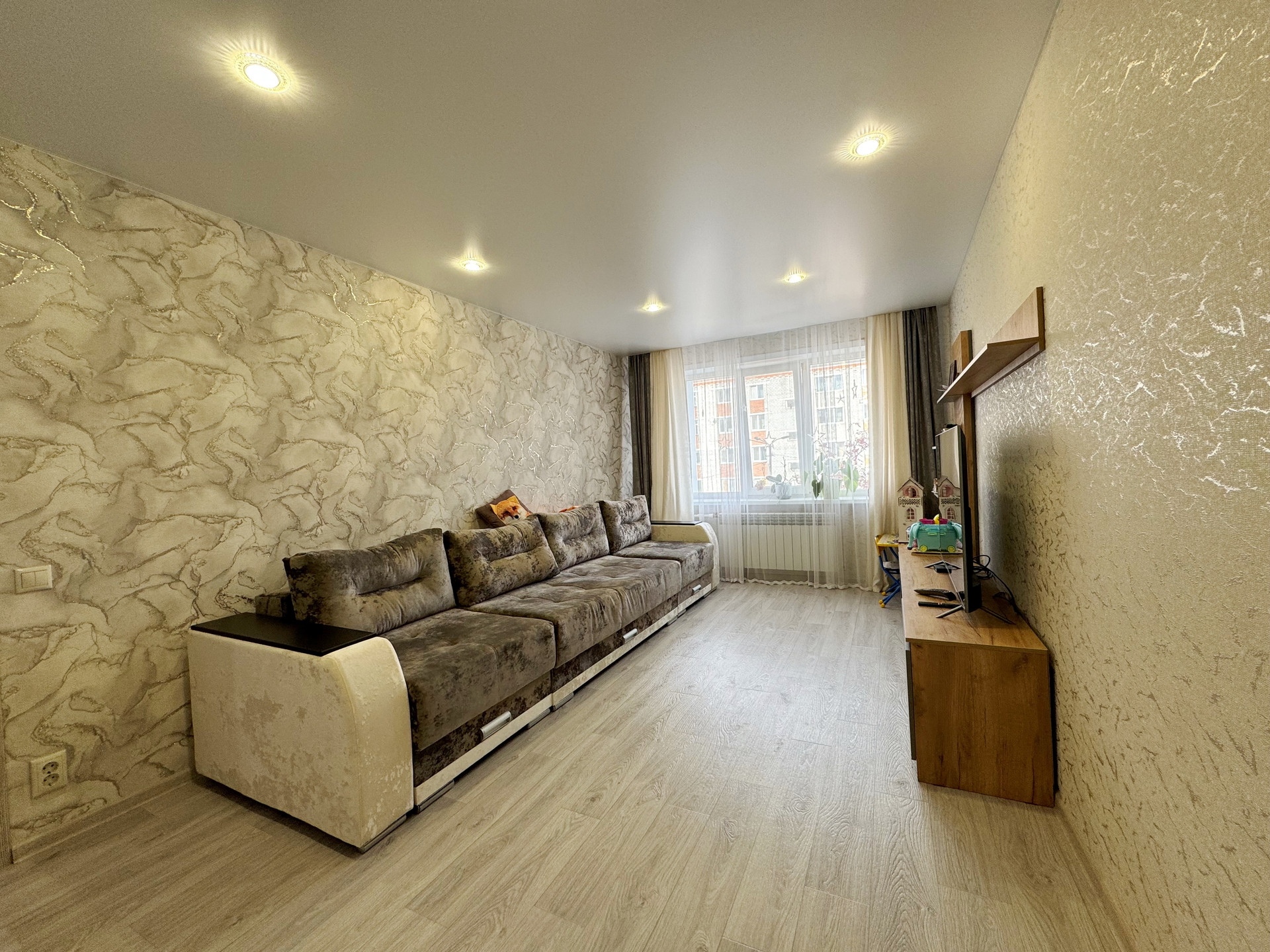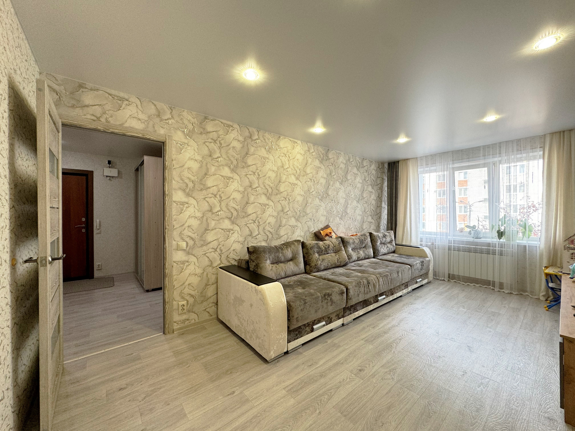 Установлены пластиковые стеклопакеты, которые обеспечивают отличную тепло- и шумоизоляцию. Полы полностью залиты заново и покрыты качественным коммерческим линолеумом, что придает дополнительный комфорт.