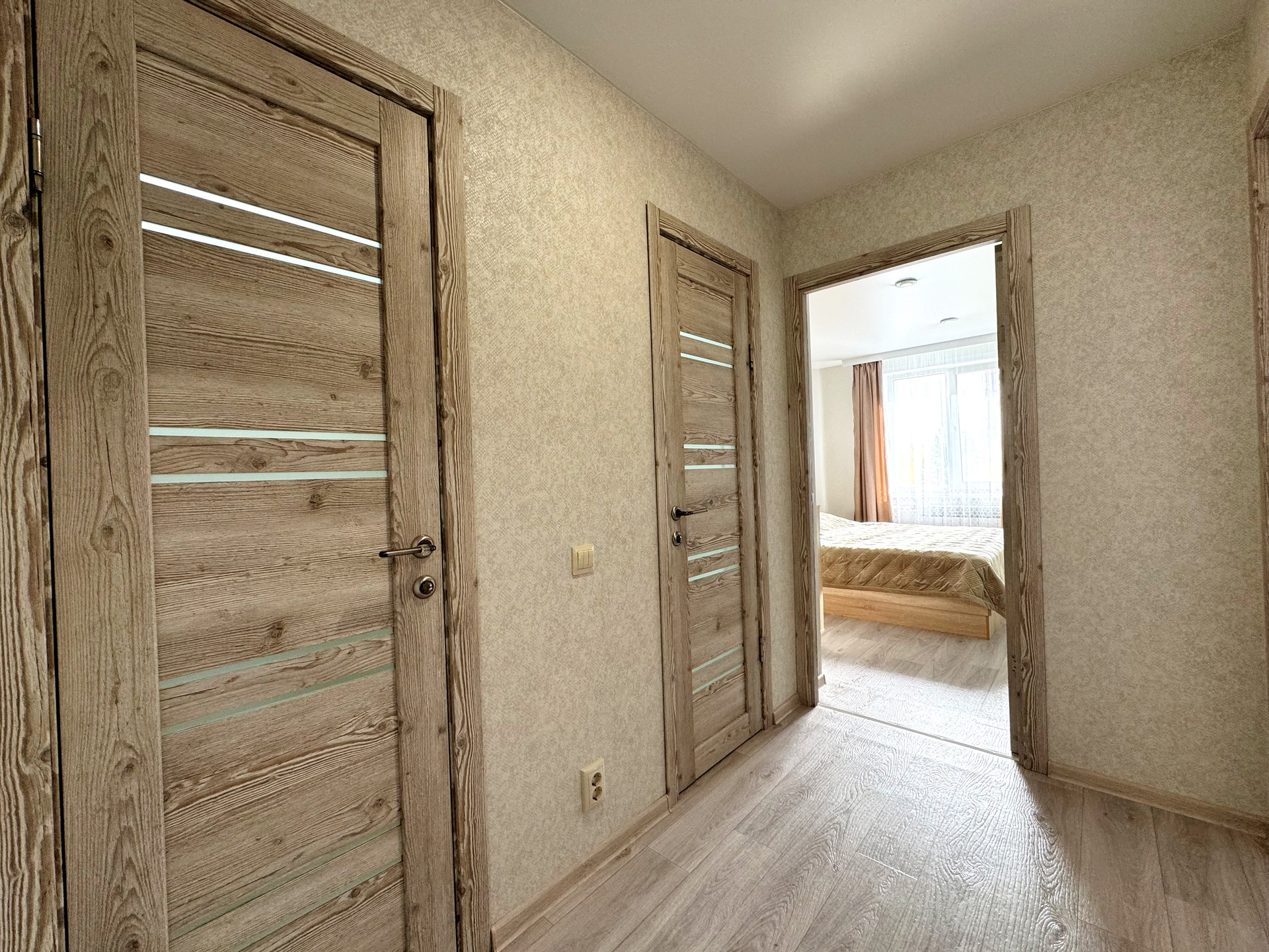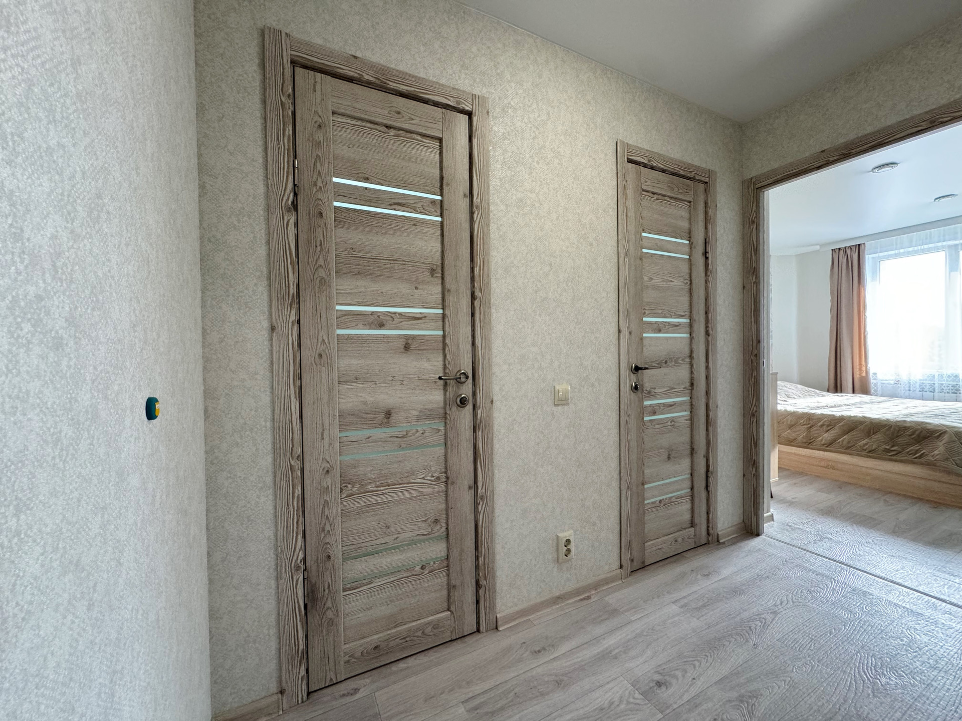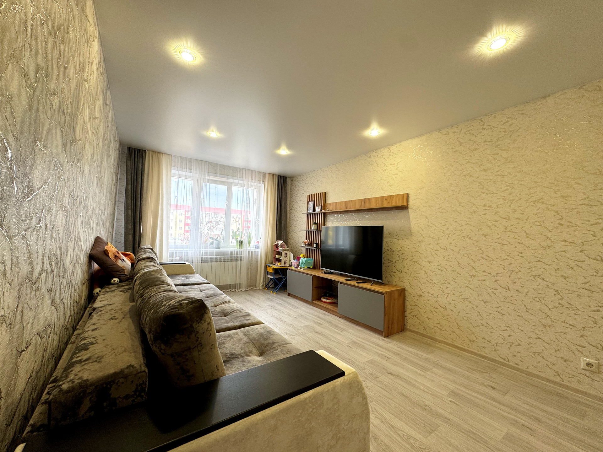 Установлены пластиковые стеклопакеты, которые обеспечивают отличную тепло- и шумоизоляцию. Полы полностью залиты заново и покрыты качественным коммерческим линолеумом, что придает дополнительный комфорт.