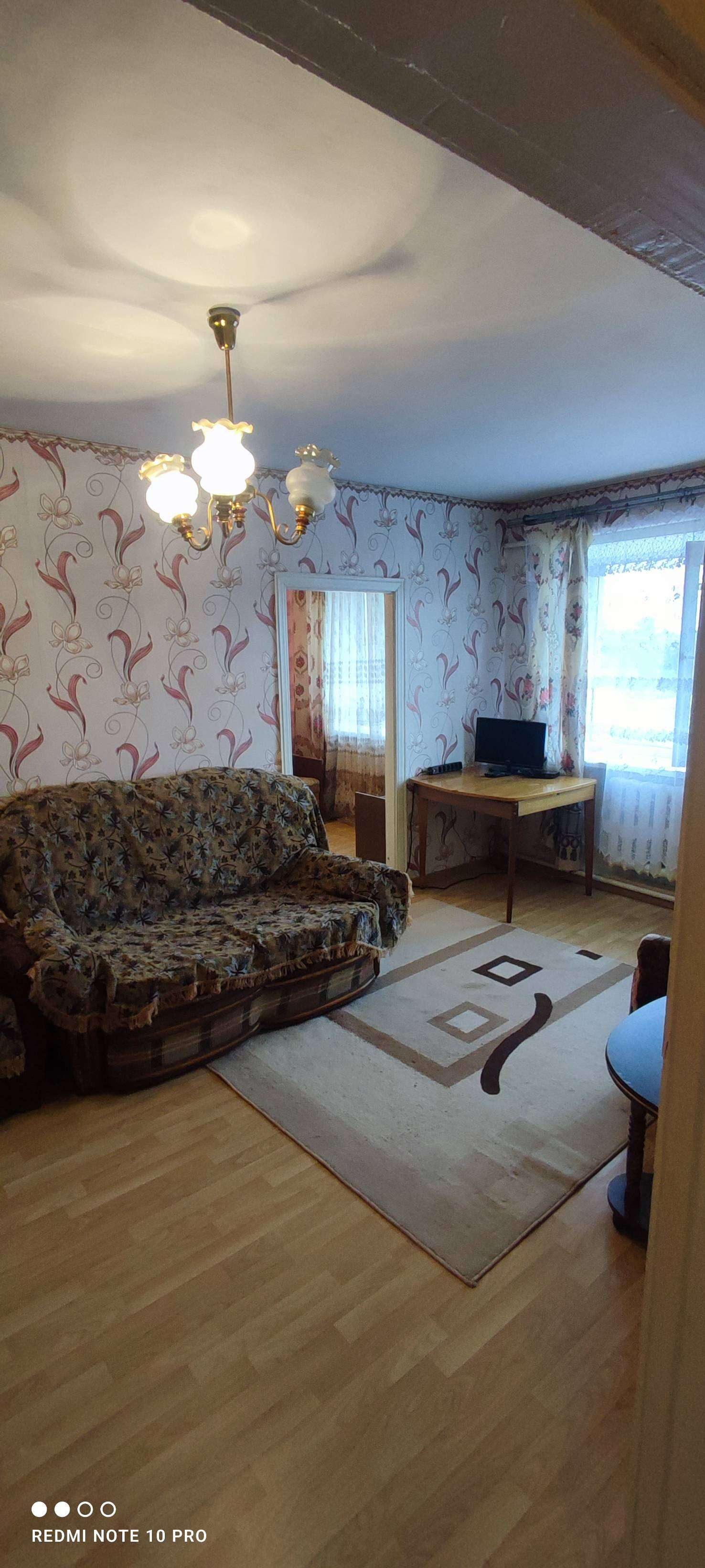 Продаю  квартиру 44.3 кв.м со всеми удобствами, 1 собственник (не агенство и не нуждаюсь в помощи) (долгов нет, с документами всё впорядке)..квартира в хорошем состоянии, окна ПВХ. отопление круглый год,заезжай и живи.. Оставлю всю мебель и электронику как на фото. Есть триколор.. Рядом с домом 100м есть большое озеро для рыбалки и отдыха.. Магазины (магнит.пятерочка) и много других.. Сад. Школа. Больница.. По запросу вышлю видео квартиры..