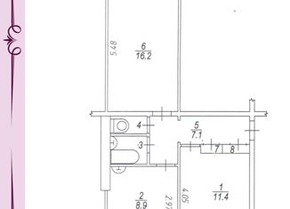 Продается 2-комнатная квартира, 49.5 м2, Кустовиновская улица, 7