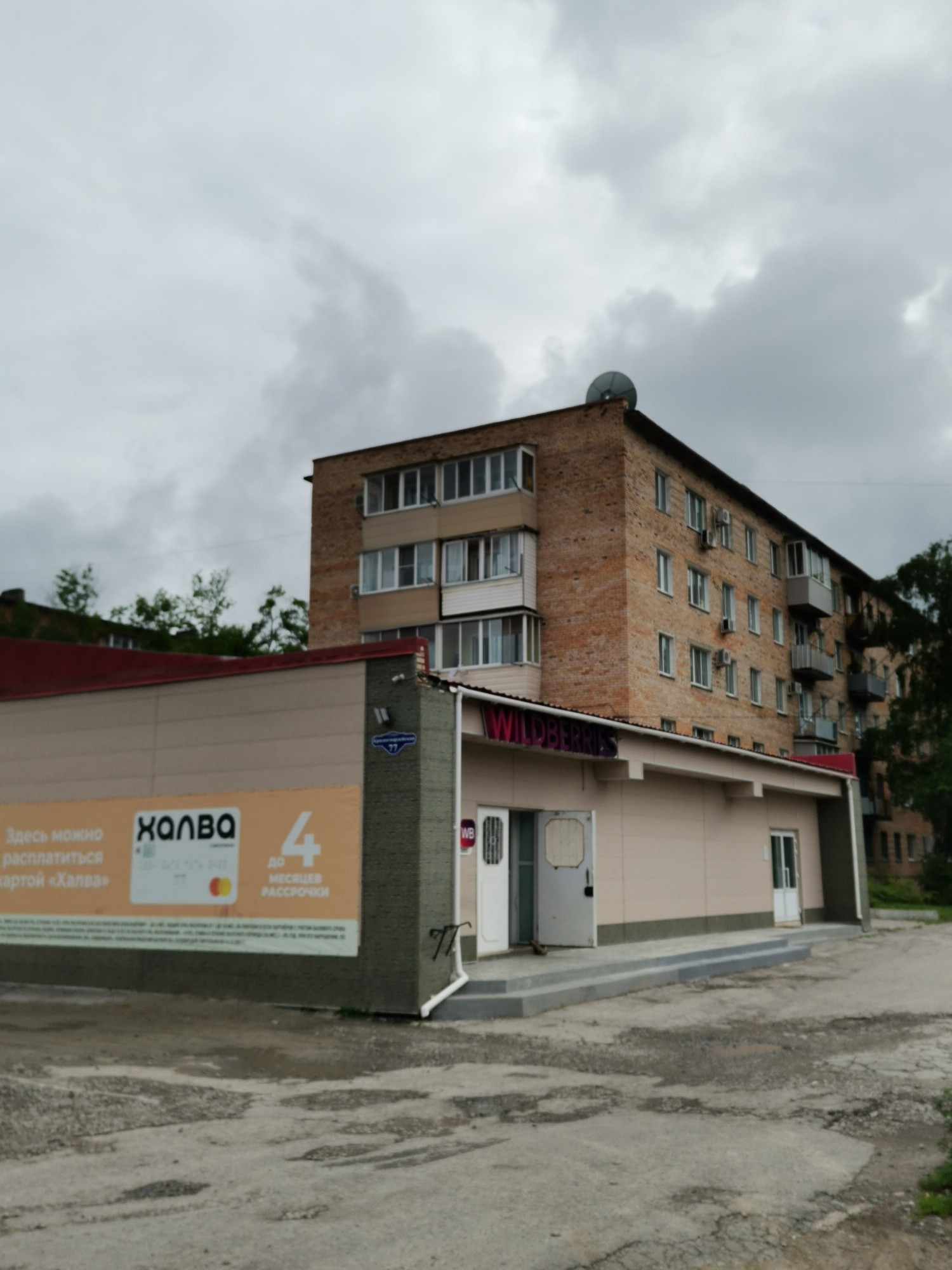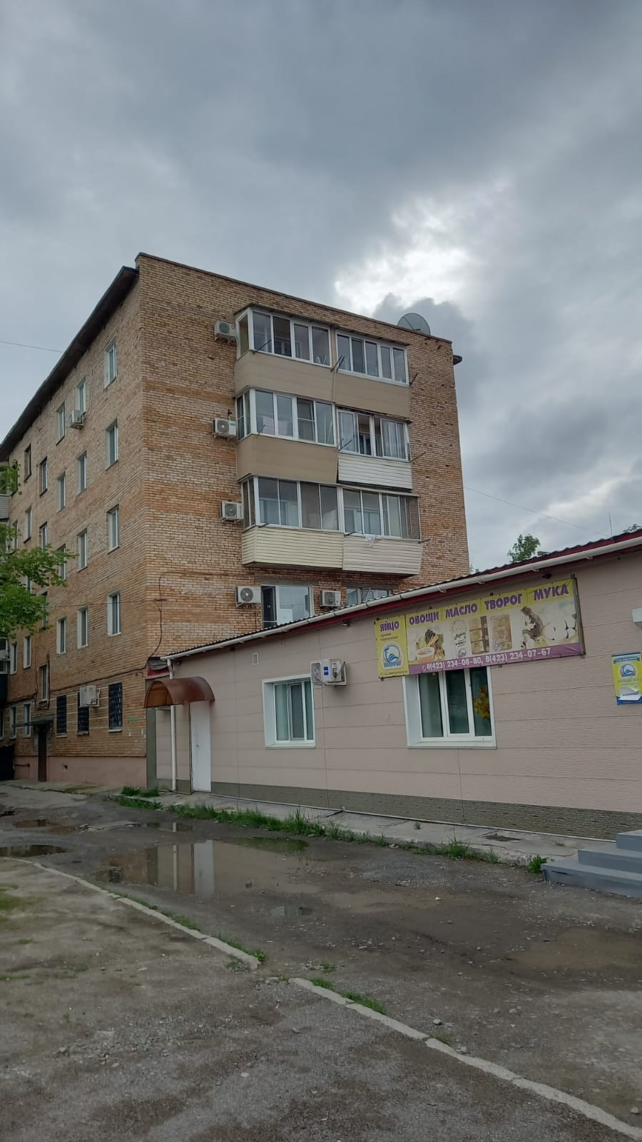 двор, хорошо озеленен, также будет асфальтирован,в ближайшее время так как дом вошёл в программу Приморского края "1000 дворов" есть парковочные места.
