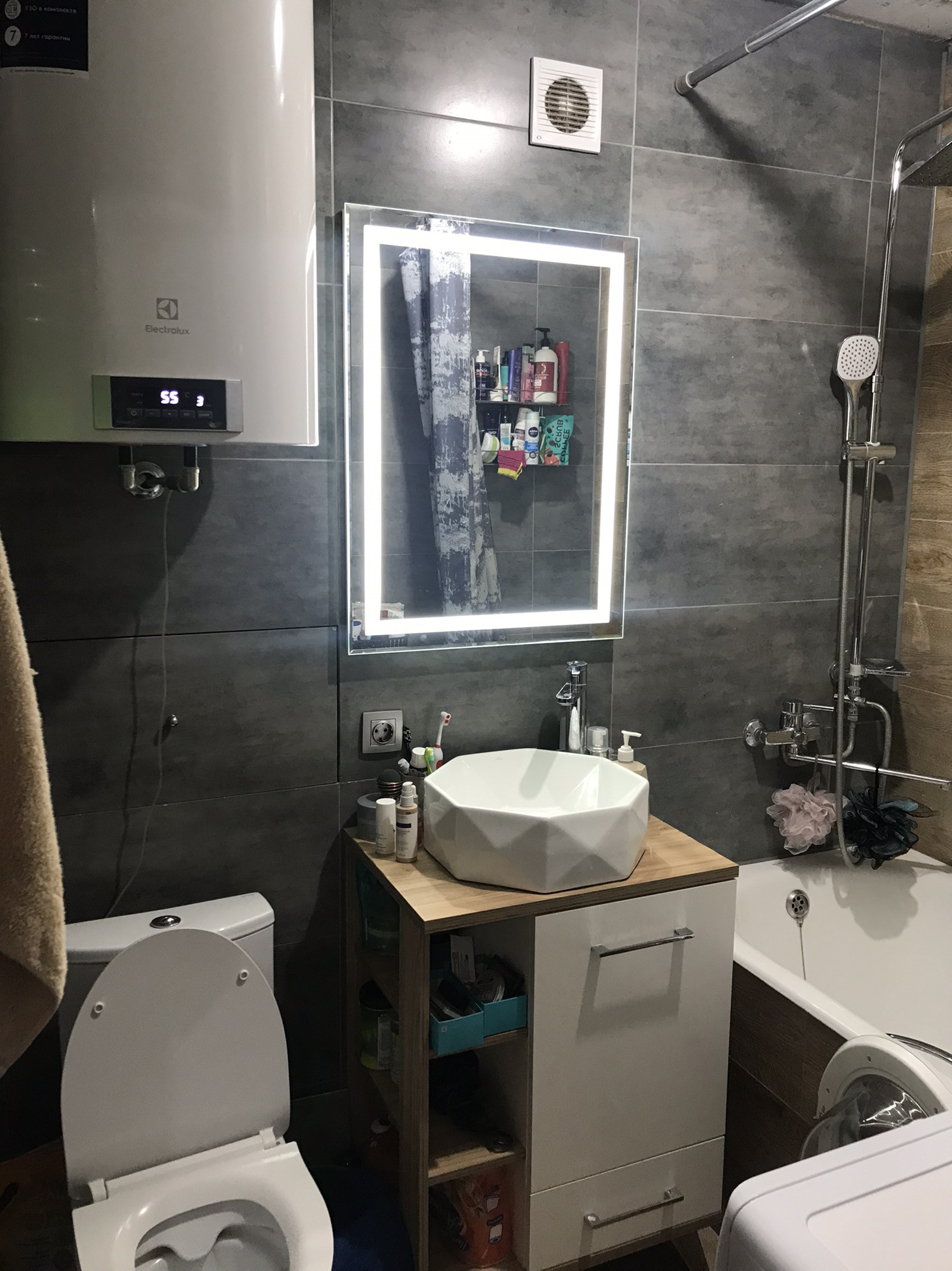 Выполнен капитальный ремонт санузла - новая сантехника, отделка, все трубы, установлен прибор учета воды, титан, стиральная машина -автомат
