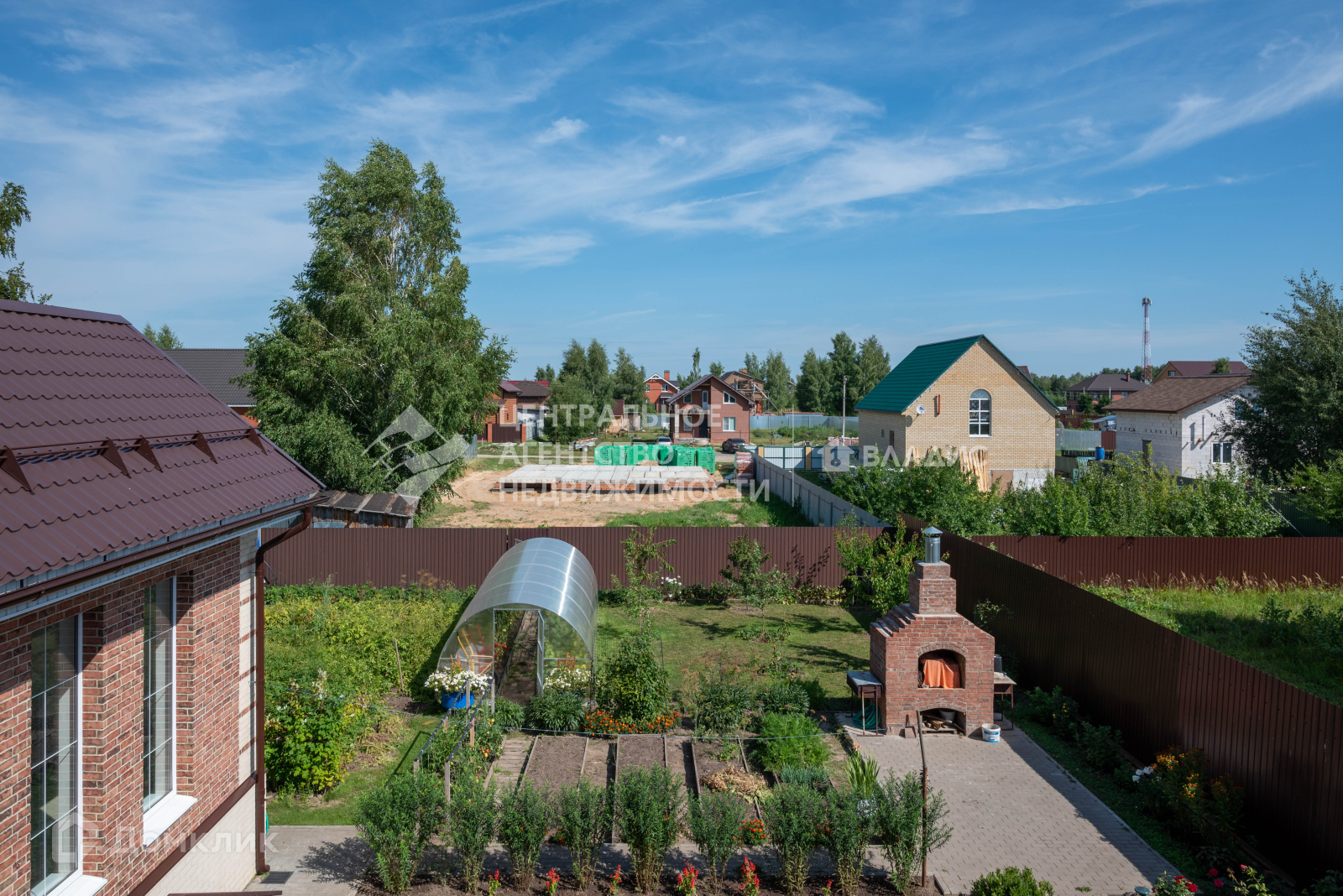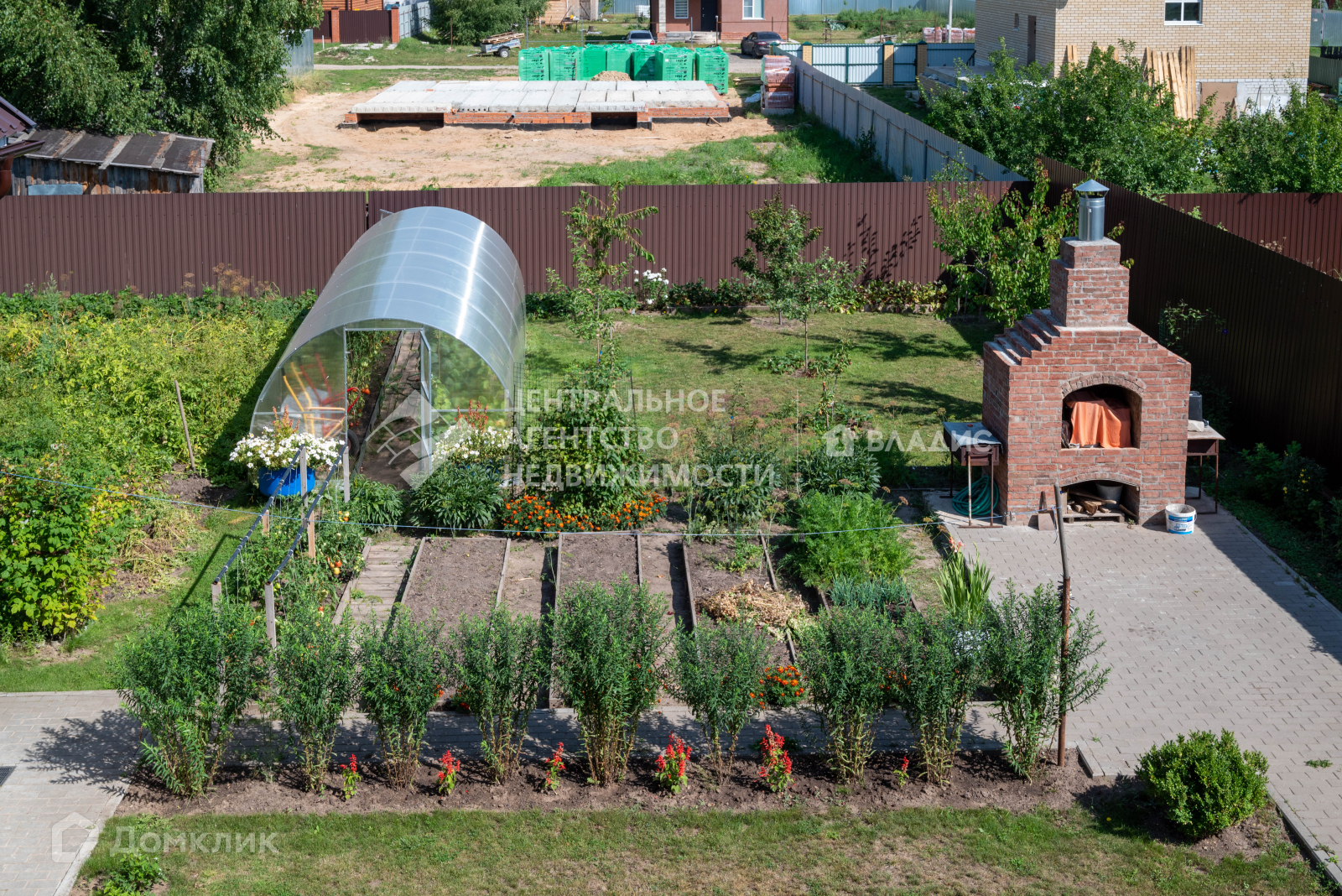 Дом находится на земельном участке 8 соток,  правильной формы. На территории обустроена зона отдыха:  мангал, качели, печь. Участок ухожен, много зеленых насаждений.