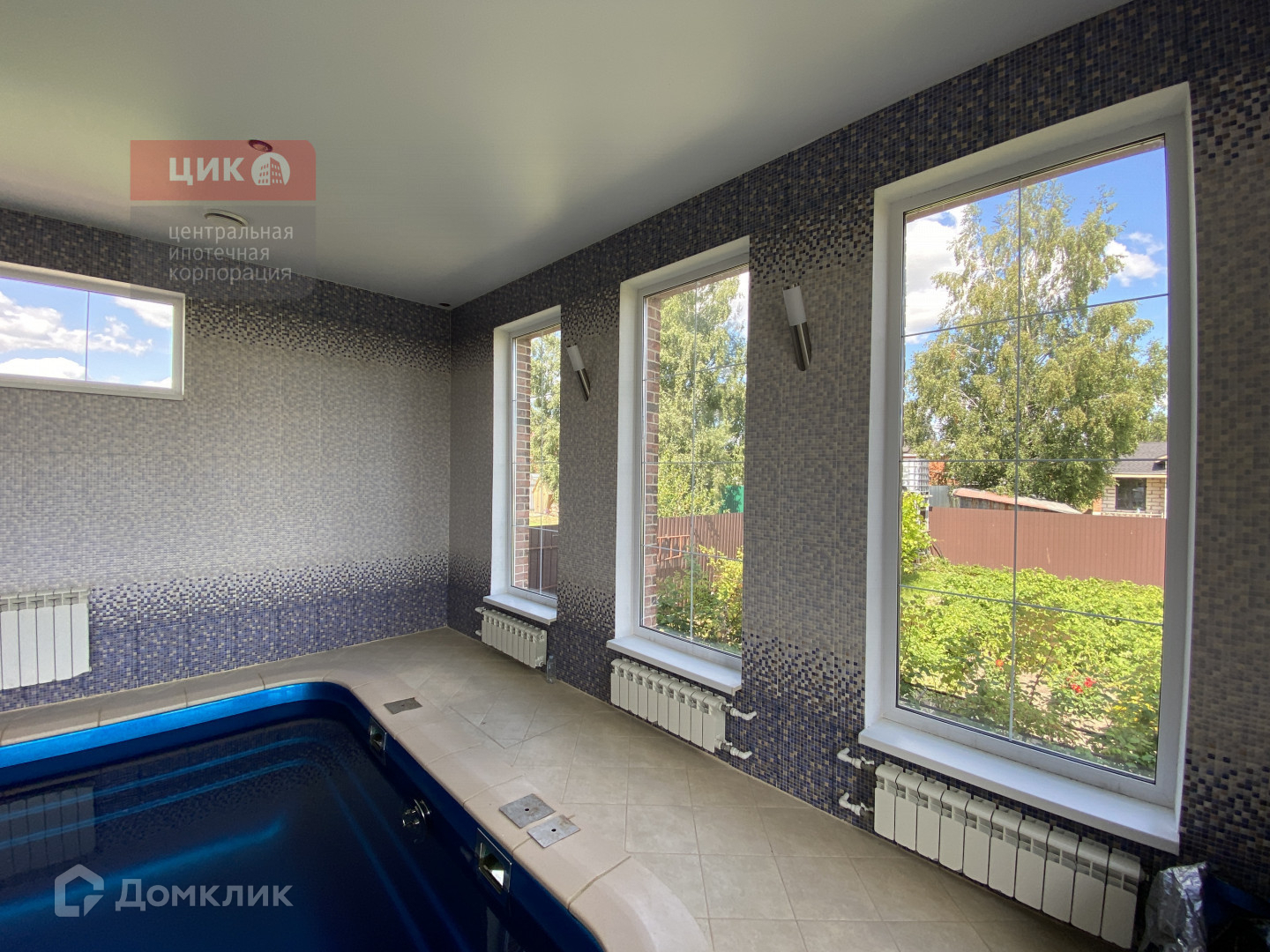 Бассейн с системой очистки и подогревом 75 кв.м.  в доме с панорамными окнами и прекрасным видом на дворик