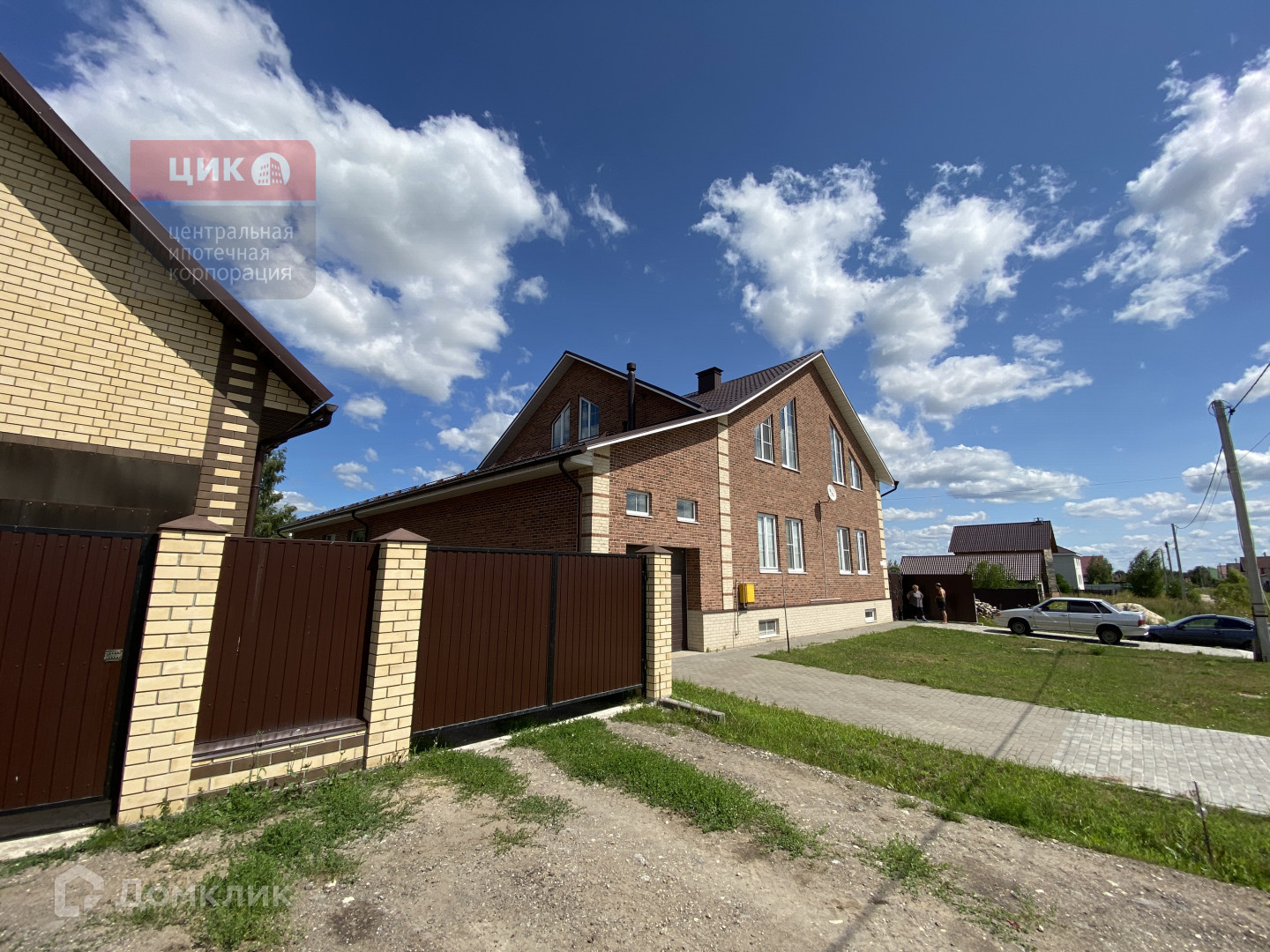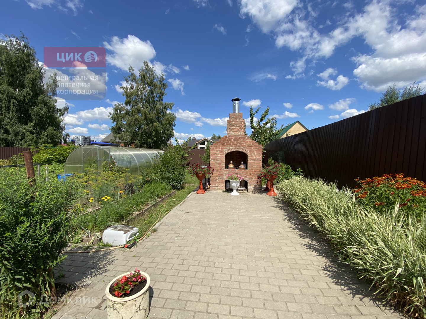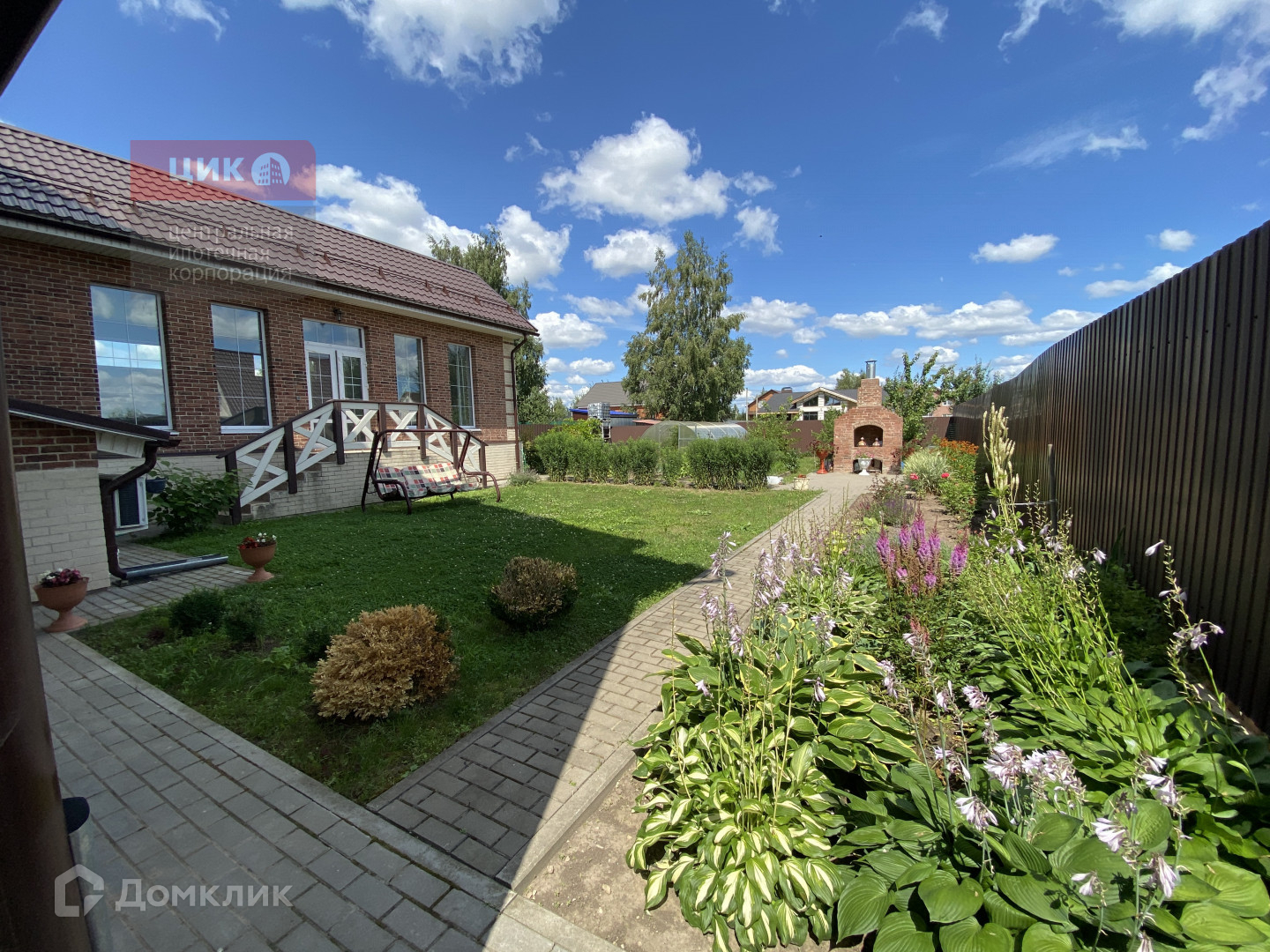 Участок правильной формы 9 соток , с обустроенными дорожками из брусчатки и парковочными местами перед домом