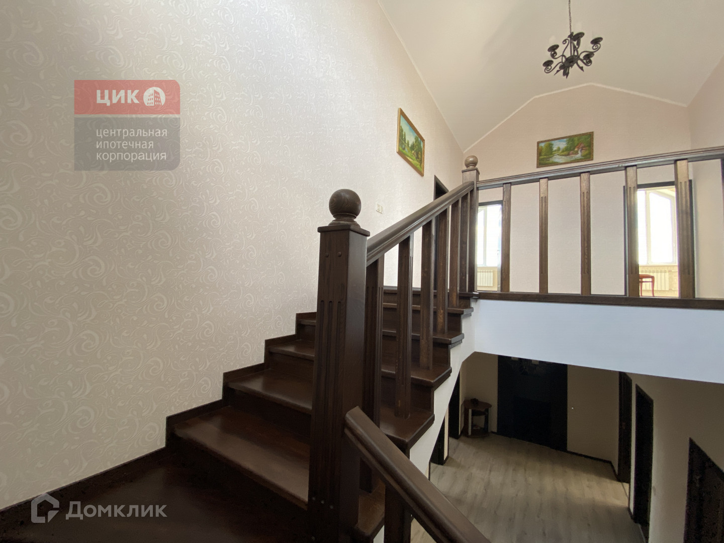 Лестница на второй этаж из натурального дерева