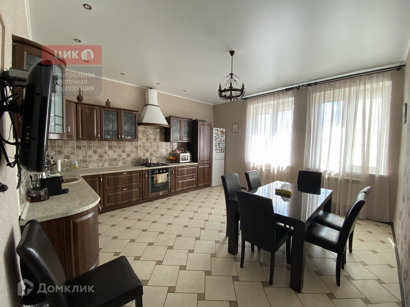 Большая кухня-столовая с отличной мебелью и техникой