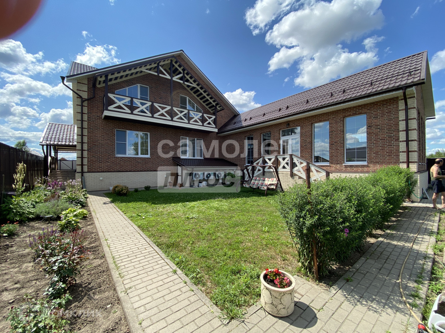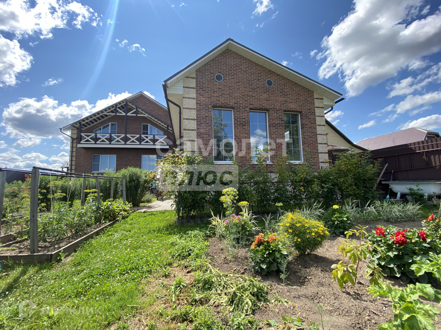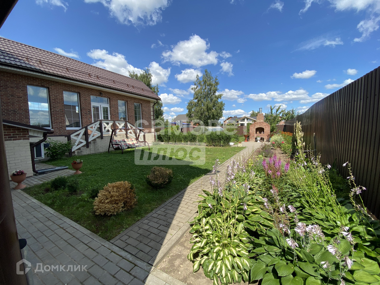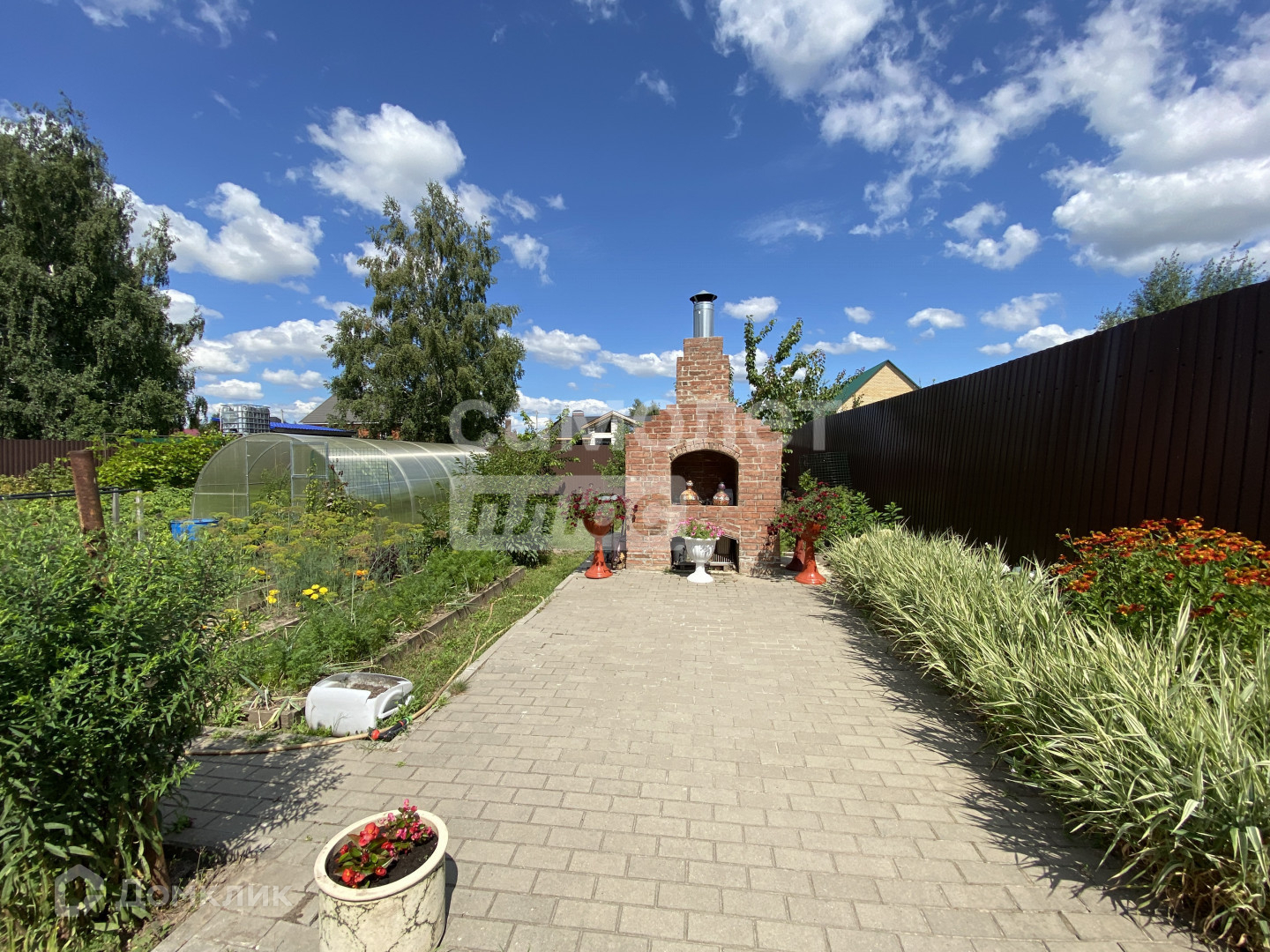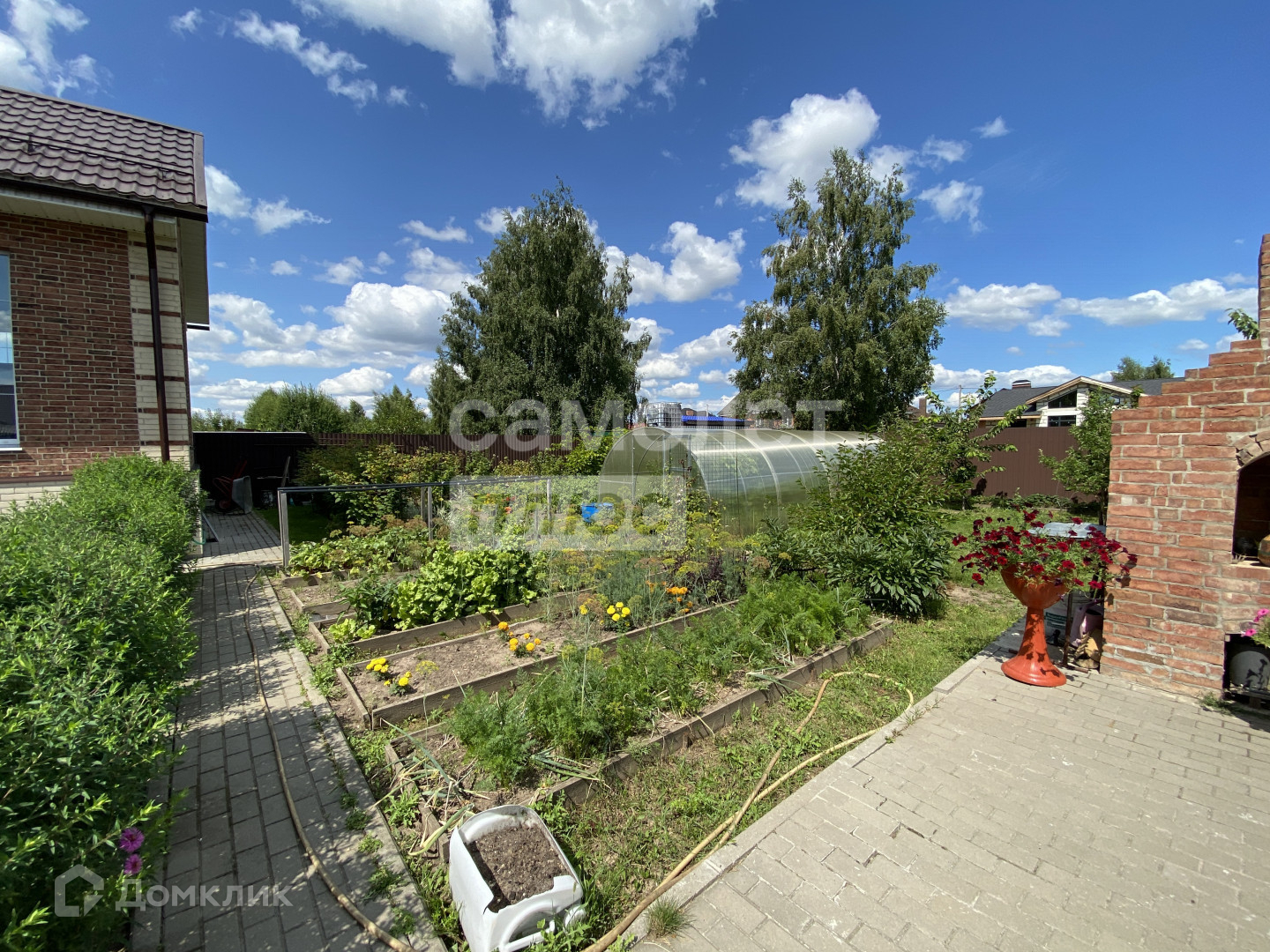 Участок правильной формы 9 соток , с обустроенными дорожками из брусчатки и парковочными местами перед домом