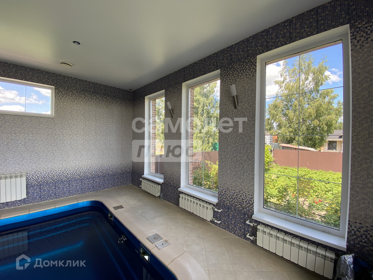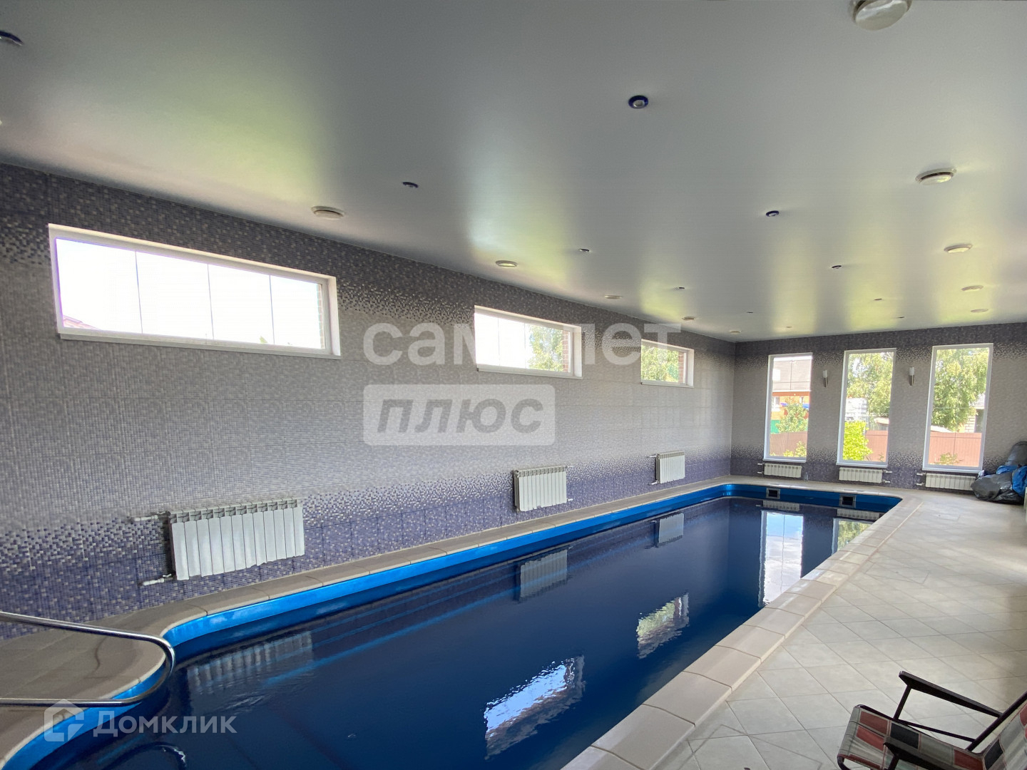 Бассейн с системой очистки и подогревом 75 кв.м. в доме с панорамными окнами и прекрасным видом на дворик