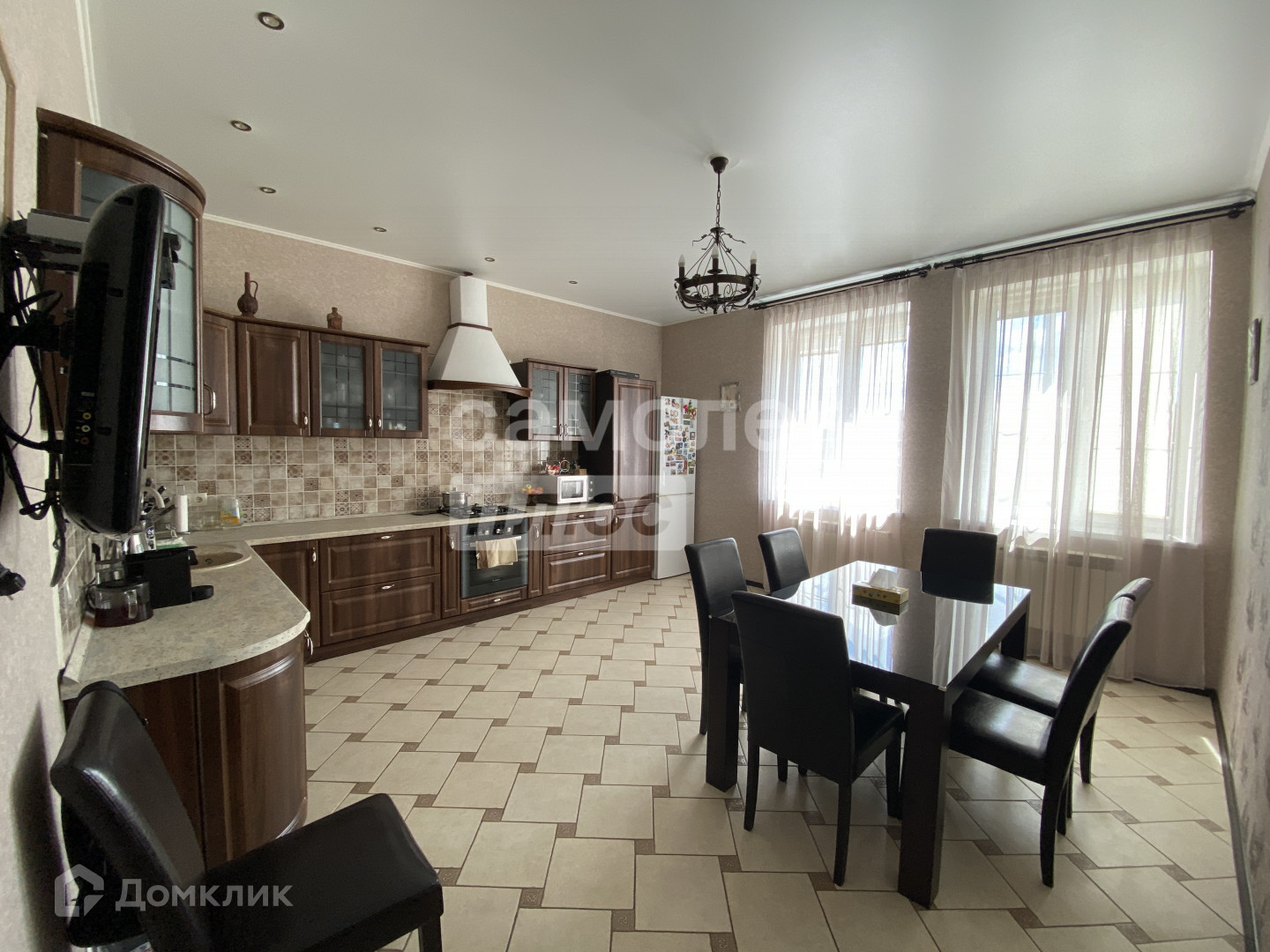 Большая кухня-столовая с отличной мебелью и техникой
