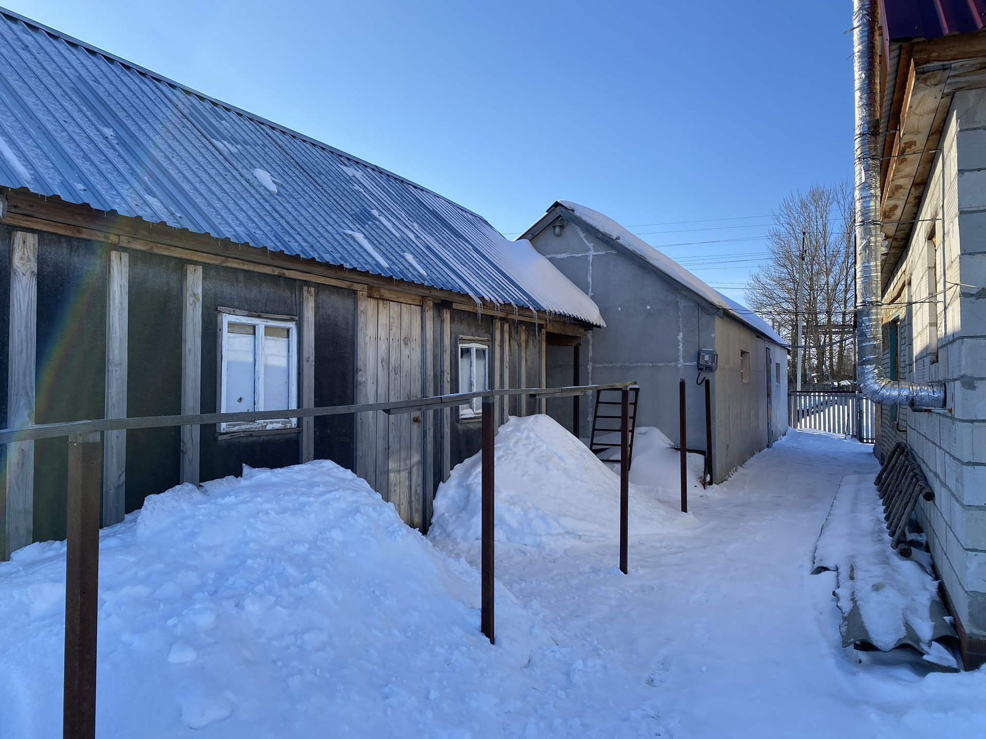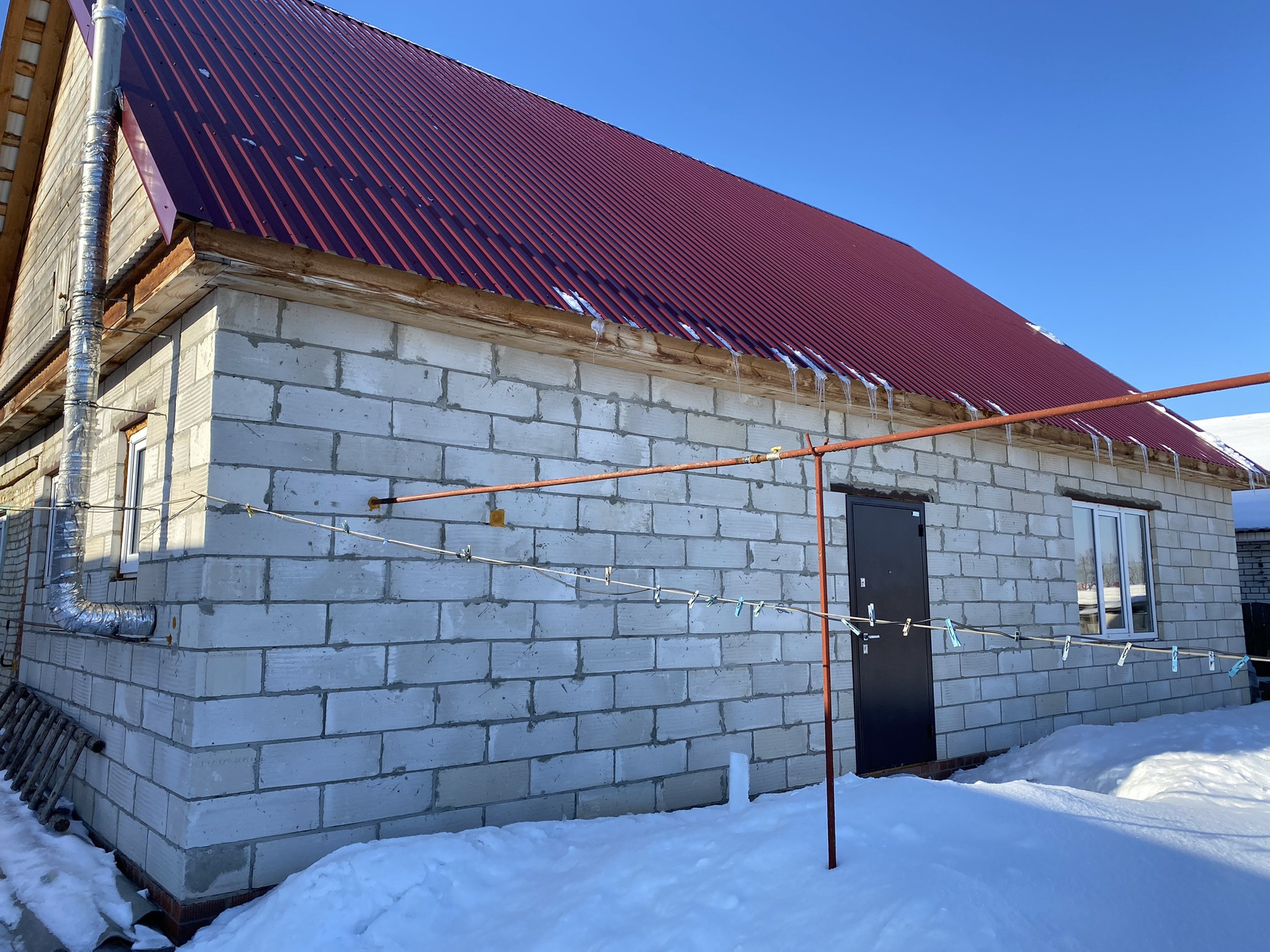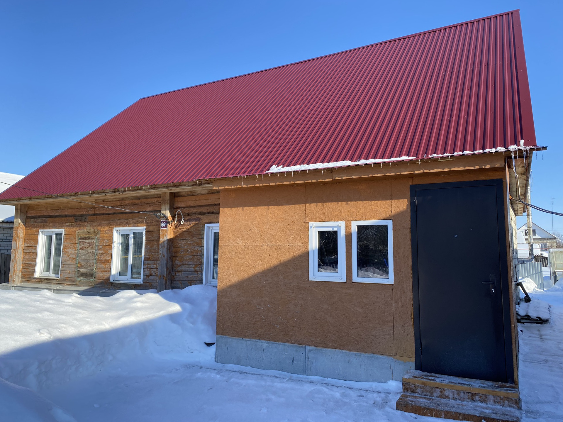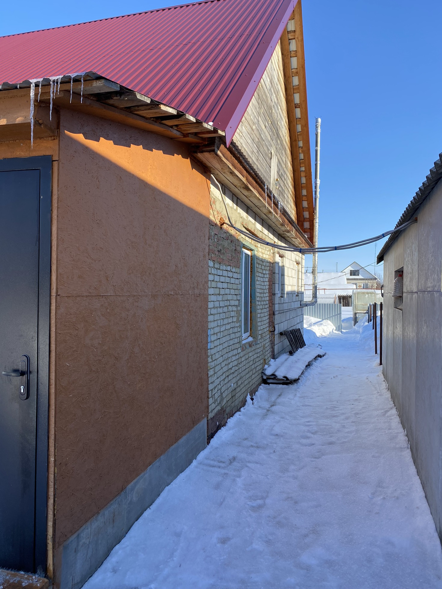 Строение смешанного типа - дерево и блок, фундамент из кирпича. Окна пластиковые, входные металлические двери. Два входа в дом. Крыша крыта железом. Все коммуникации подведены. На территории дома большой гараж с погребом, сарай. Остальные вопросы по телефону.