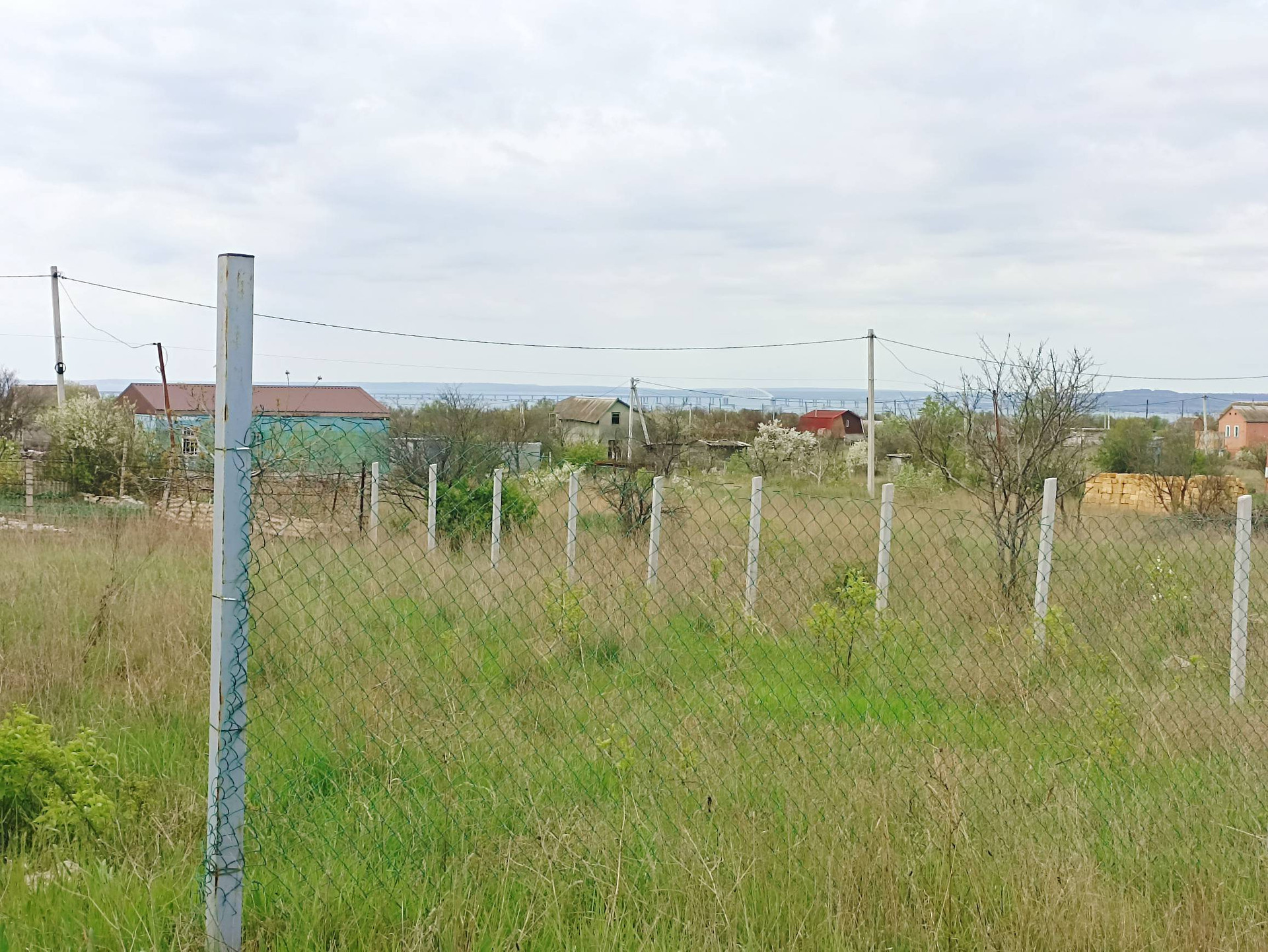 Продажа з/у от СОБСТВЕННИКА с видом на Крымский мост. Подведено электричество, установлен доп.щиток от счётчика с автоматами, розеткой. По периметру участка бетонные столбы для забора, под ворота и калитку металлические трубы 80*80 мм, с лицевой стороны натянута сетка-рабица. На участке имеется фундамент от старого дома. Активно развивается район, много кто построился и живет на постоянной основе, имеется видеонаблюдение, шлагбаум, до ближайшего пляжа 1,5 км, рядом школа, магазины, остановка. Документы все в порядке, можно сразу строиться, прописка. Торг уместен.