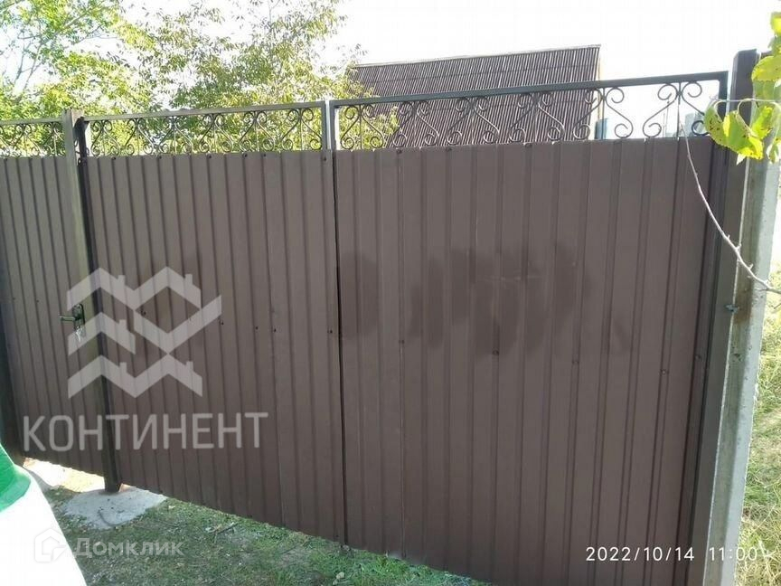 Участок огорожен с двух сторон еврозaбopом, между соседями - забор рабица, ворота распашные из профлиста.
