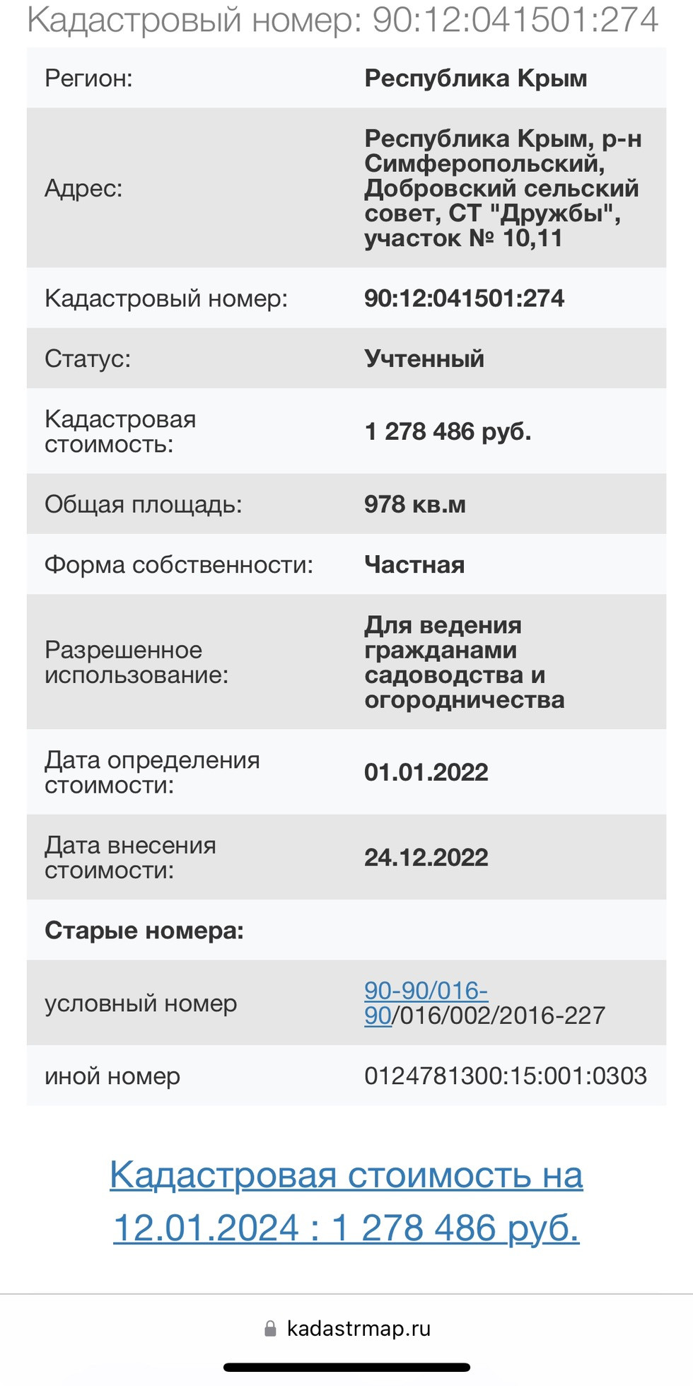 Кадастровый номер  90:12:041501:274