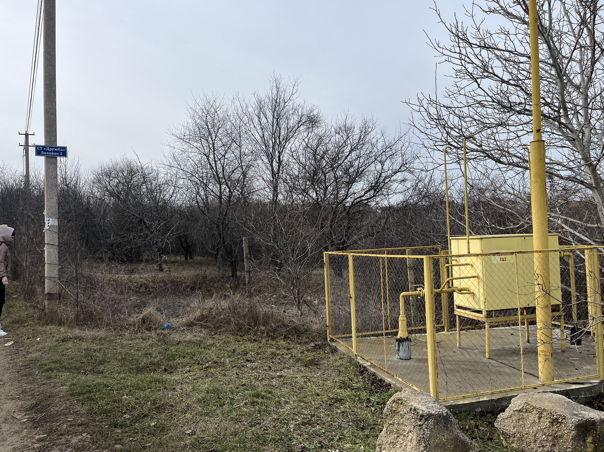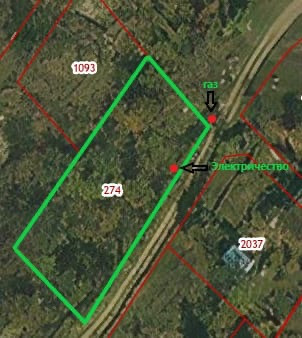 По границе участка проходит газ и свет.столб сразу за забором участка,так же как и станция с газом. (Указано на фото)подключение этих коммуникаций проблем не составит.