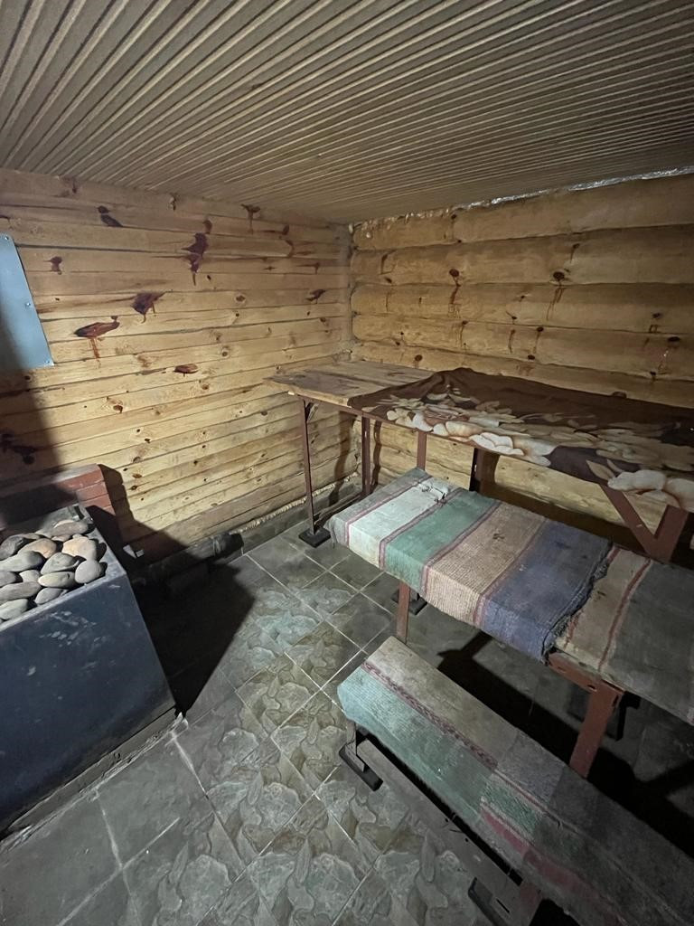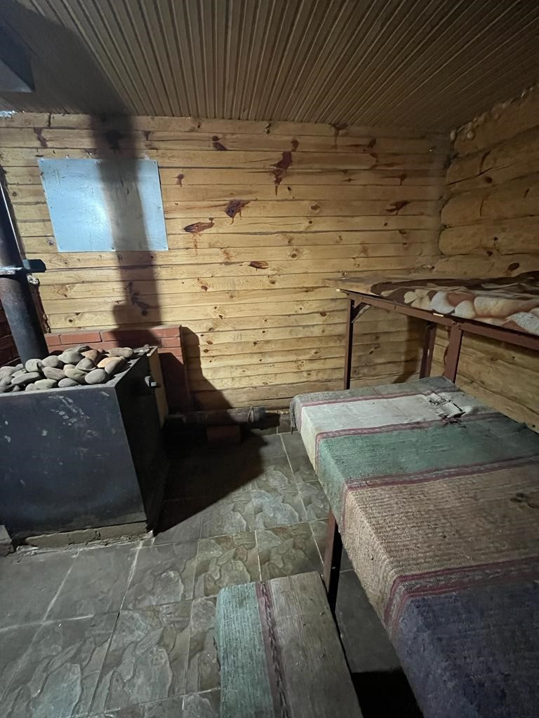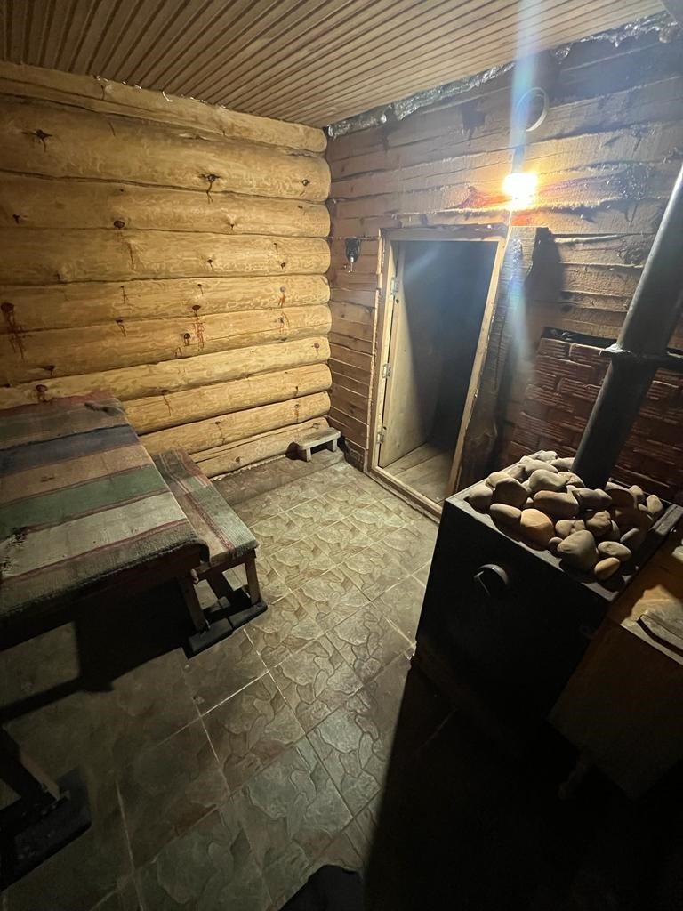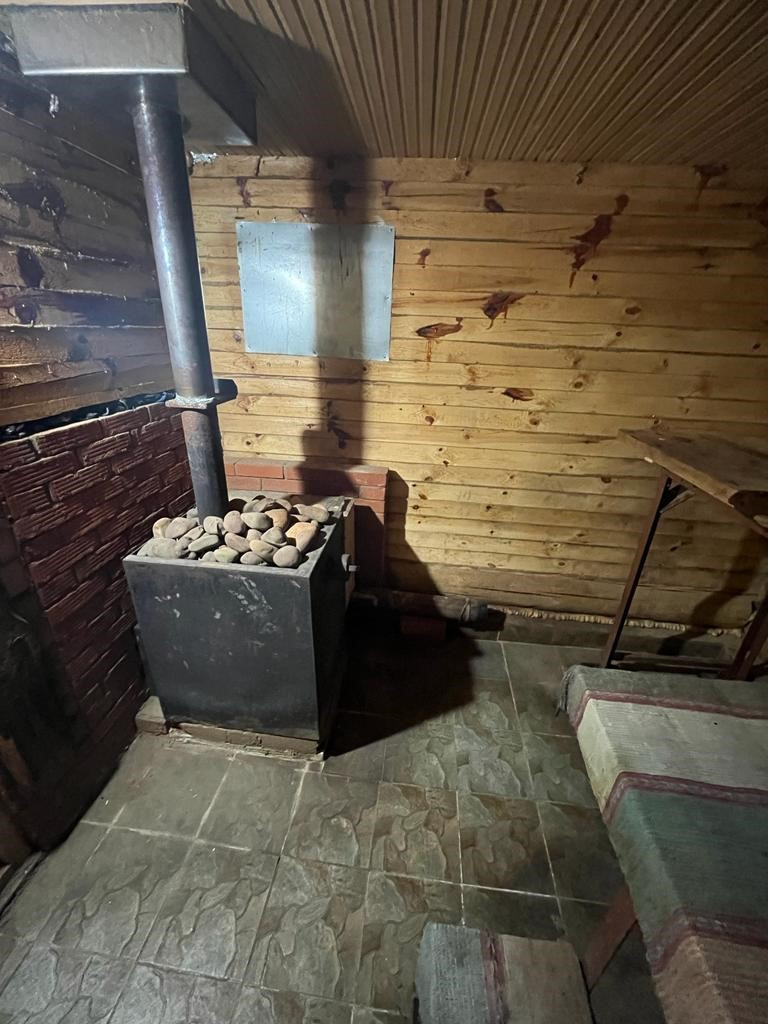 Отличная, просторная баня топи - мойся, тёплый пол, выложен плиткой, большой предбанник, печь голландка, отапливает весь дом