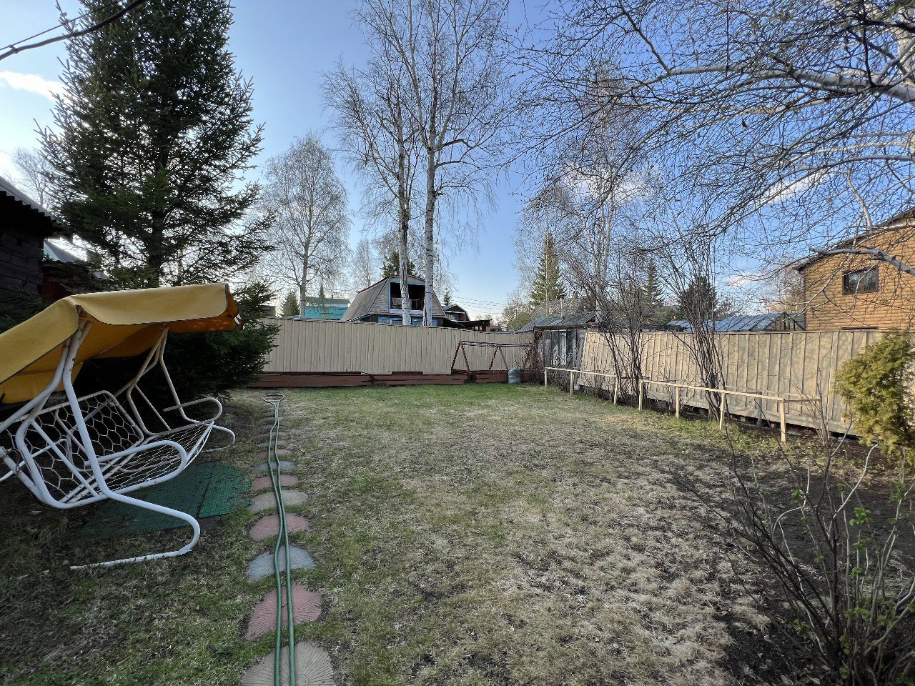 - участок 6 соток – ровный, без уклона, огорожен стильным забором;