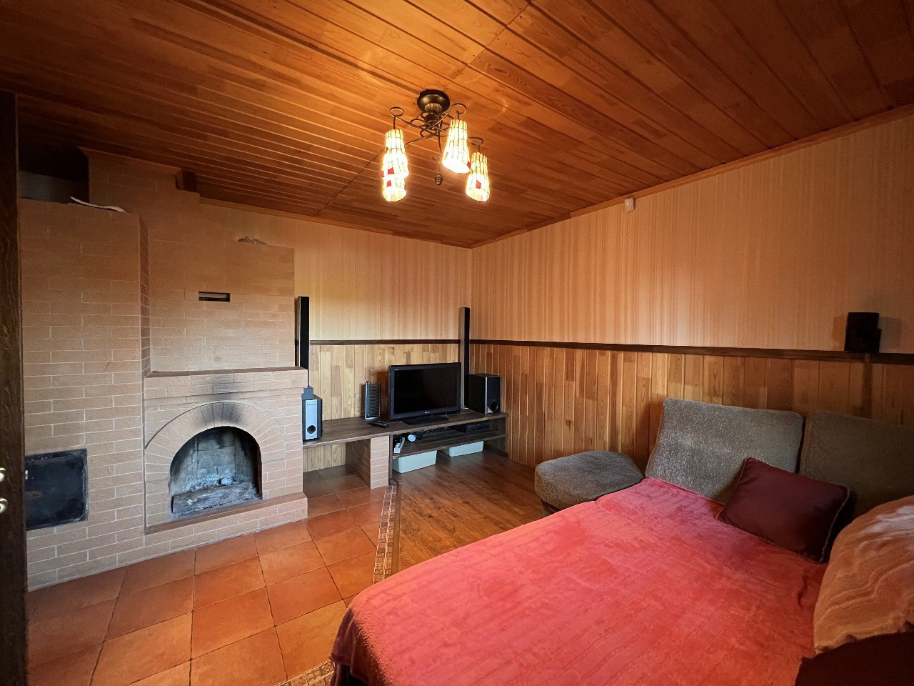 - отопление - печь с камином, электроконвекторы, тёплый пол;