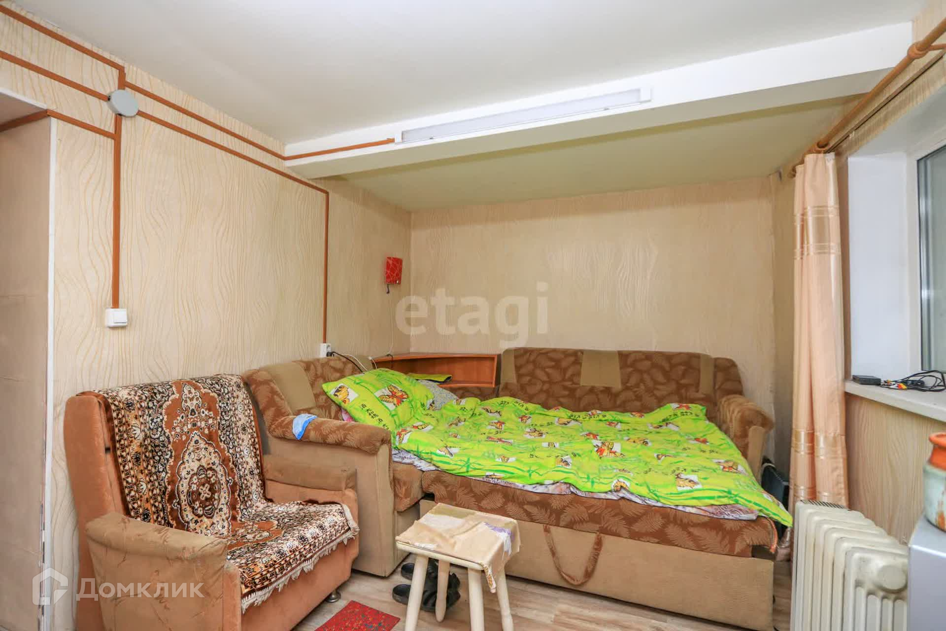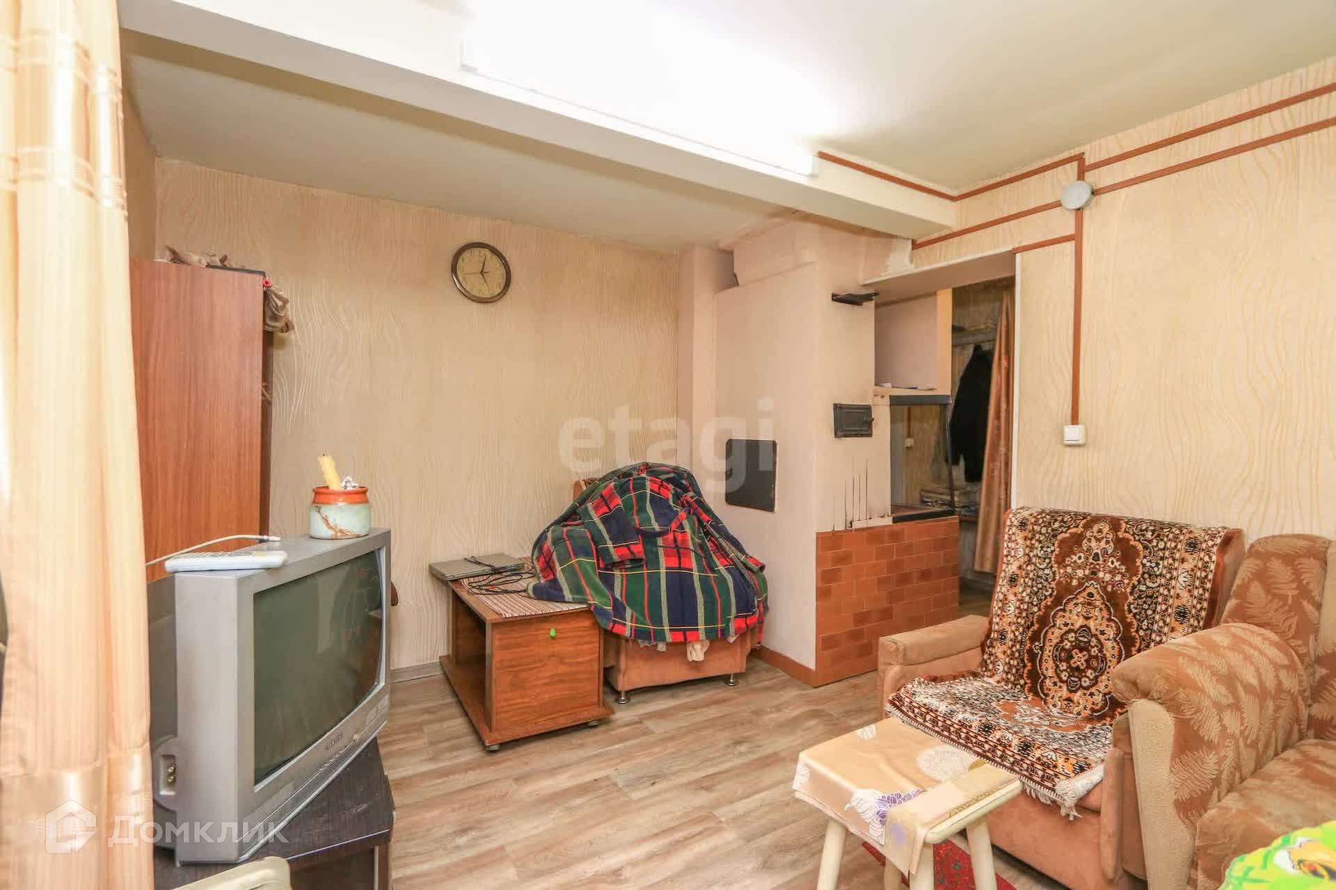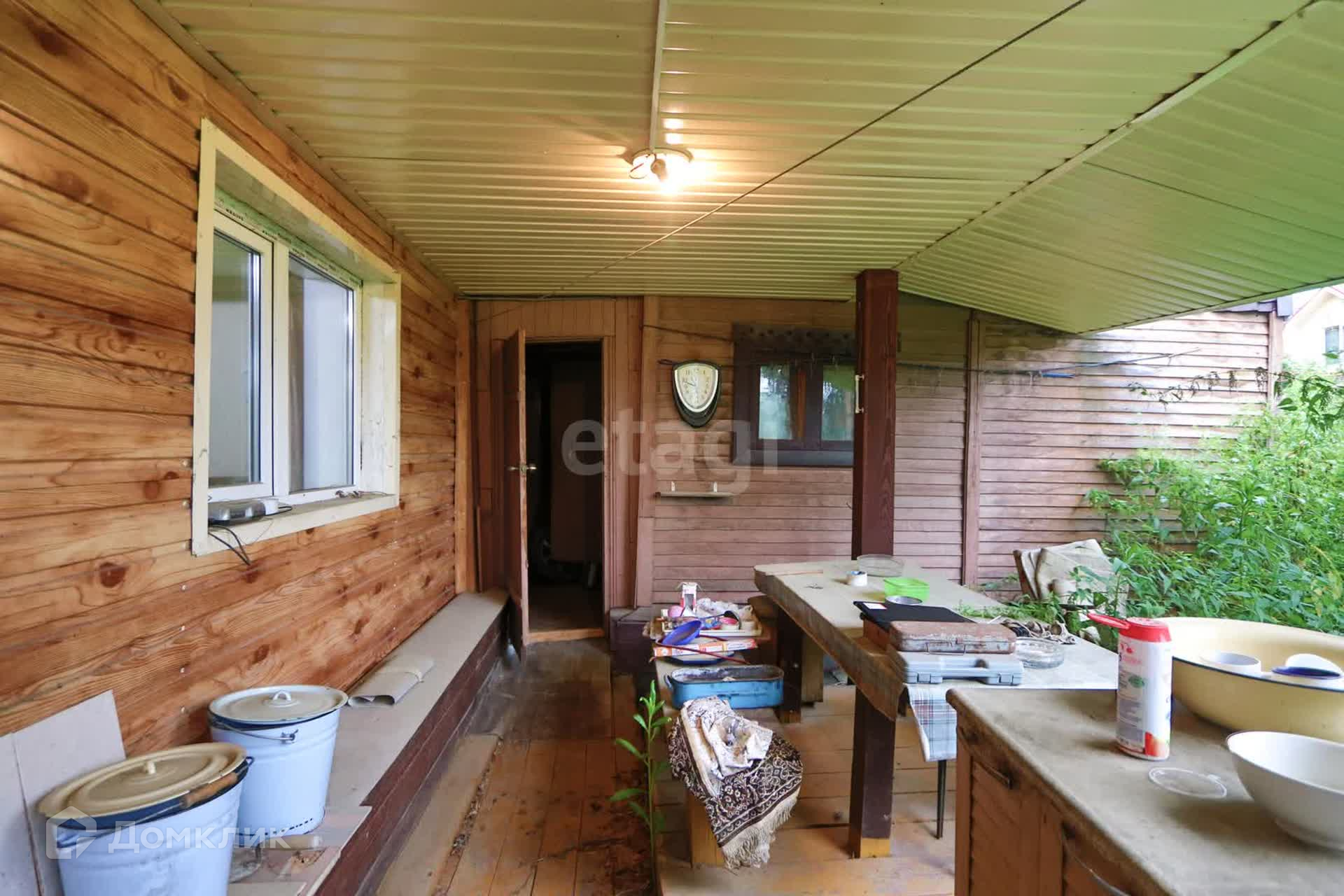 Дом выполнен из кругляка (строили на совесть) и обшит металлосайдингом. В доме чисто и уютно.