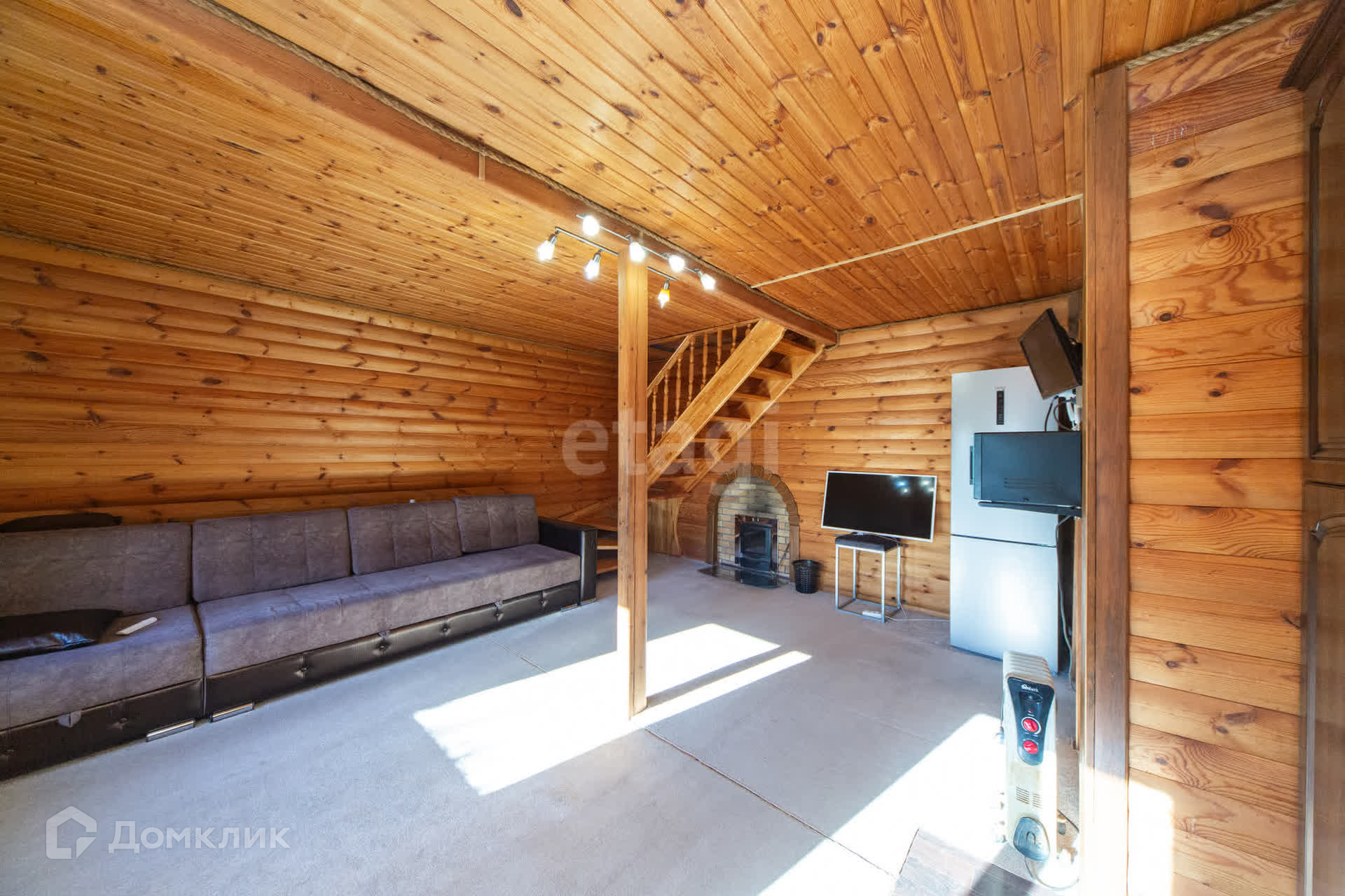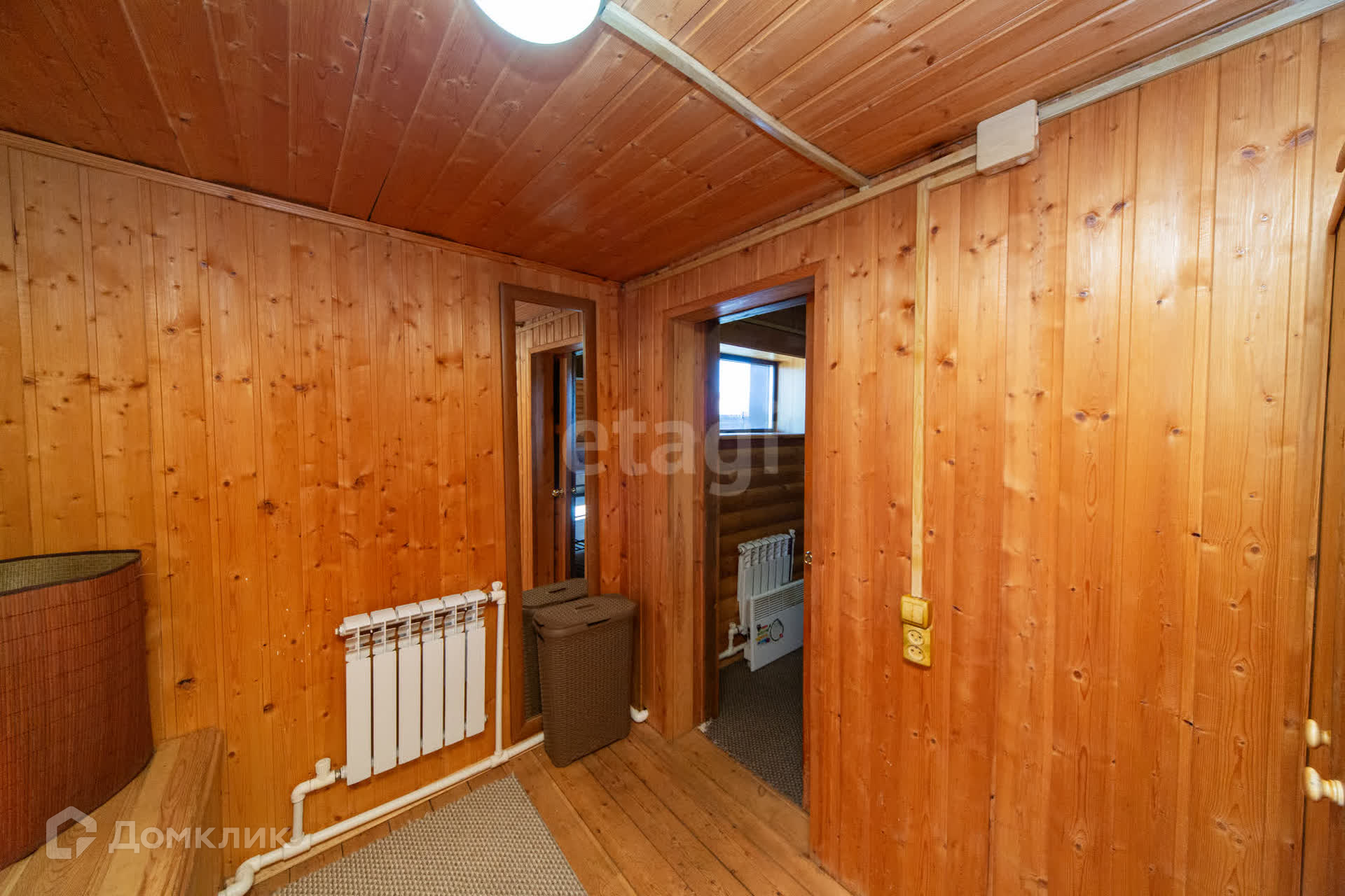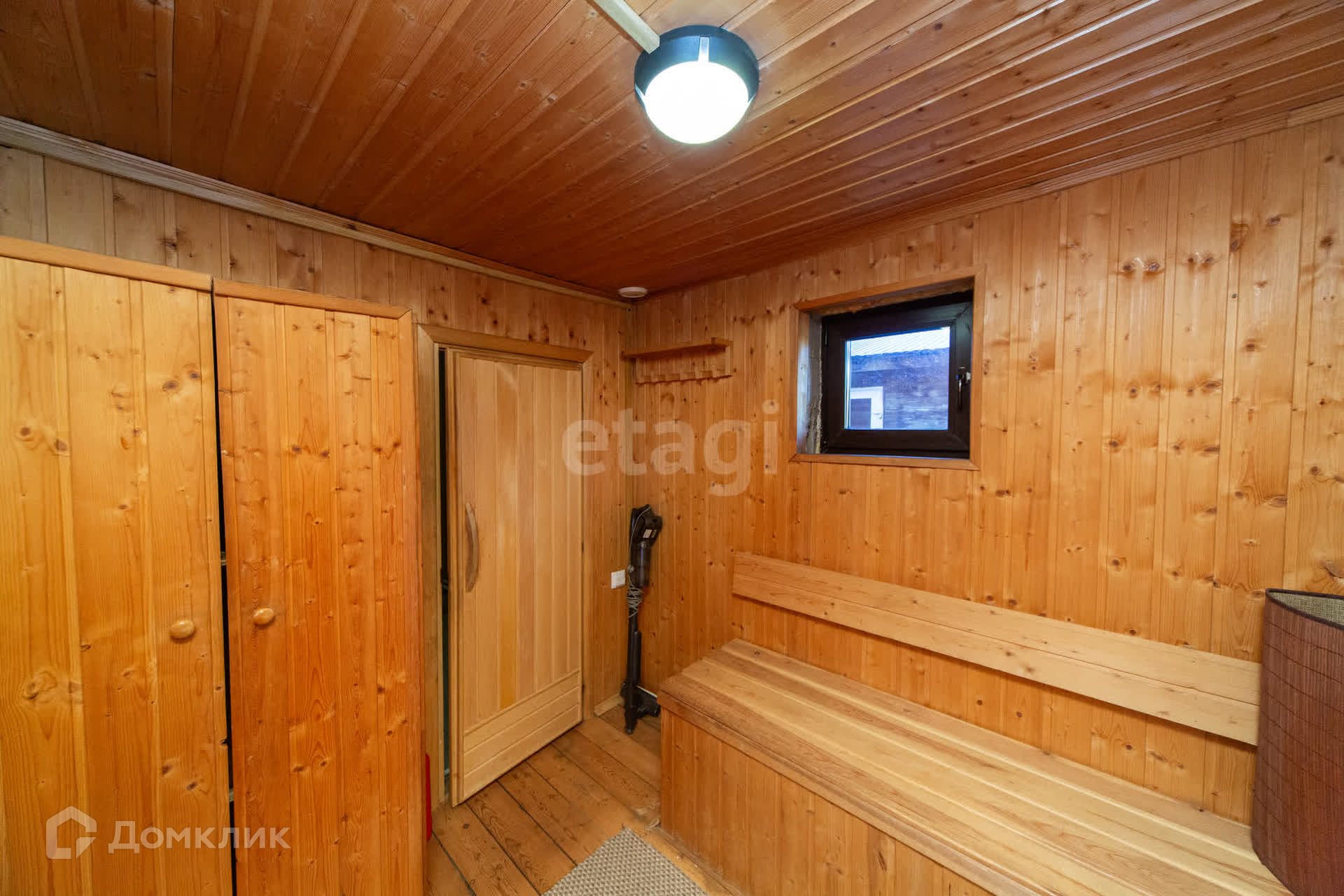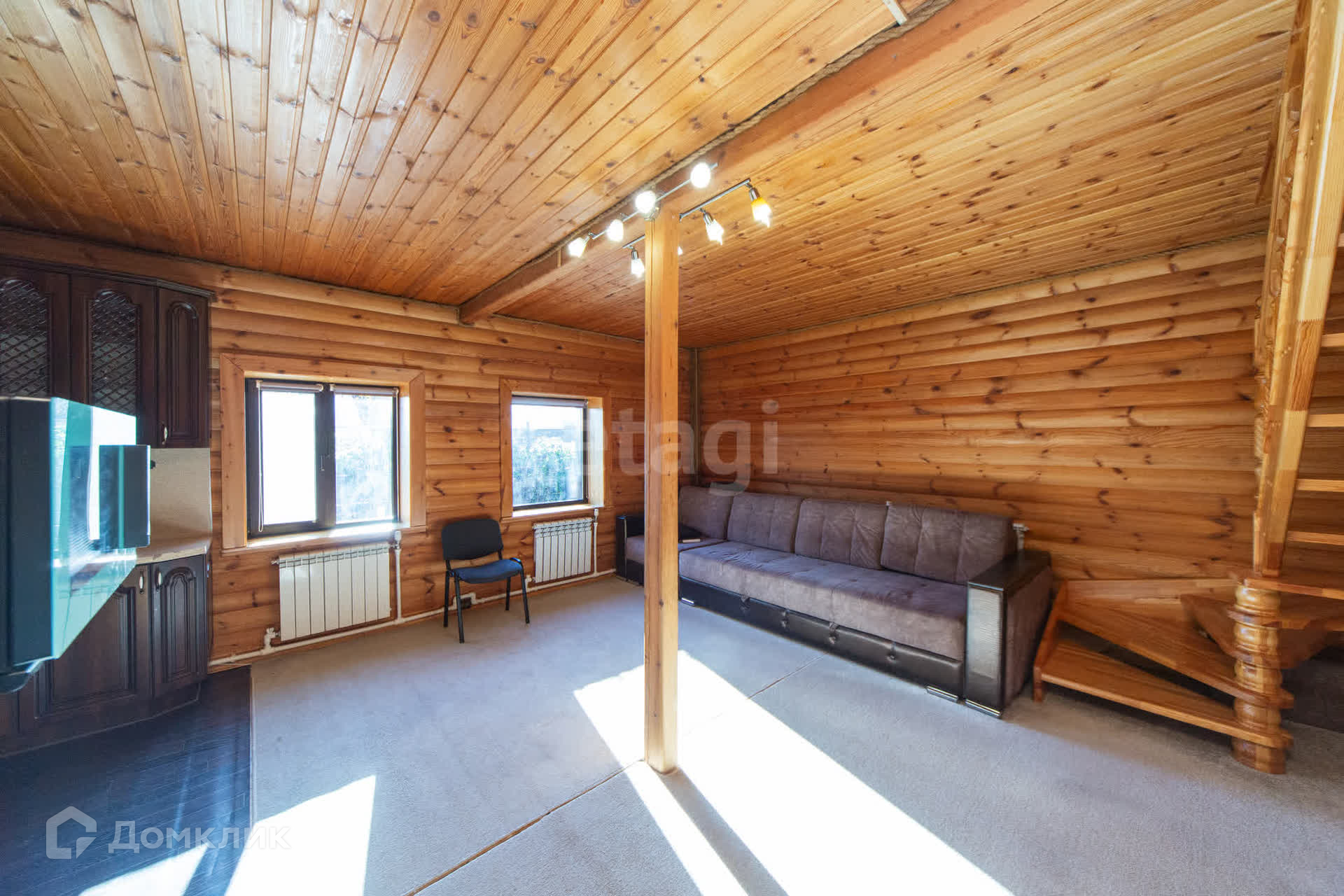 Дом утеплен и обшит профлистом, что обеспечивает надежную защиту от непогоды. Первый этаж включает в себя просторную кухню-гостиную, душевую комнату и сауну, создавая уютную атмосферу для отдыха. На втором этаже расположены две комнаты и туалет.