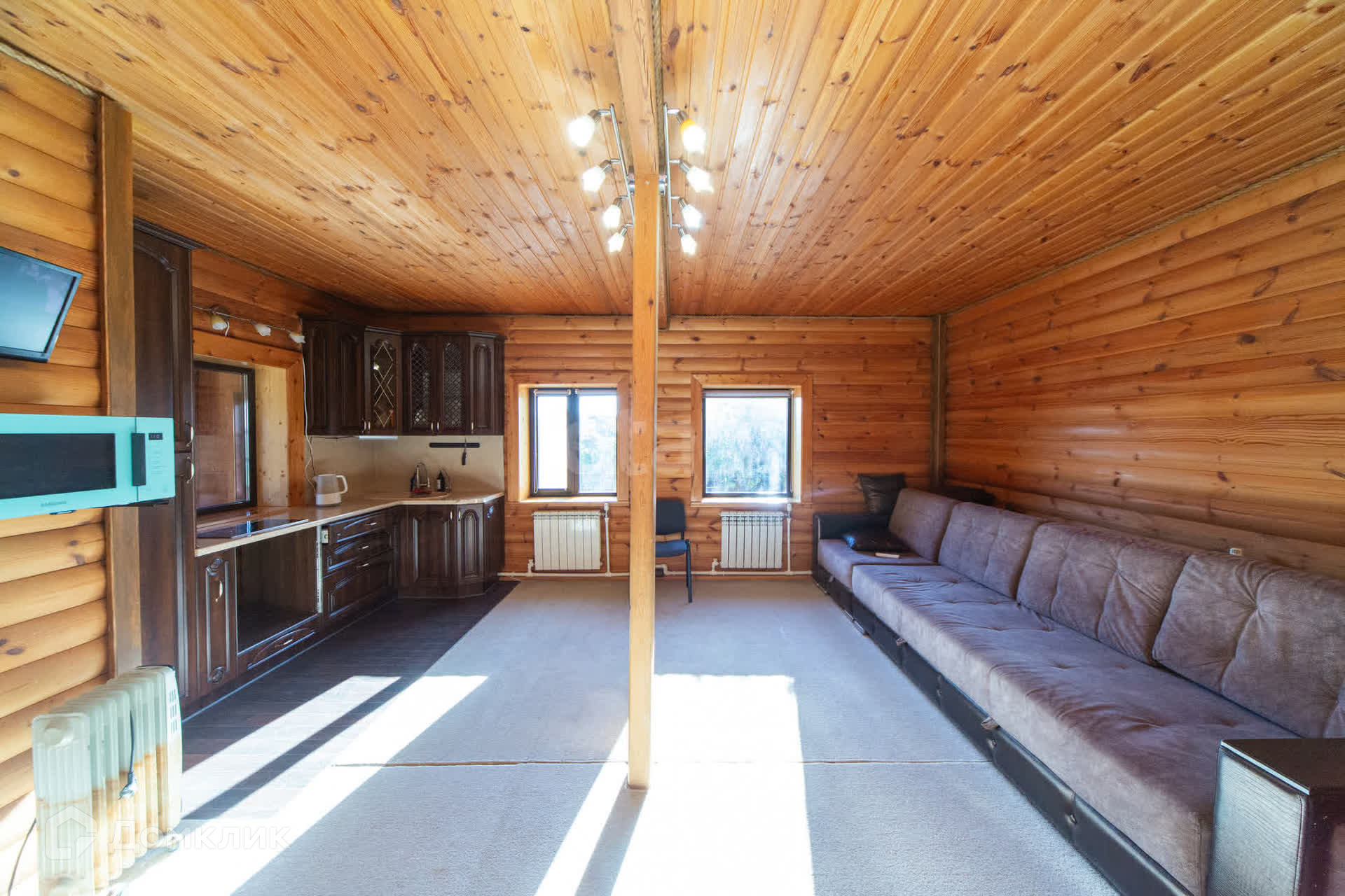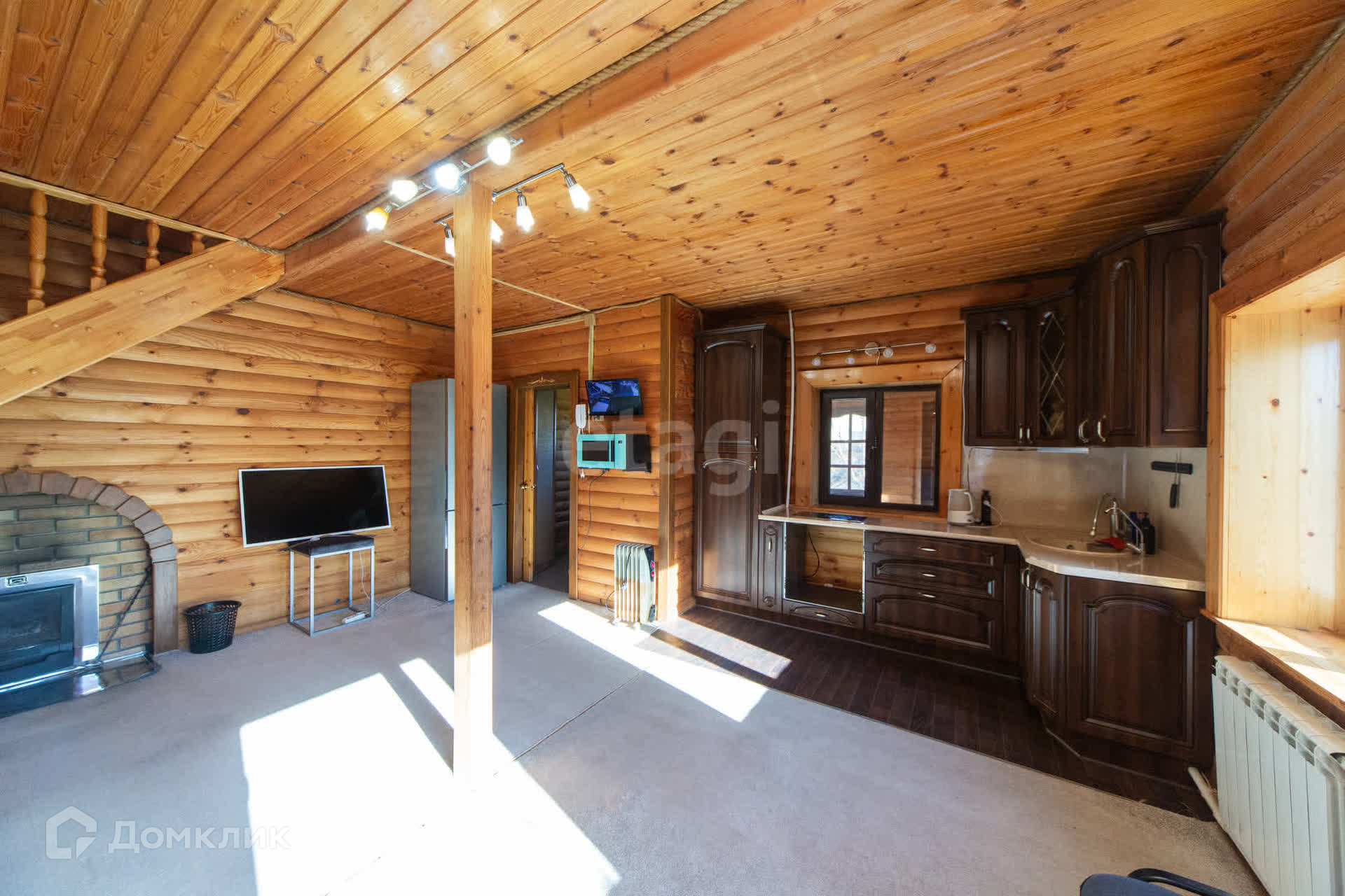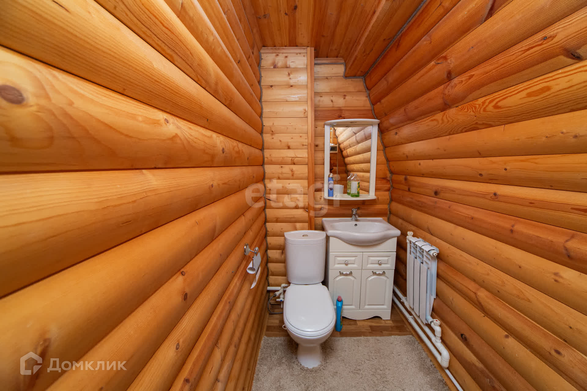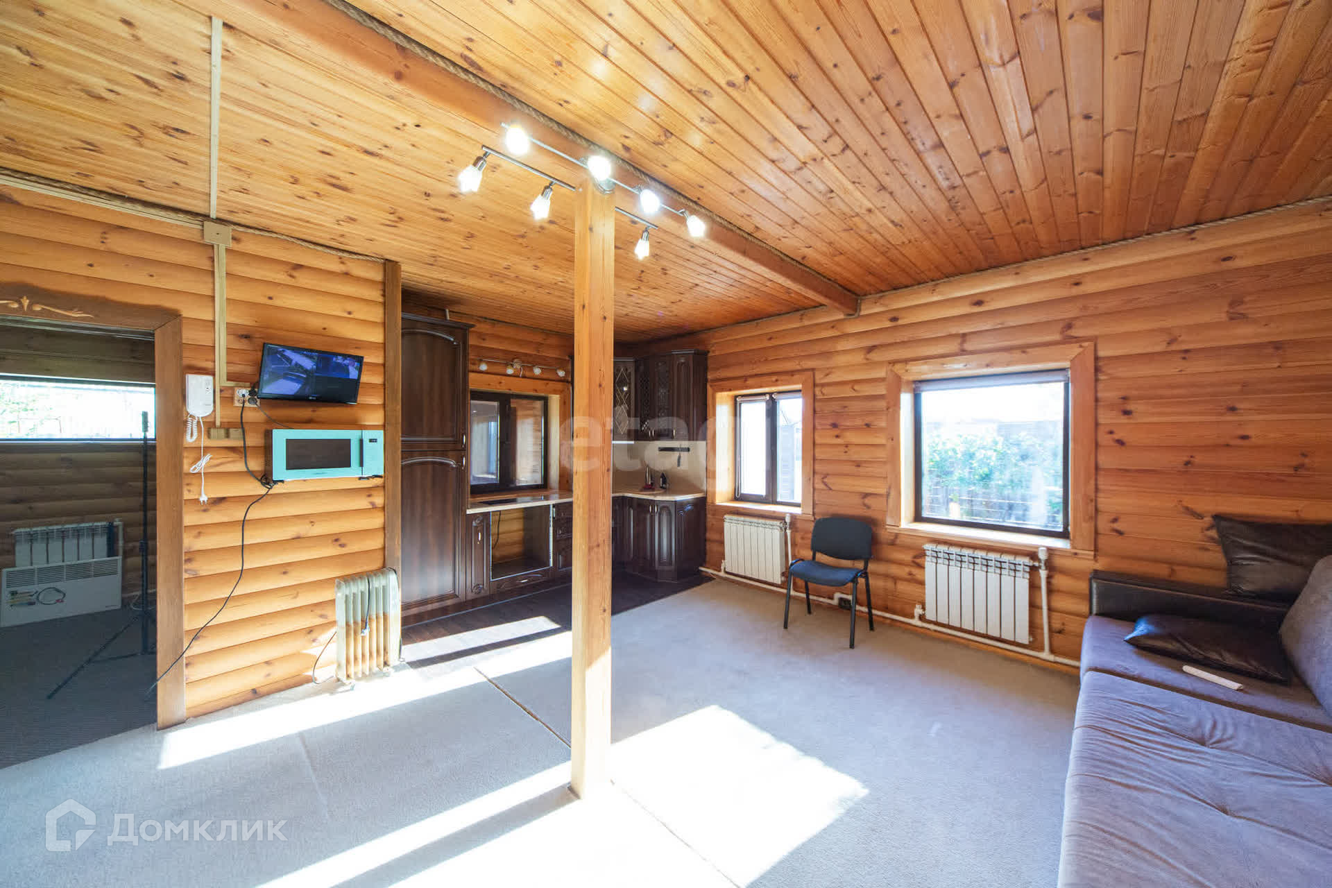 Дом утеплен и обшит профлистом, что обеспечивает надежную защиту от непогоды. Первый этаж включает в себя просторную кухню-гостиную, душевую комнату и сауну, создавая уютную атмосферу для отдыха. На втором этаже расположены две комнаты и туалет.