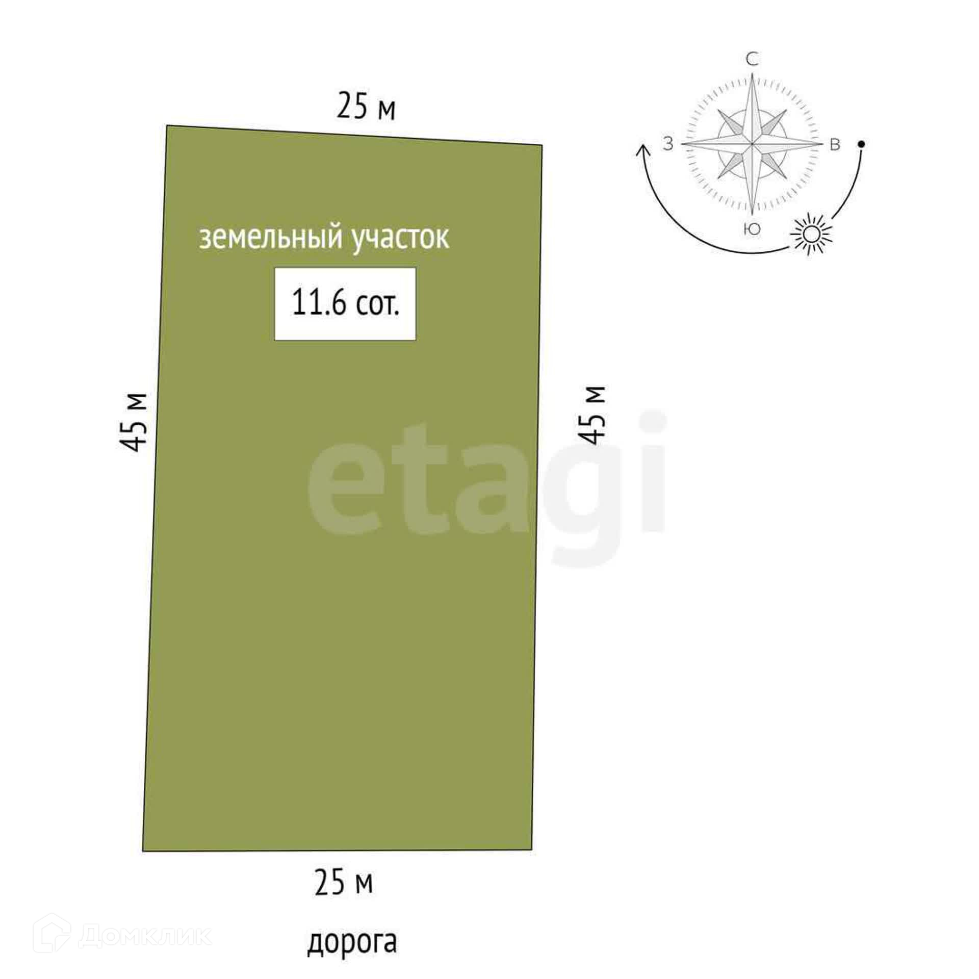 Площадь участка 11.6 сот.
