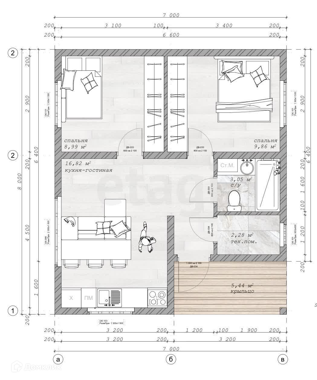 Общая площадь 56 м2