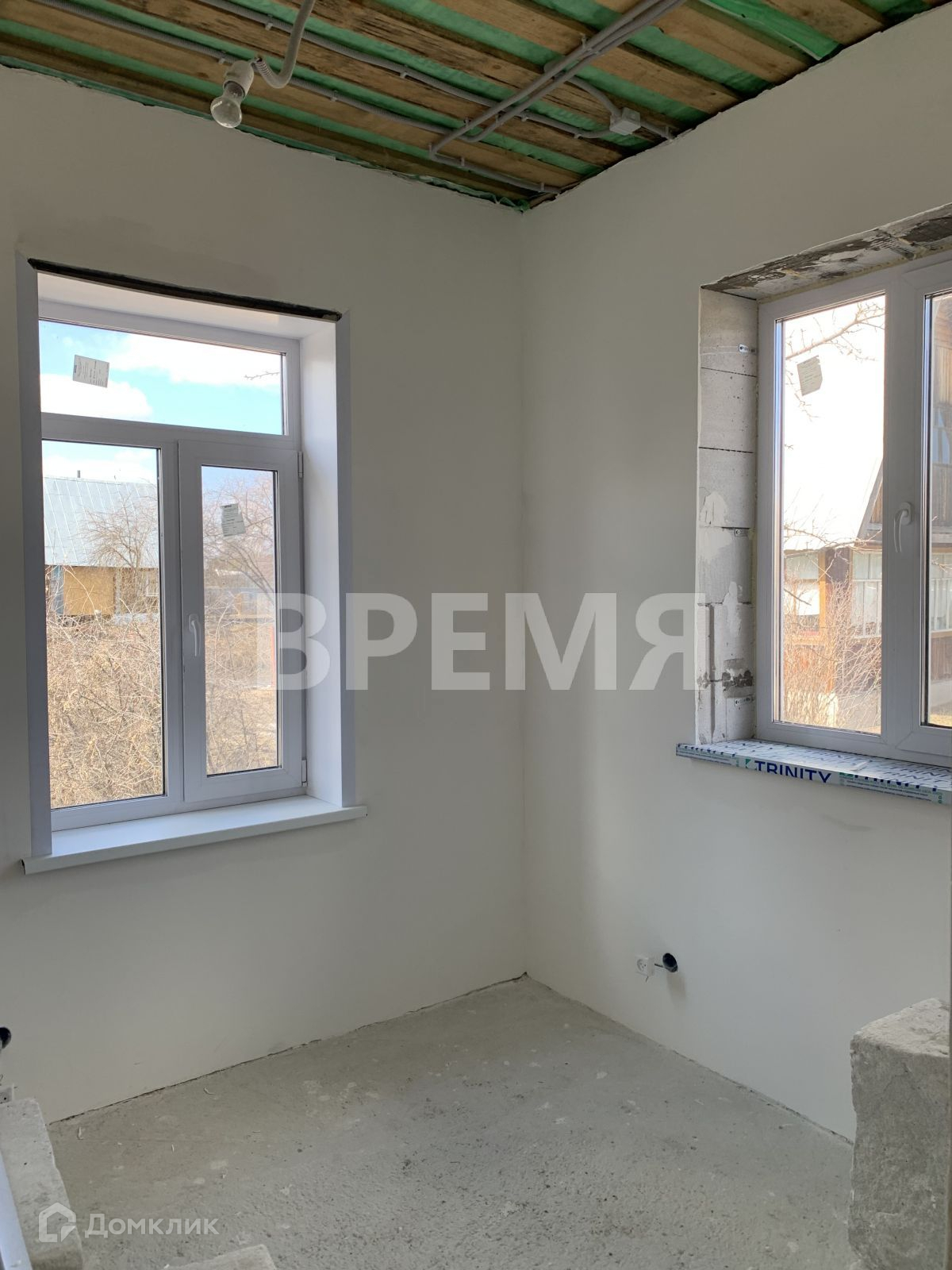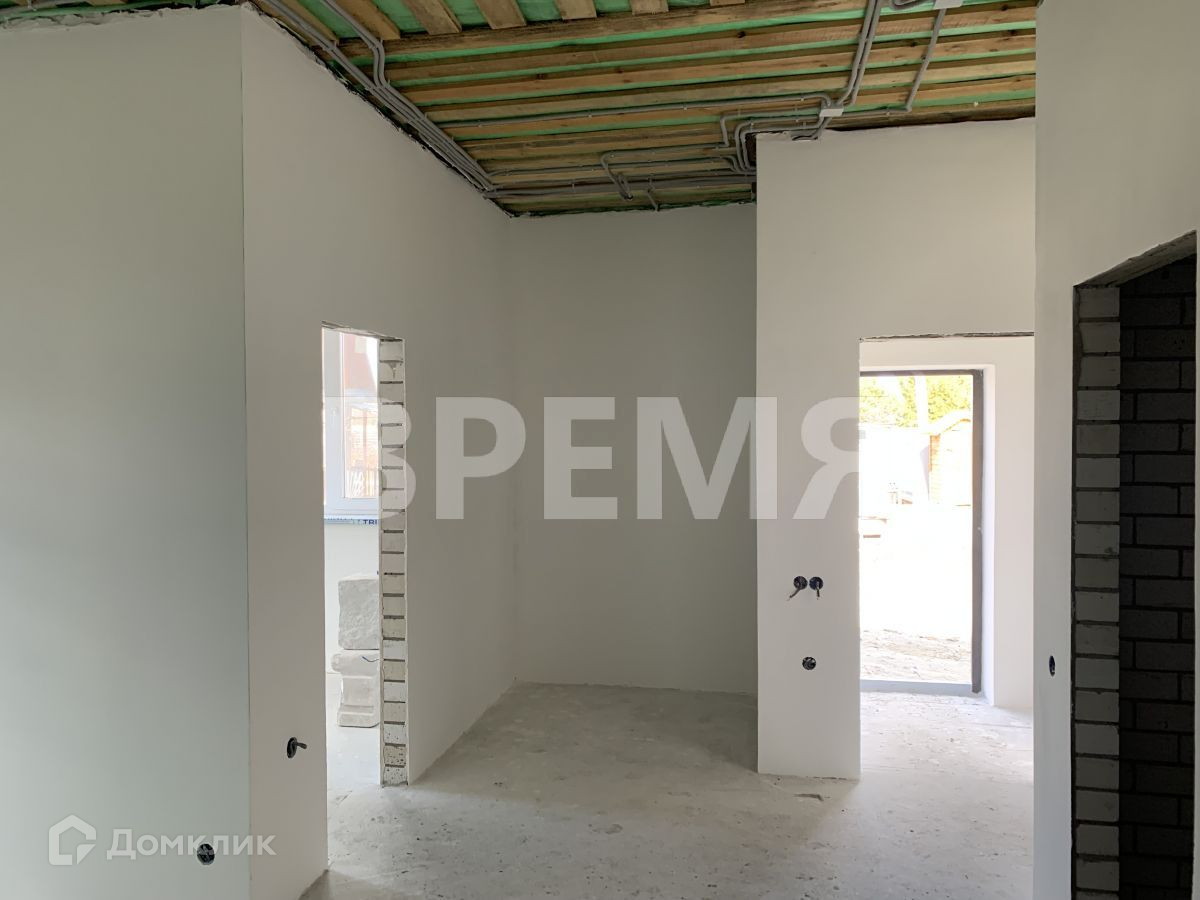 новый дом на фундаменте из плит площадью 50 кв.м, состоящий из кухни-гостиной 27 кв.м и спальни, санузла и кладовой; построен из блоков, с крышей из черепицы, с выводом для канализации, водоснабжения, электроразводкой с улученной черновой отделкой (шпатлёвка и штукатурка, откосы в гостиной и спальне)