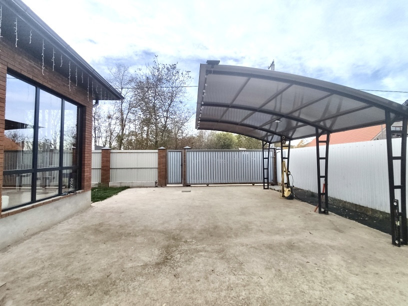 Двор благоустроен, отмостка, забетонирован, парковочные места для автомобилей, навес.