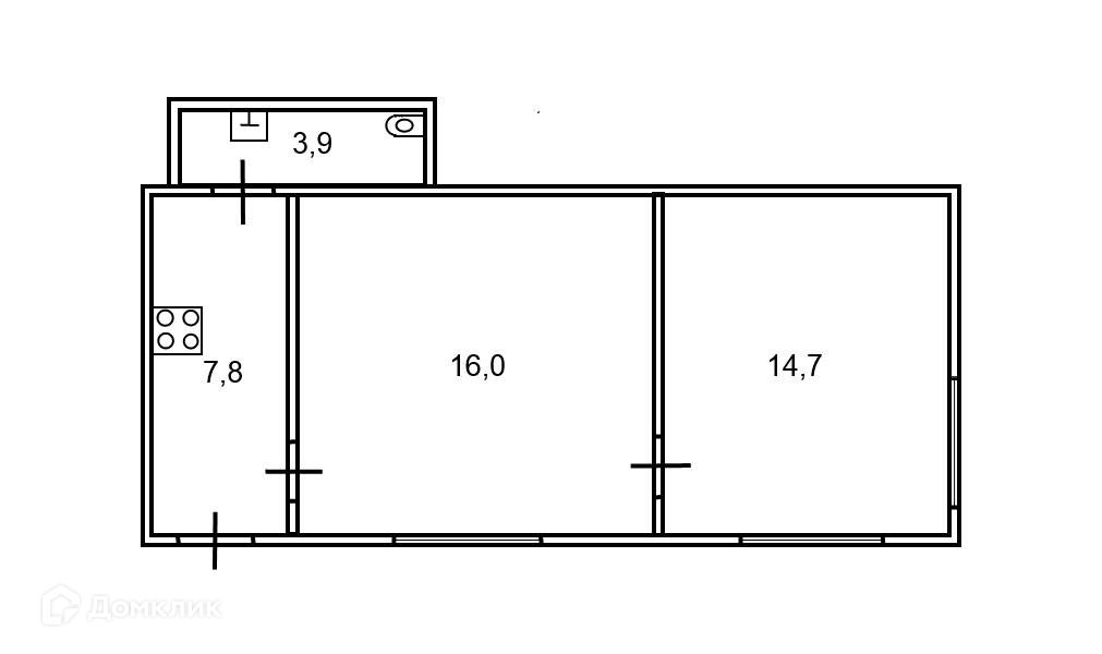 Общая площадь 42.4 м2