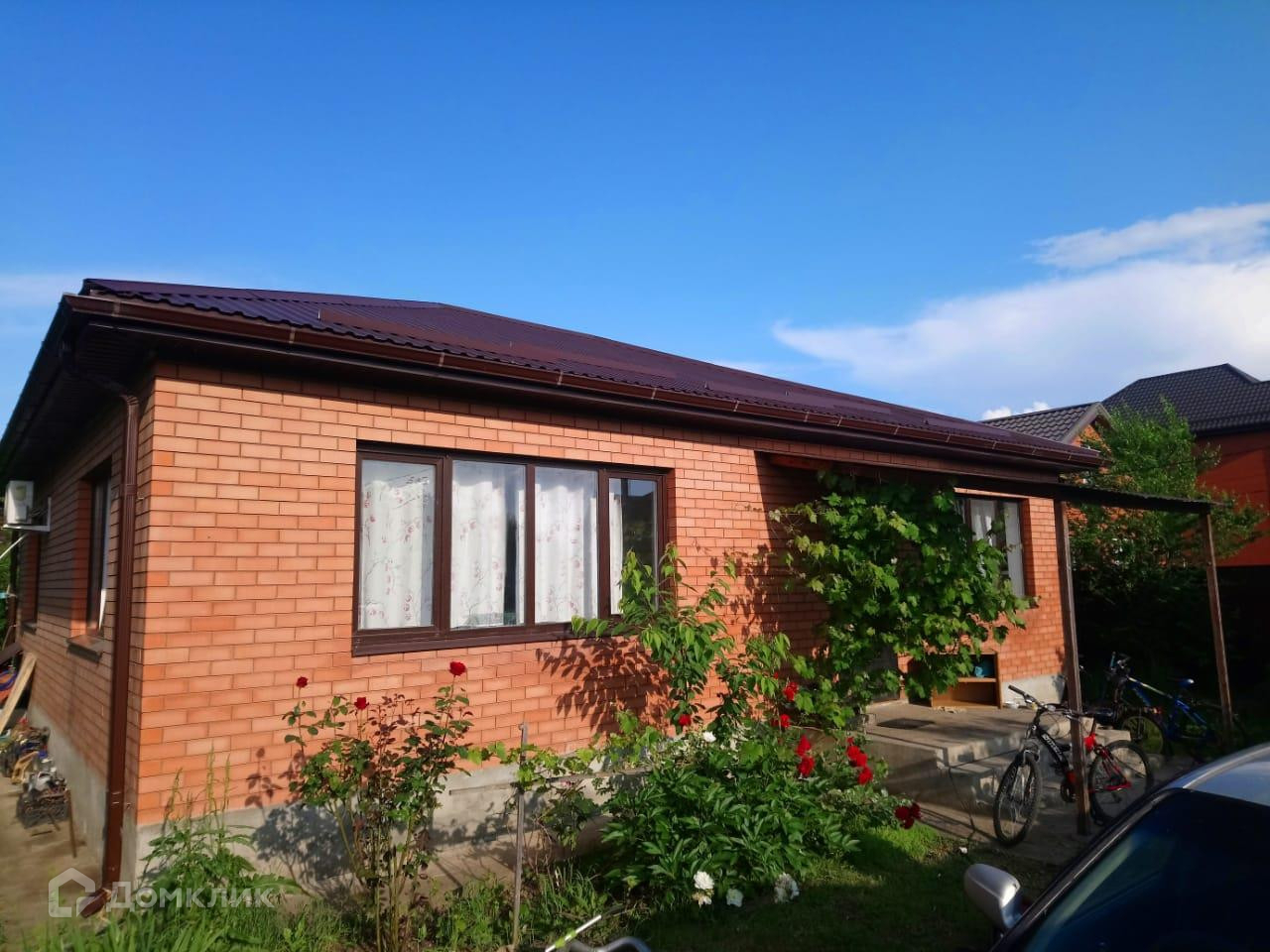 В доме просторная кухня-гостиная с выходом на задний двор и 3 спальни. Дом кирпичный. На участке плодоносящие деревья.