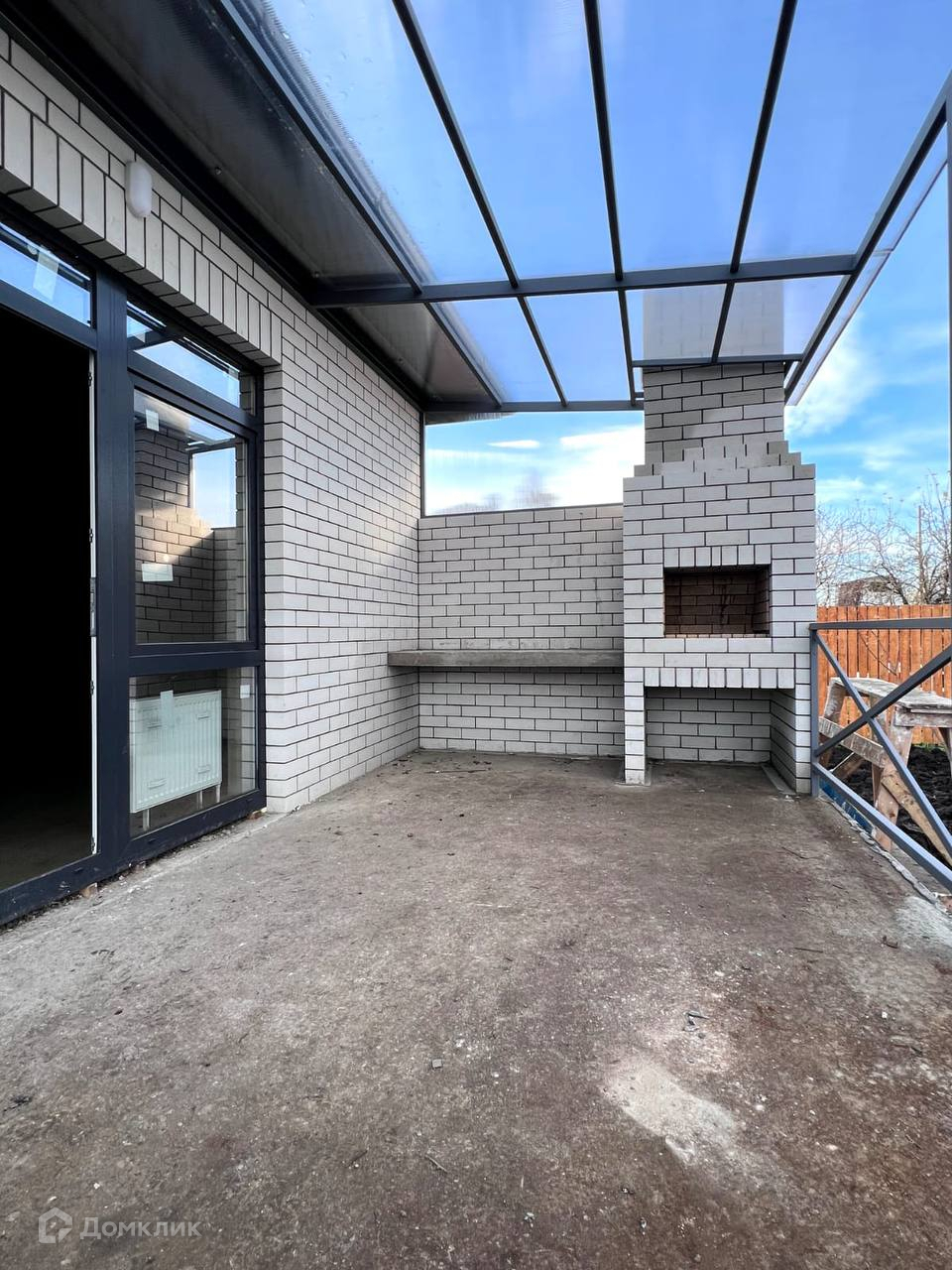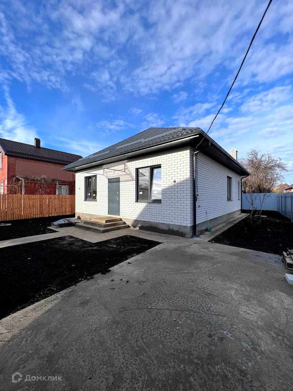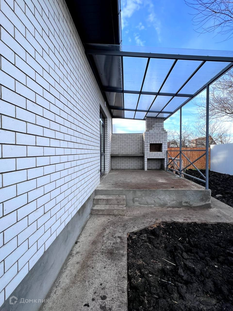 Парко место для автомобиля и отмостка забетонированы.