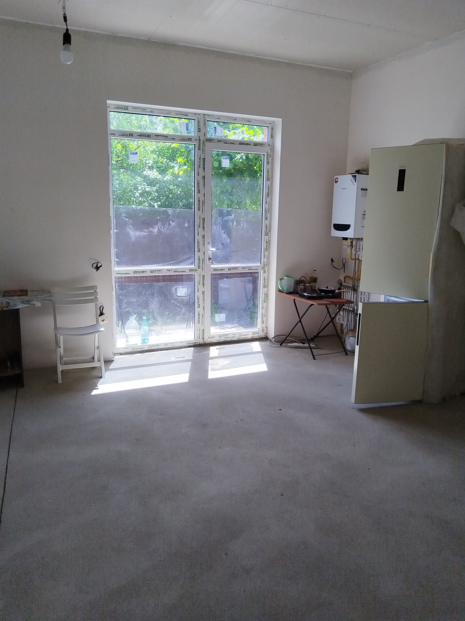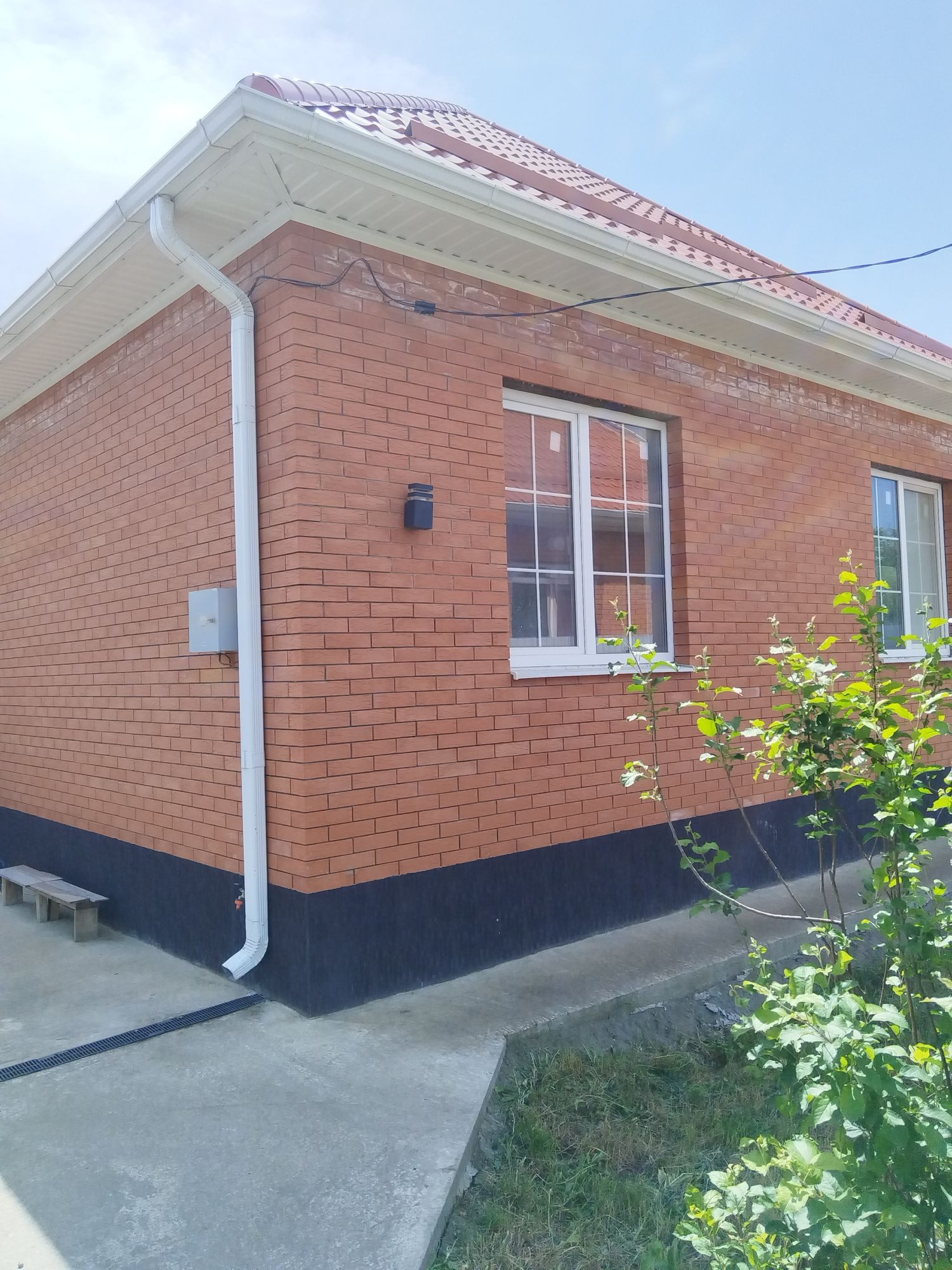 участок правильной формы бетонированный двор под две  дом в предчистовой отделке тёплые полы газгольдер подключен,электричество Вода Канализация Радиаторы Металлопластиковые окна высокого качества забор из металлопрофиля на кирпичных колоннах по периметру откатные ворота.