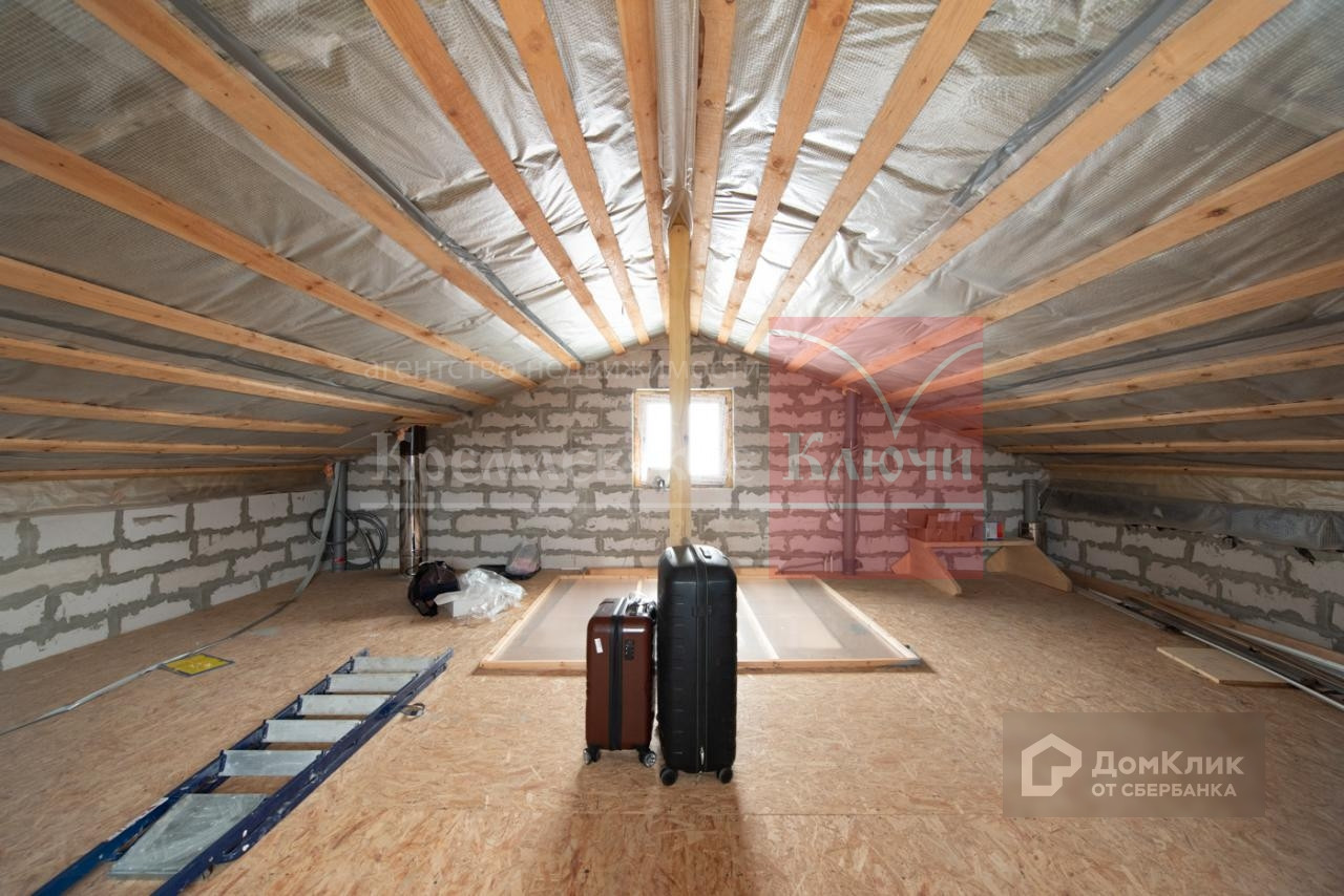 Общая площадь дома с мансардой и тёплой верандой – 165 м2. Баня – 36 м2. Земельный участок – 8,5 соток. Высота потолков на 1 этаже - 270 см, на 2 этаже - 250 см, на мансардном в центральной части – 220 см. Площадь мансардного этажа, где можно стоять в полный рост - 20 м2. Стены из пенобетона, облицовка - бетонные плиты под сланец, перекрытия деревянные.